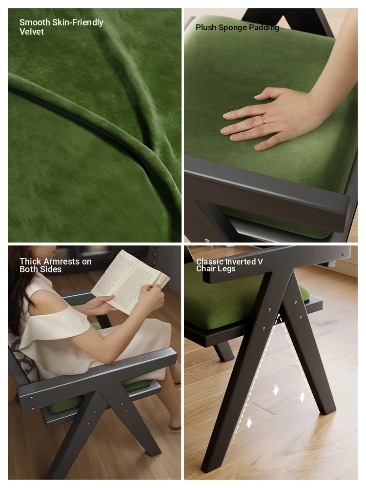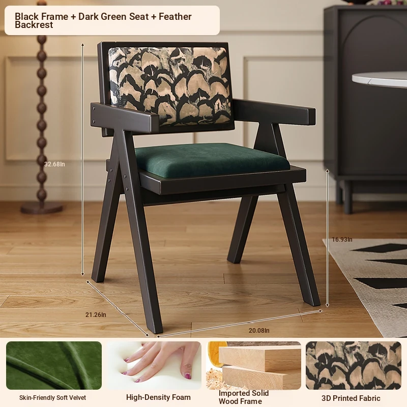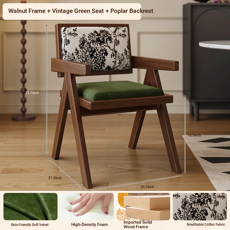 Walnut Frame + Retro Green Seat + Feather Backrest