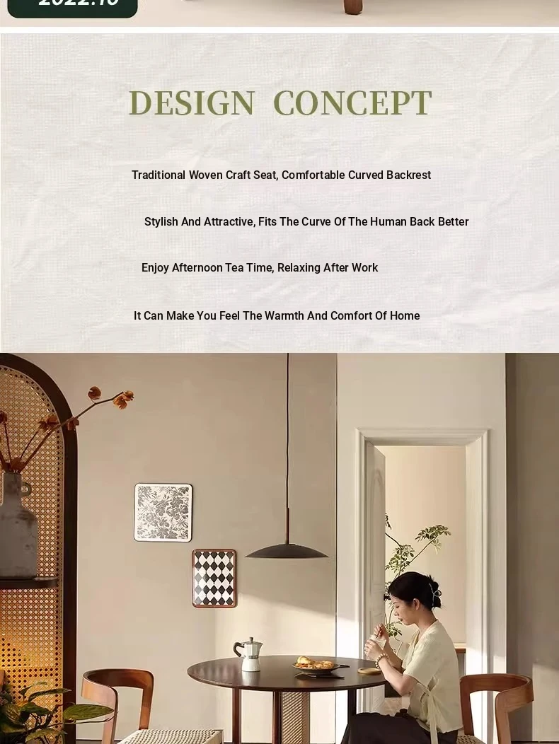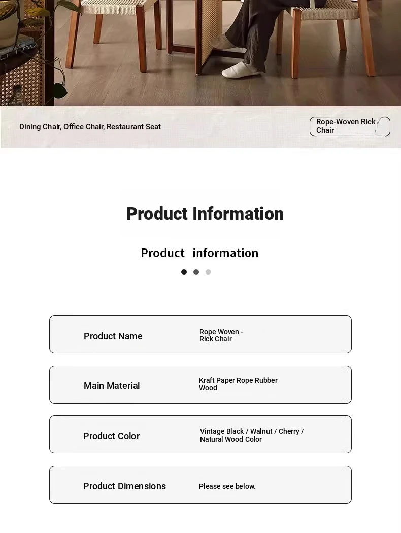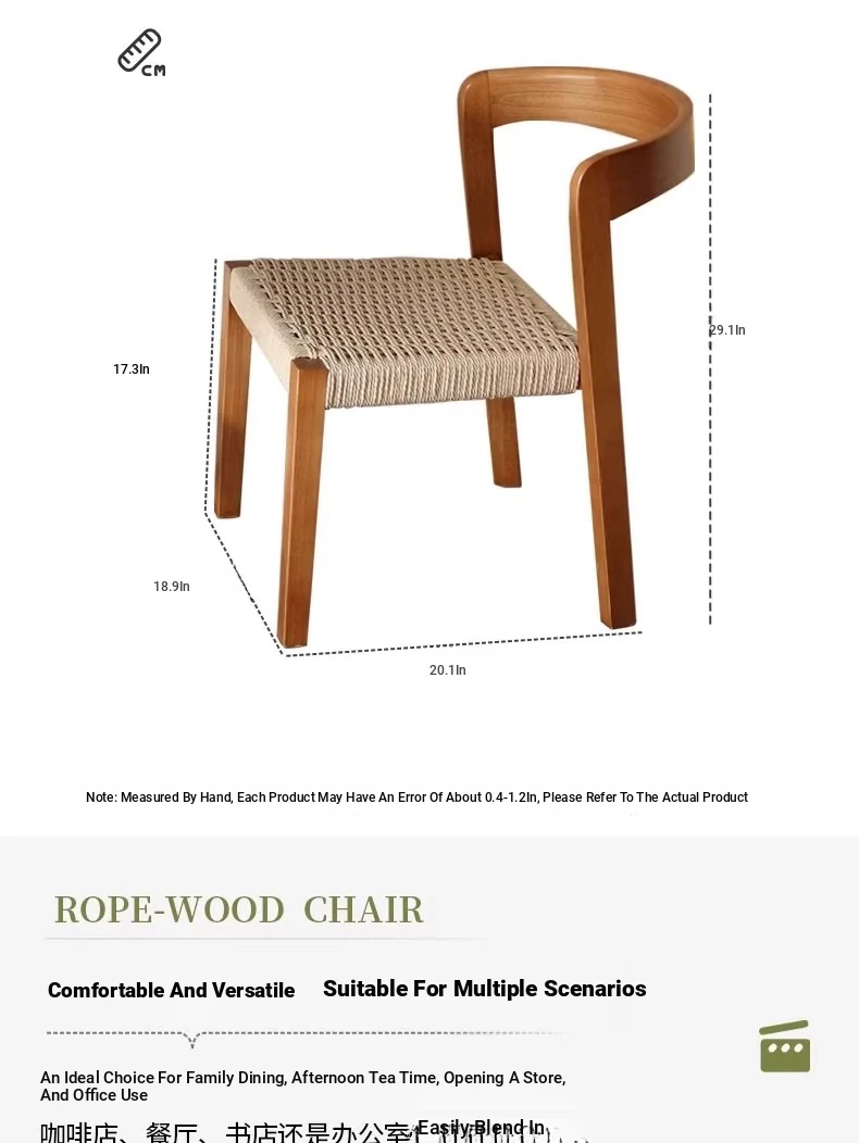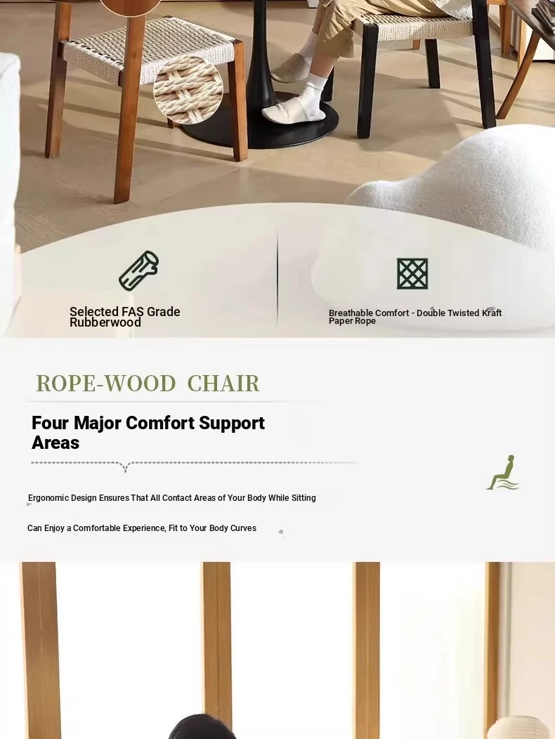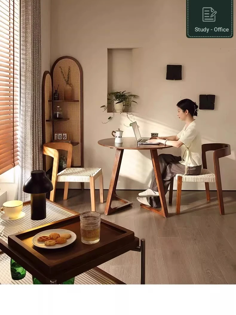 French Vintage Solid Wood Dining Chair - Designer Home Restaurant Chair with Wabi-Sabi Aesthetic, Rattan Backrest, and Boho Macrame Style for Cozy Guesthouses and Elegant Dining Spaces.