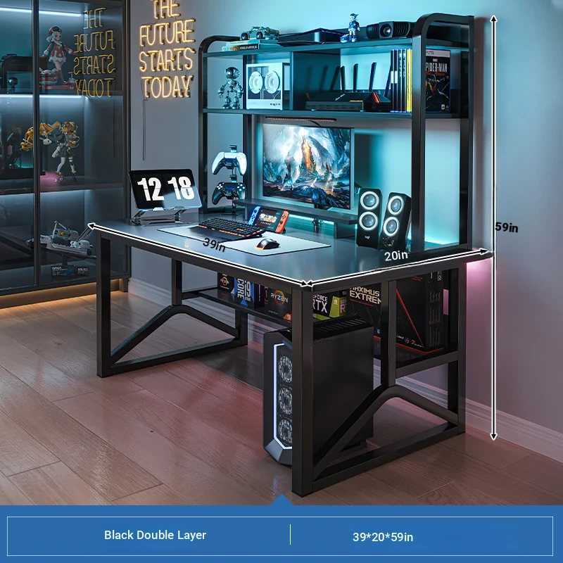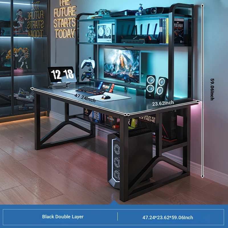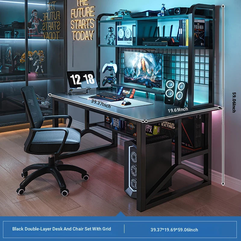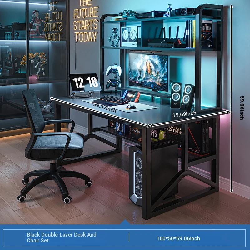 [Table and Chair Combination] Double-Layer Storage*Black-100*50*150