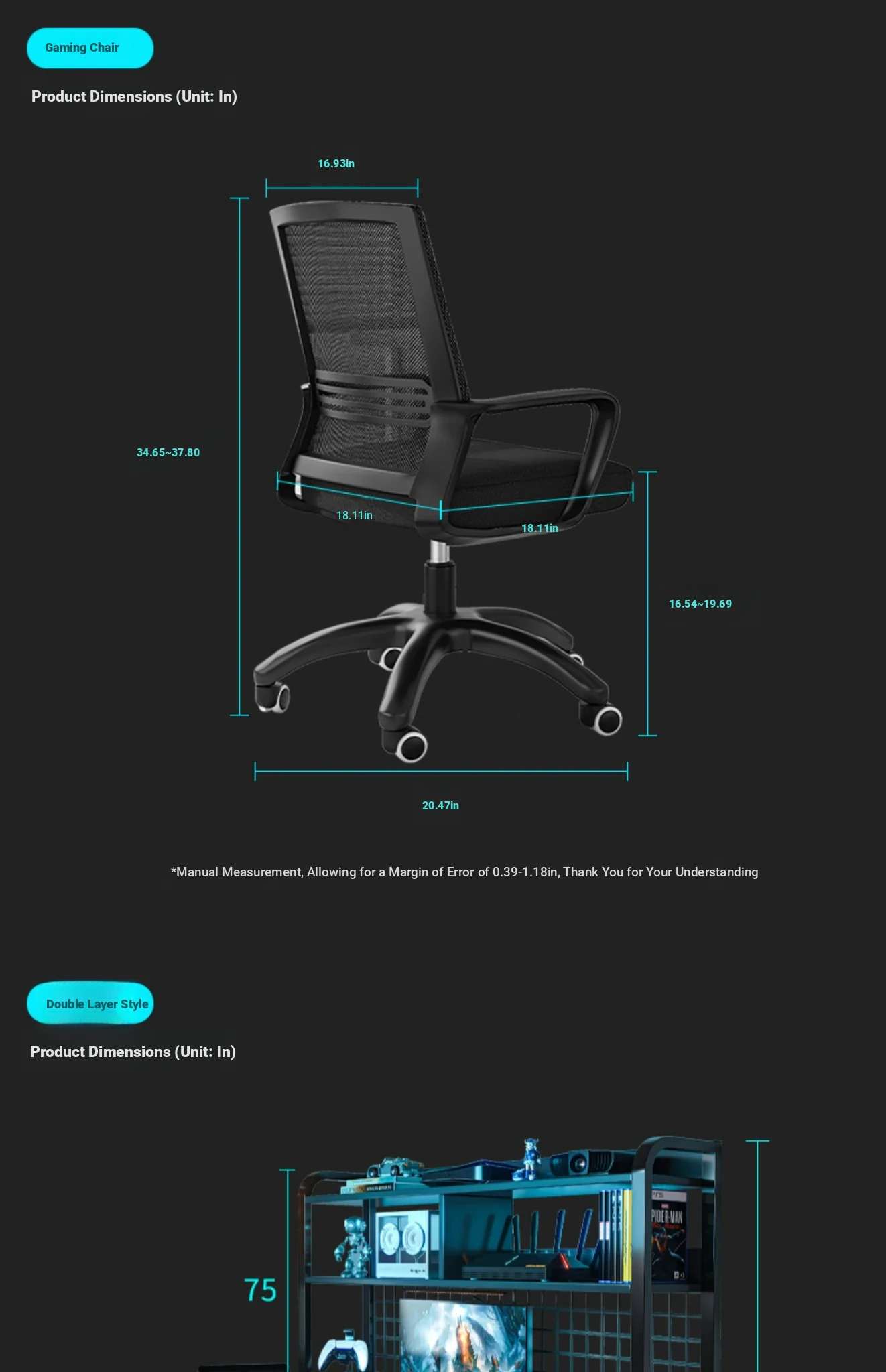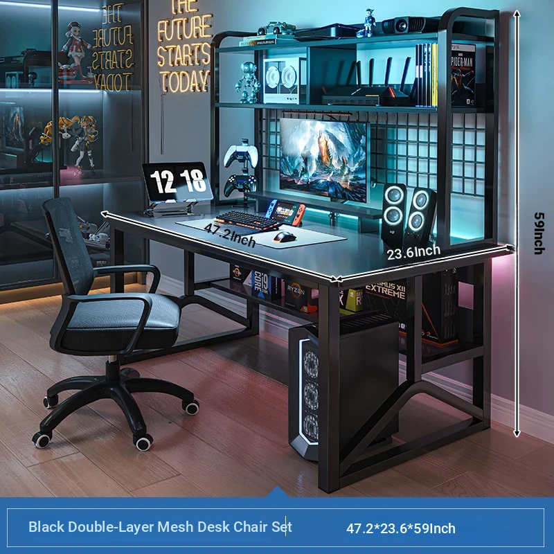 [Table and Chair Combination] Double Layer Storage + Mesh*Black-120*60*150