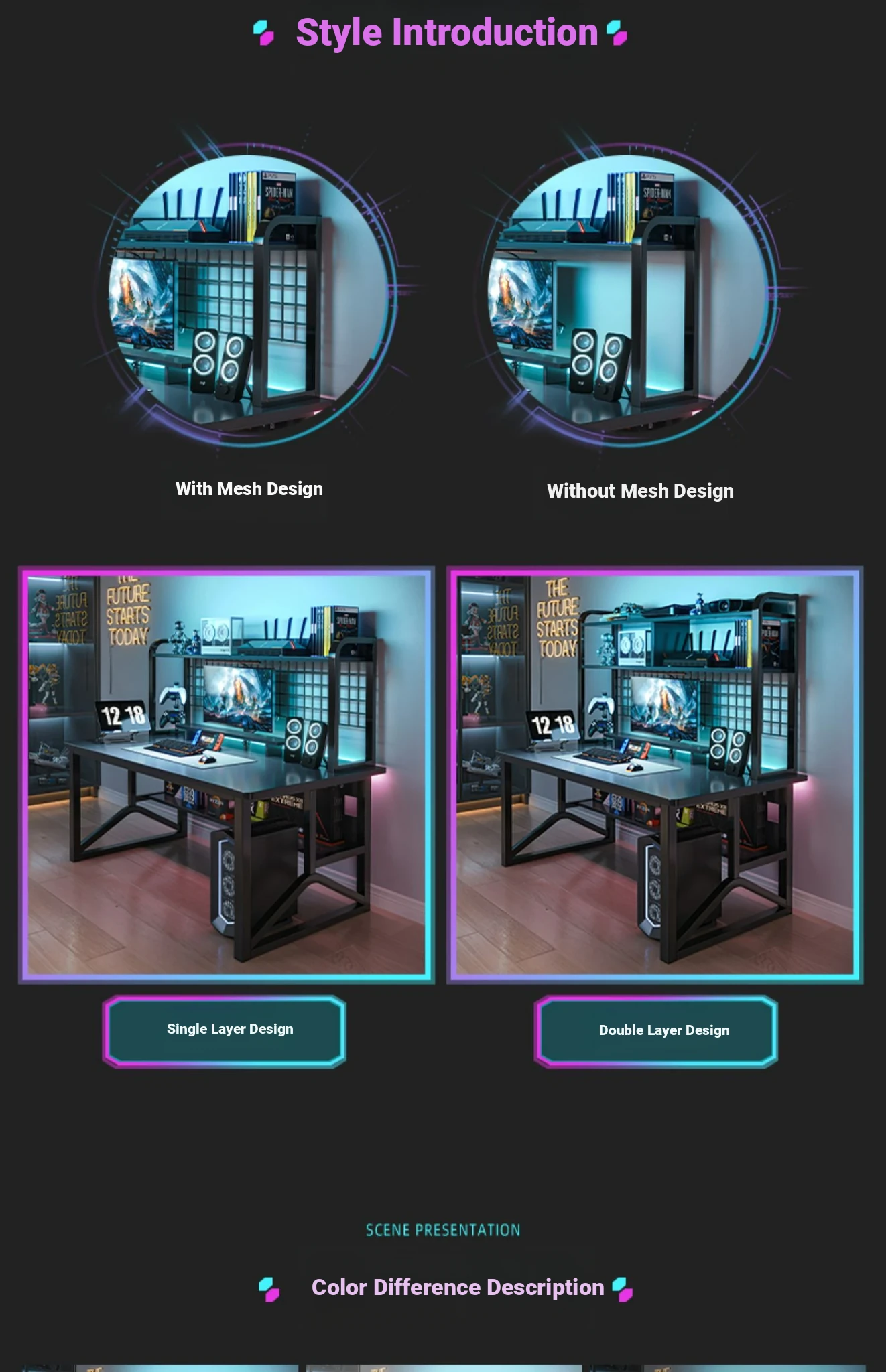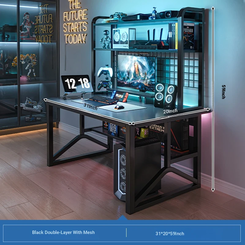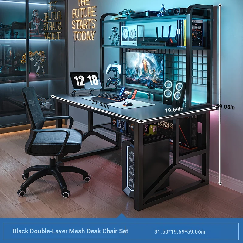 [Table and Chair Combination] Double Layer Storage + Mesh*Black-80*50*150
