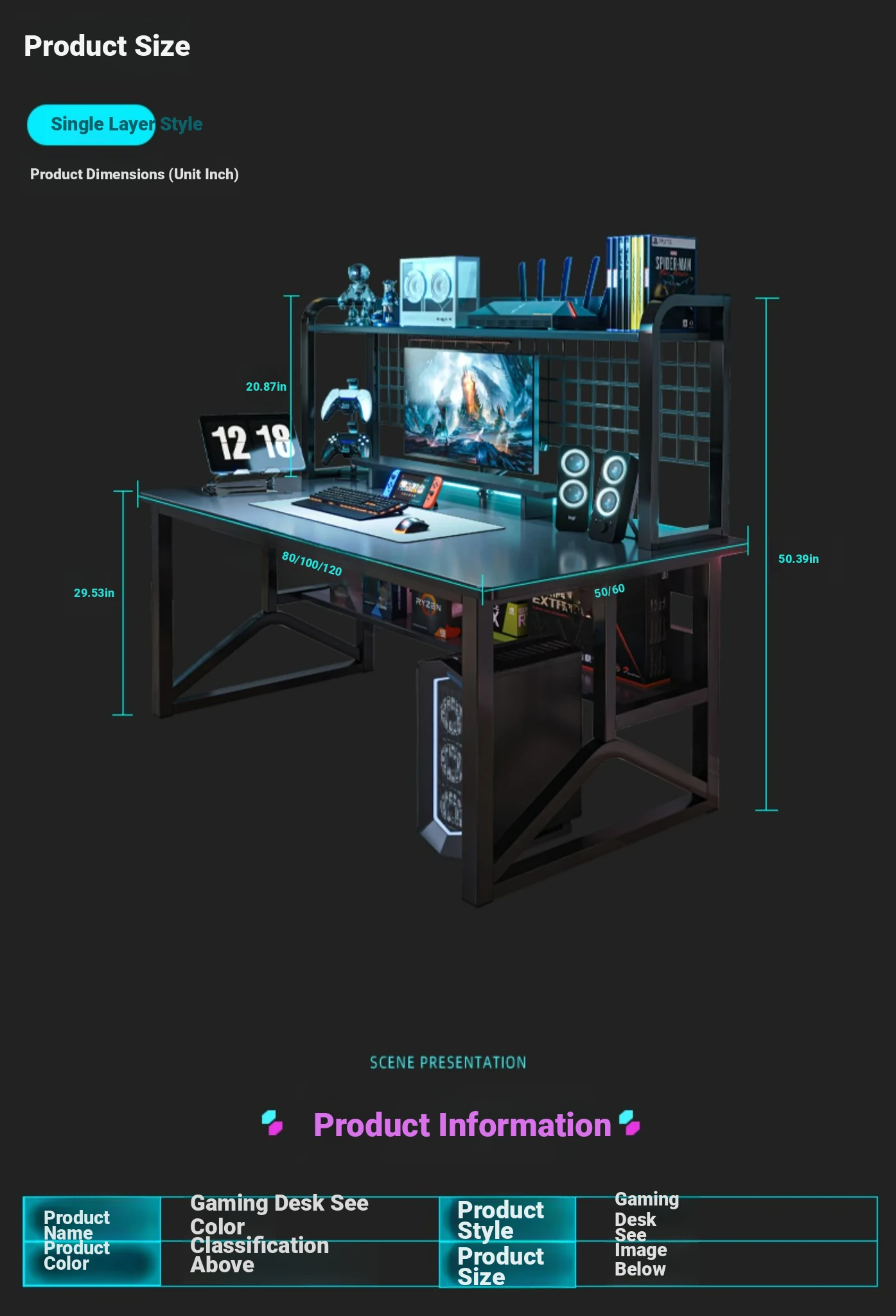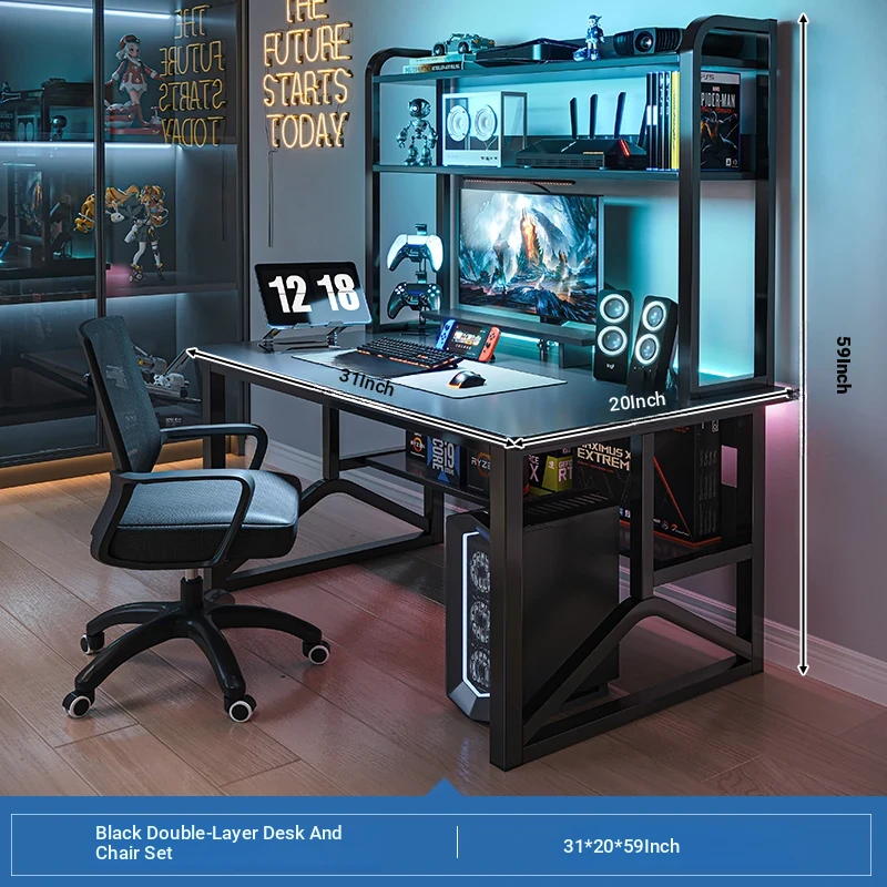 [Table and Chair Combination] Double-Layer Storage*Black-80*50*150