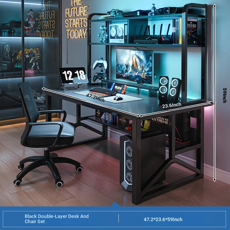 [Table and Chair Combination] Double-Layer Storage*Black-120*60*150