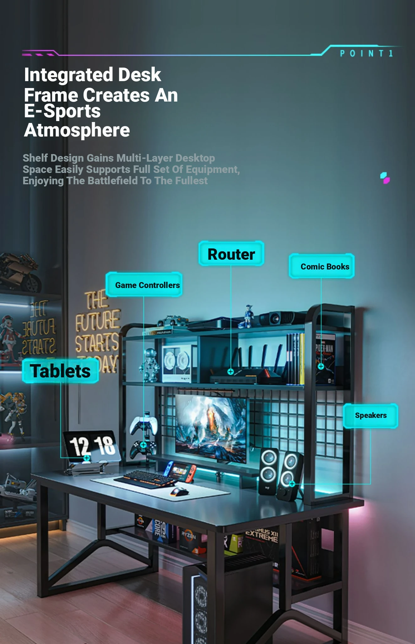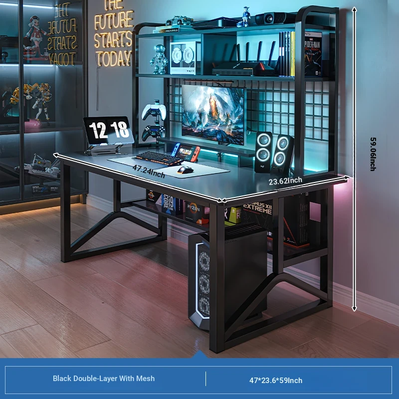[Table and Chair Combination] Double Layer Storage + Mesh*Black-100*50*150