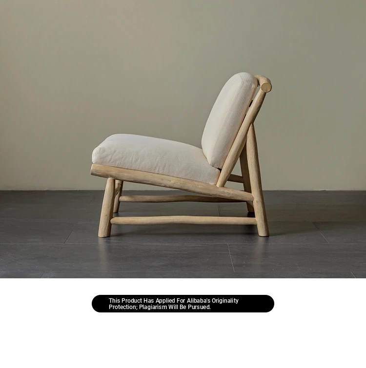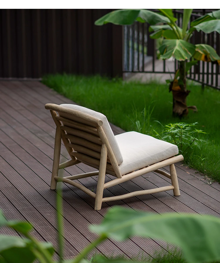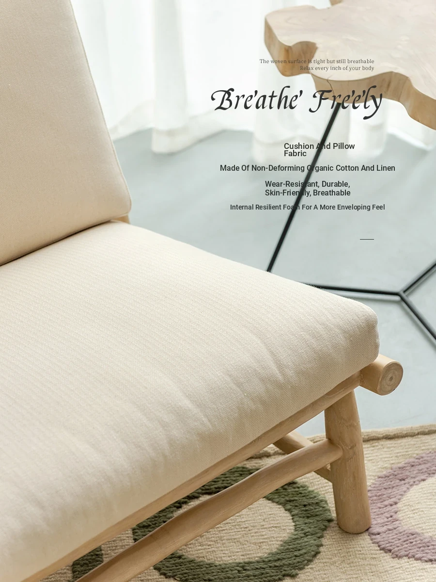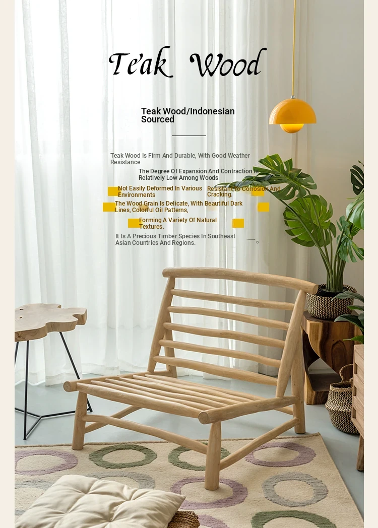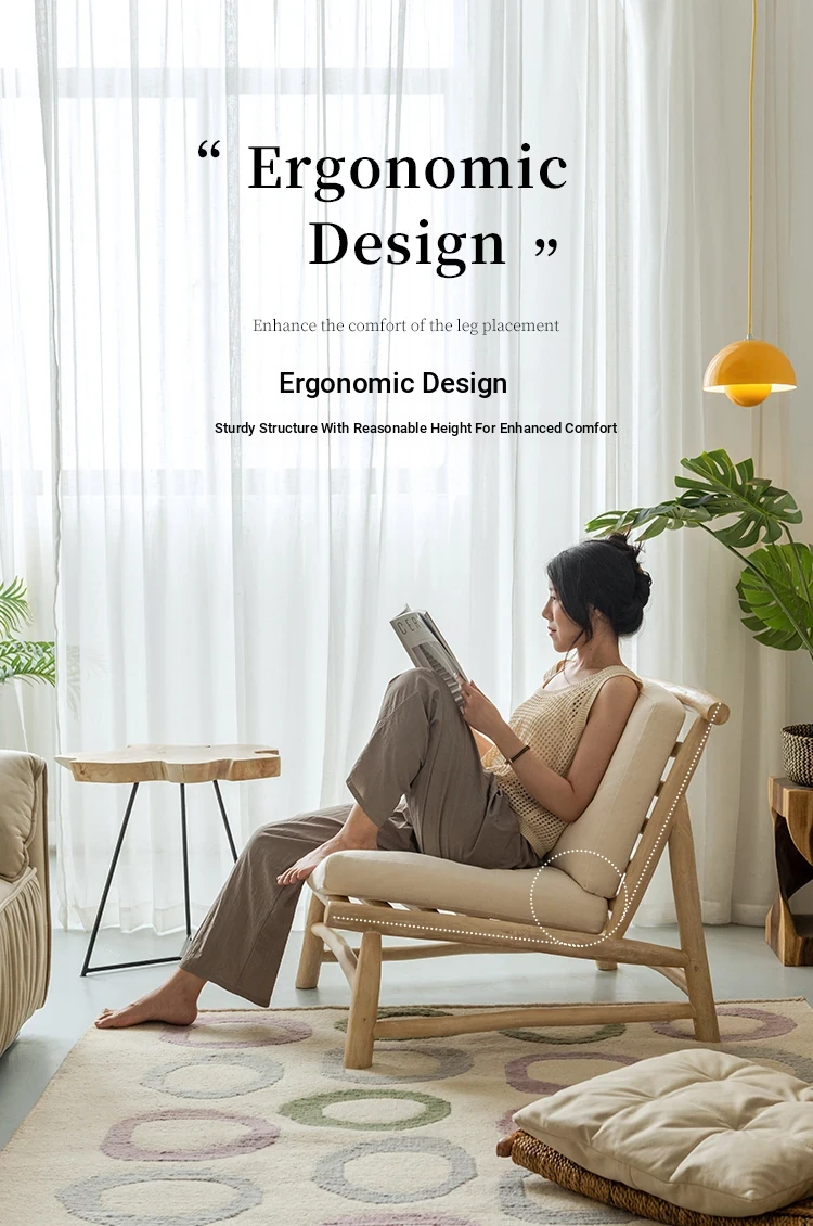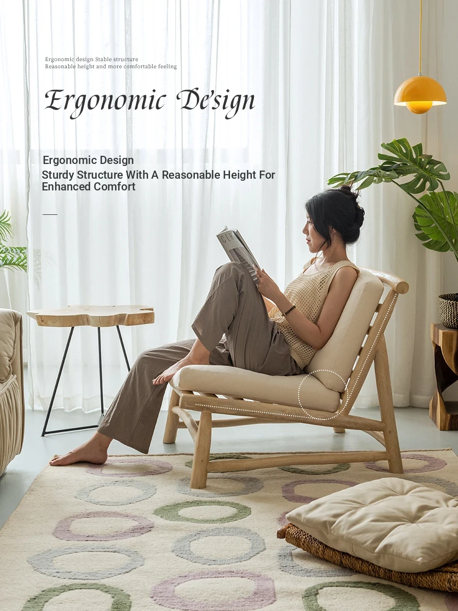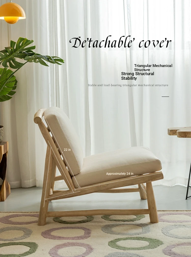 Imported Solid Wood Sofa Chair - Nordic Style Fabric Recliner for Home, Designer Hotel Lounge Chair, Teak Balcony Chair Perfect for Guesthouses