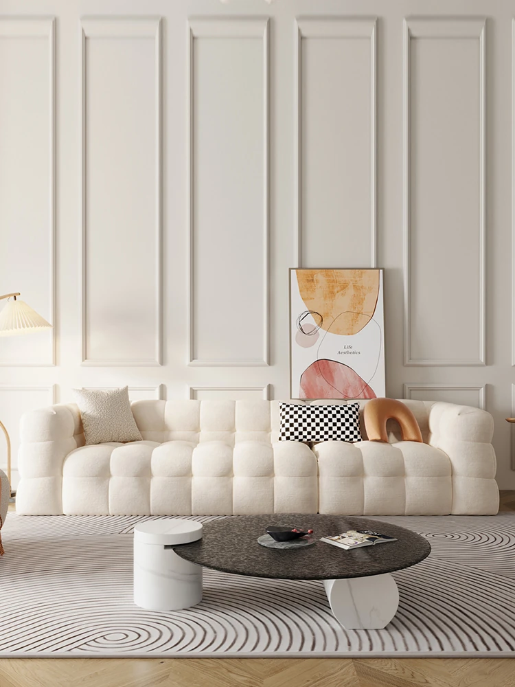 Indulge in Comfort: Creamy Cotton Candy Small Space Sofa - Modern and Minimalist Cloud-like Bouclé Design, Perfect for Cozy Living Rooms