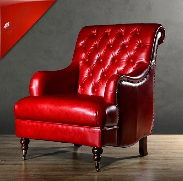 In-Stock Scandinavian-American Style Genuine Leather Tiger Chair - Luxurious Designer Single Sofa for Living Room - Stylish Red Leisure Armchair