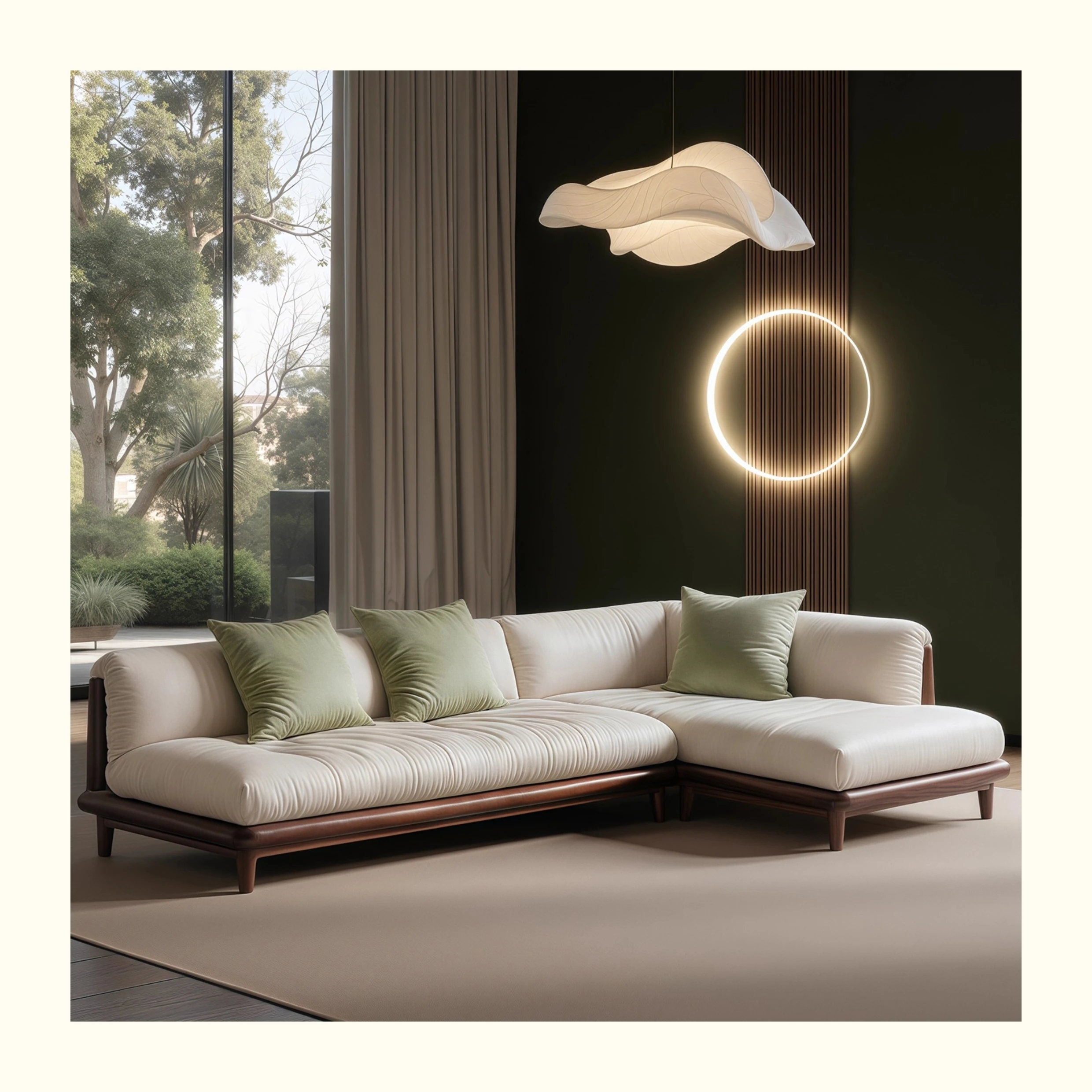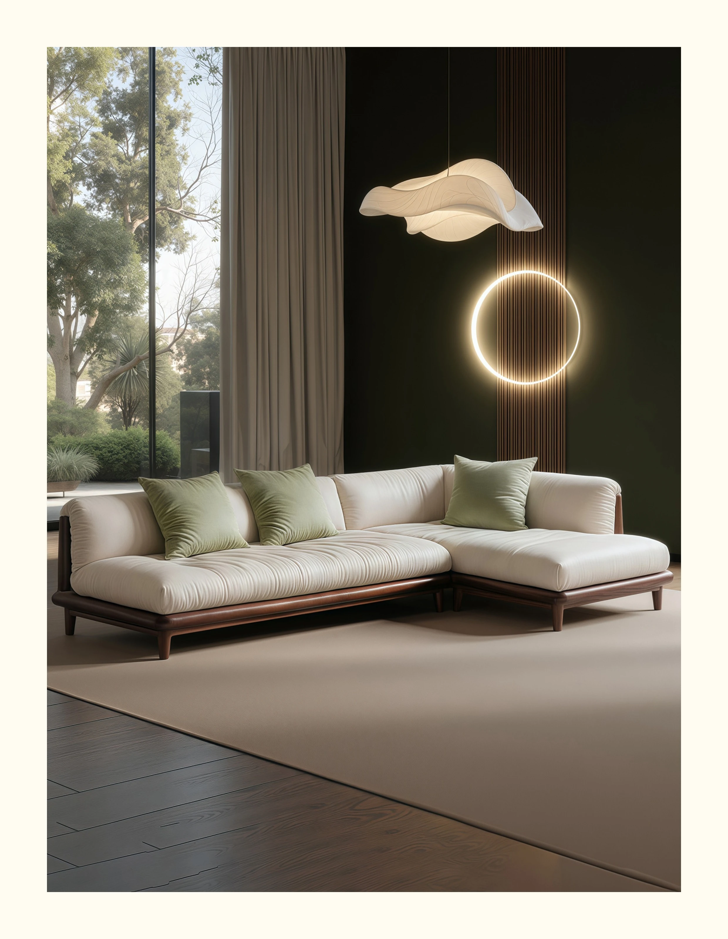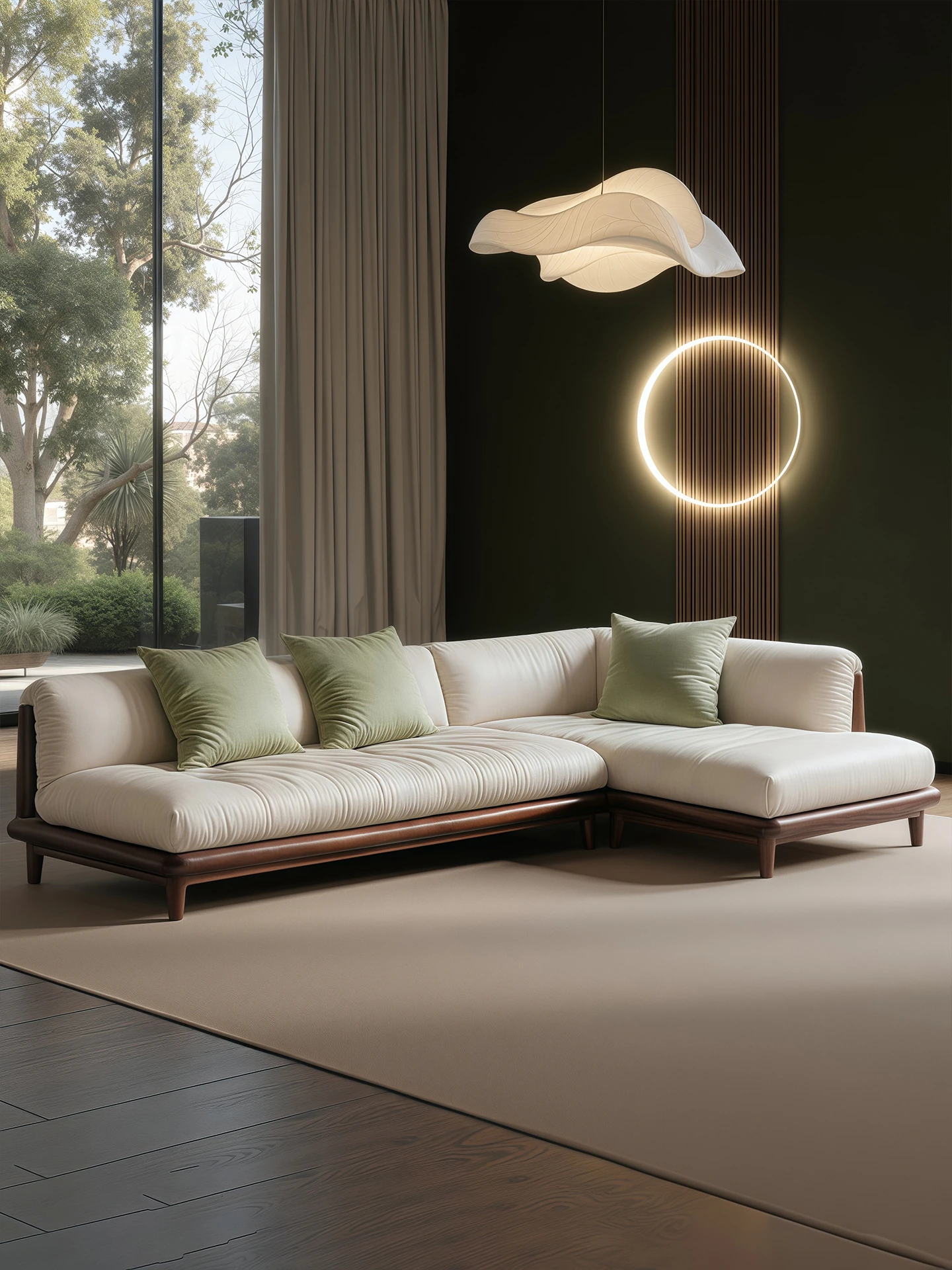 Italian Minimalist Solid Wood Sofa Set - Luxurious Curved Corner Sofa for Living Room, Villa, and Home Use. Stylish and Elegant Design for a Sophisticated Touch.