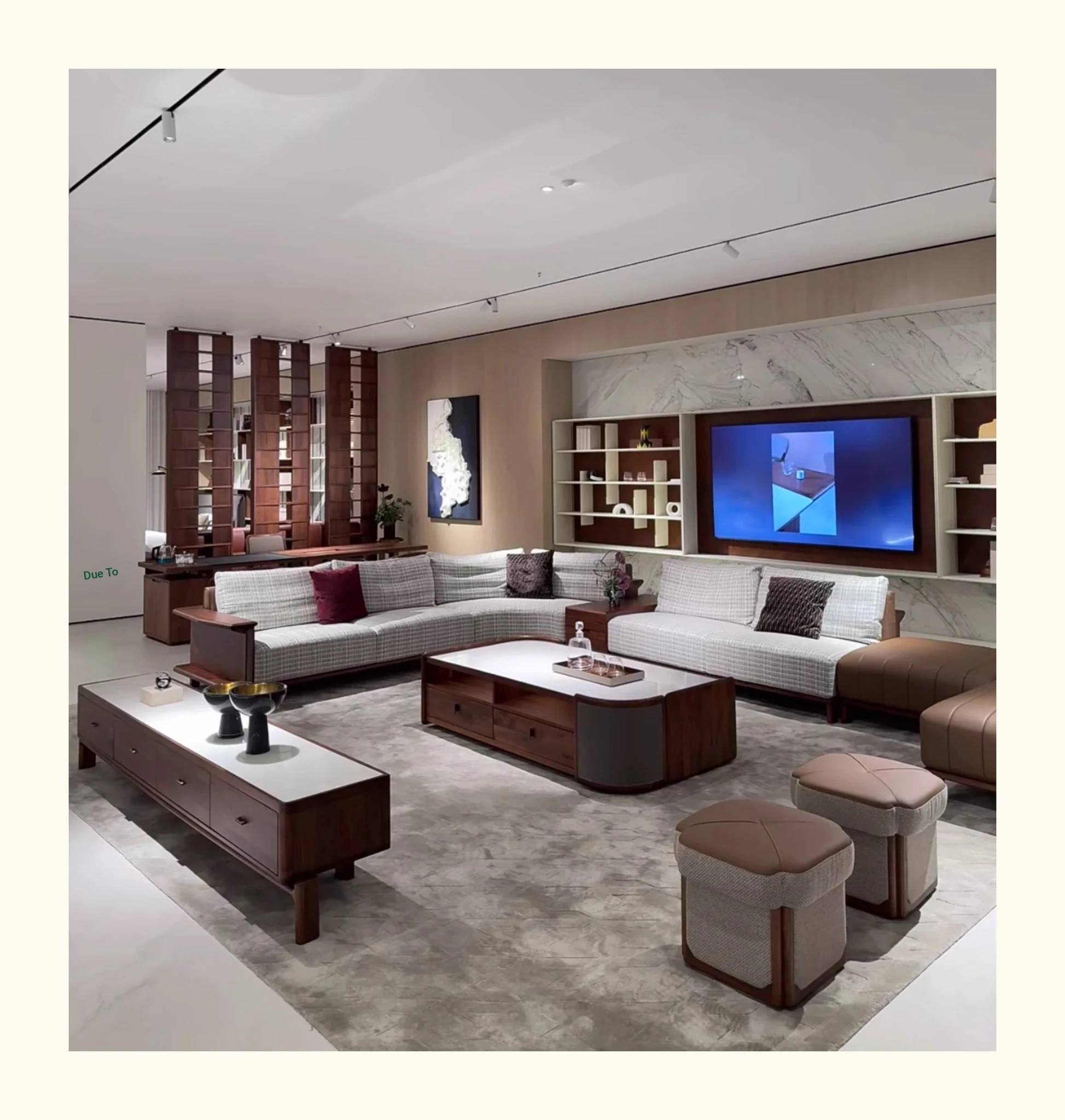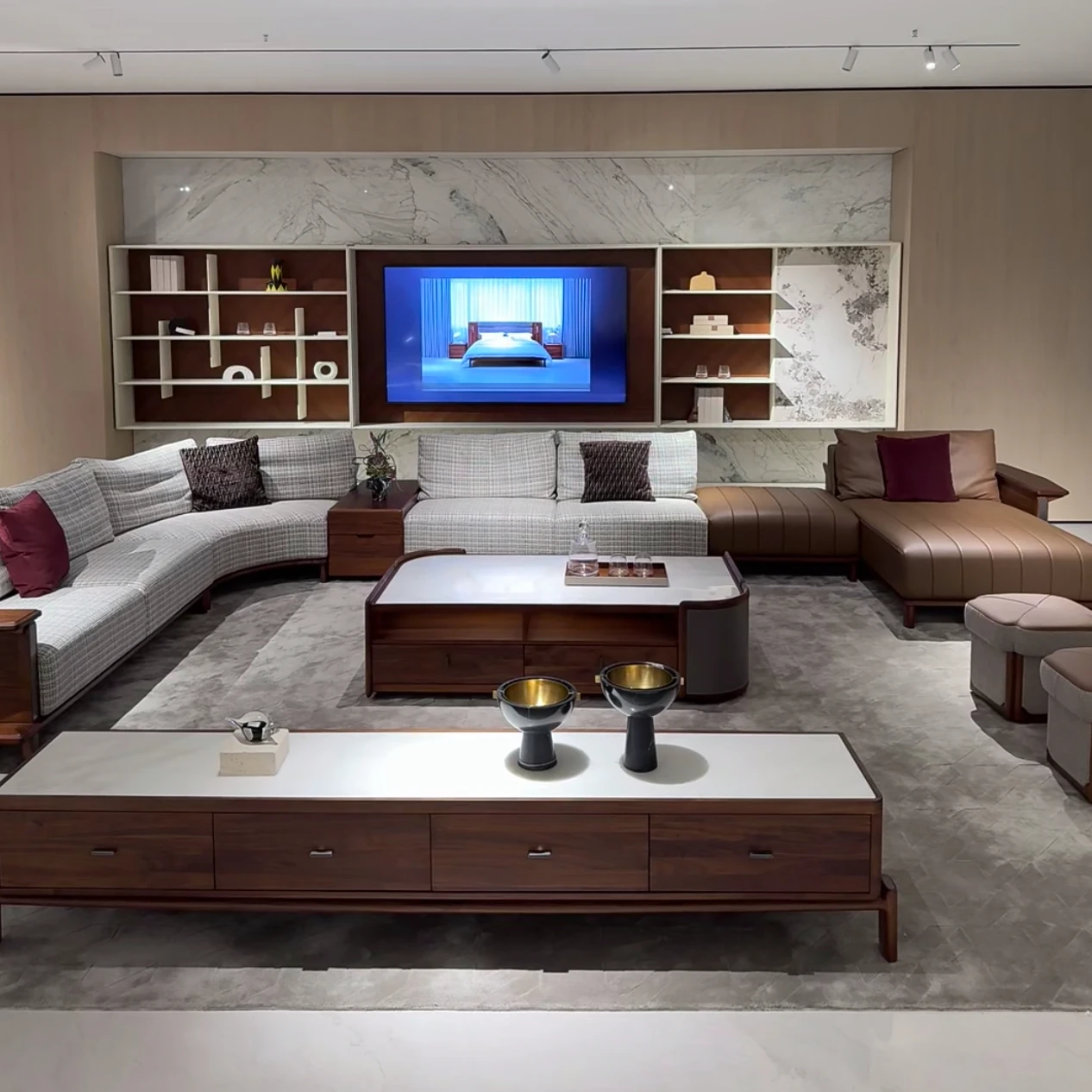Italian Minimalist Solid Wood Sofa Set - Luxury Curved Corner Sofa for Living Room, Villa, and Home. Elegant Design for a High-End Ambiance.