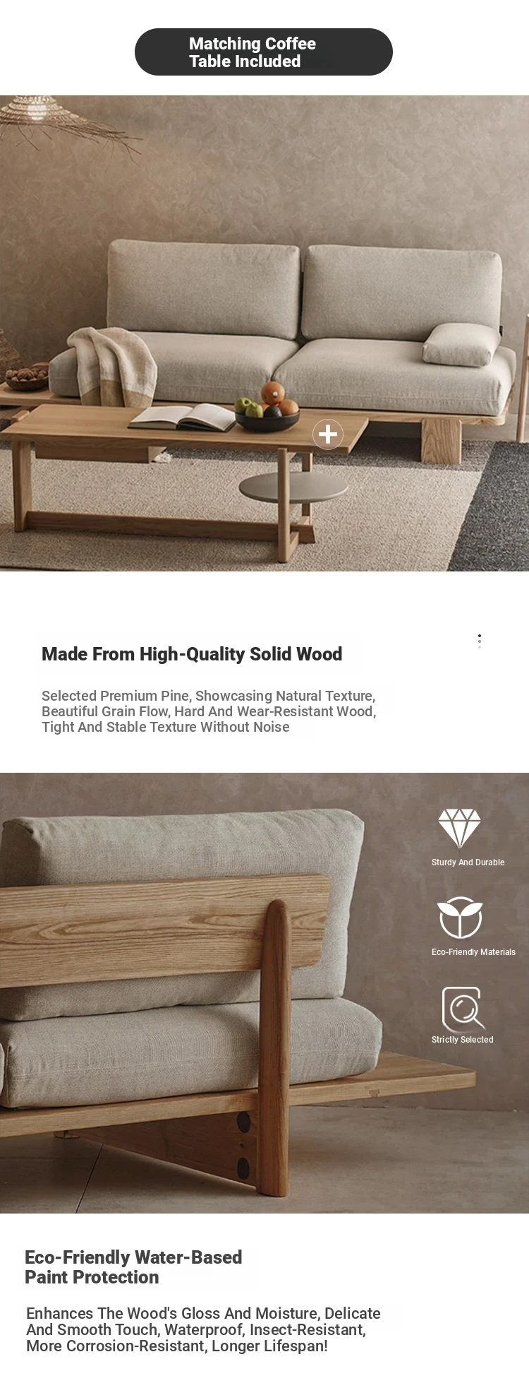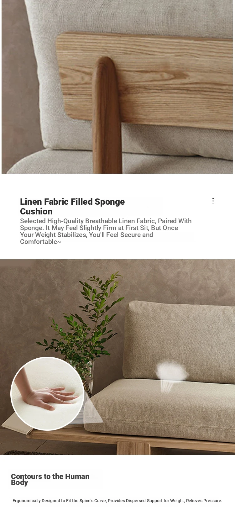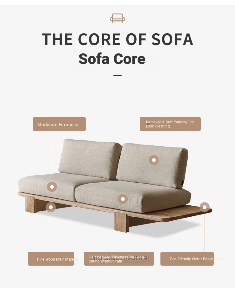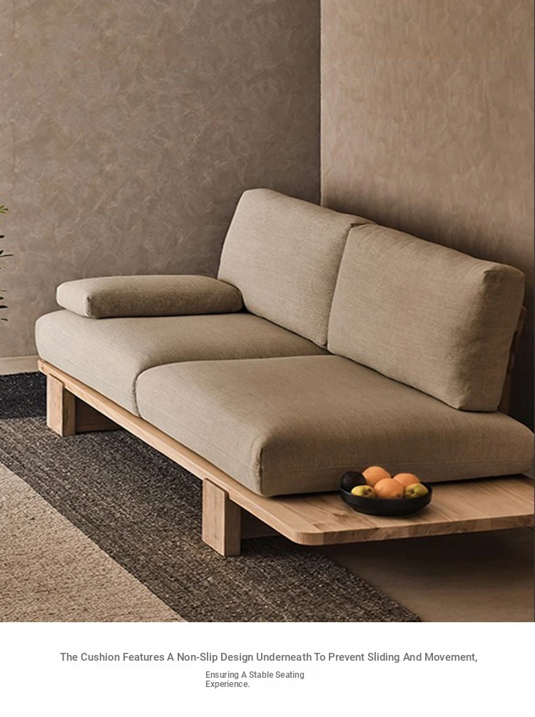 Japanese Wabi-Sabi Style Solid Wood and Fabric Sofa for Small Spaces - Removable and Washable Living Room Chairs for Relaxation, Available in Single and Double Seater Options. Perfect for Cozy Interiors!