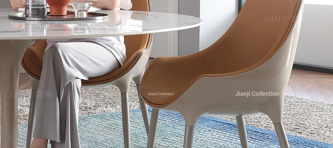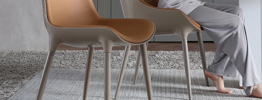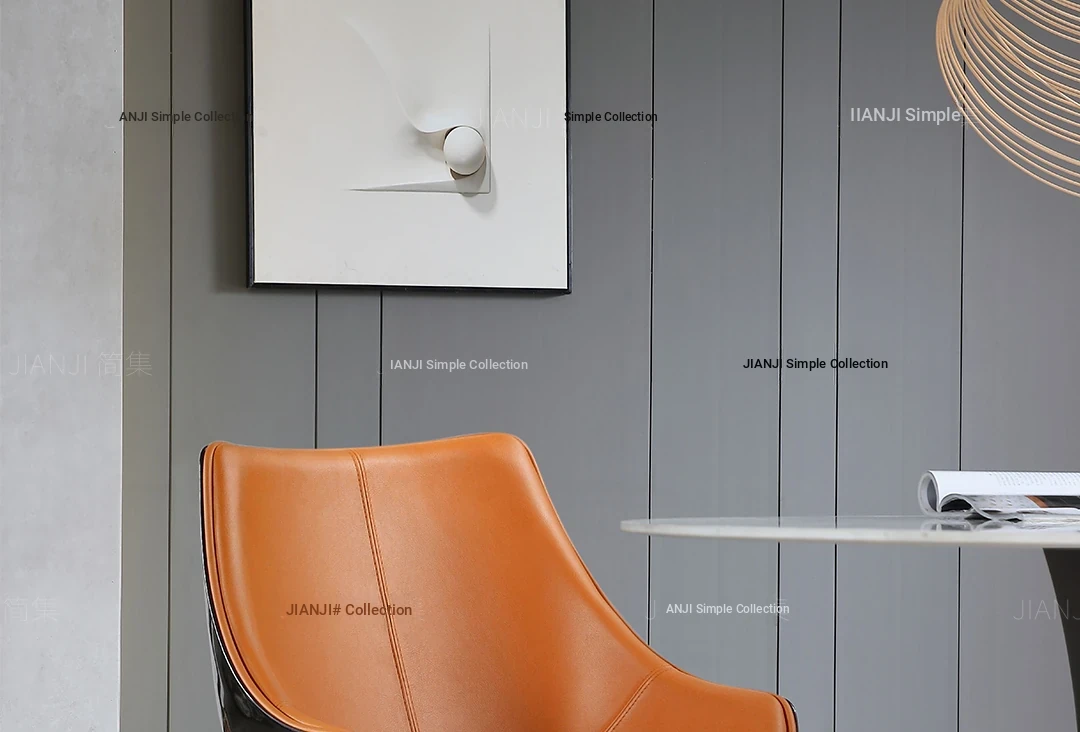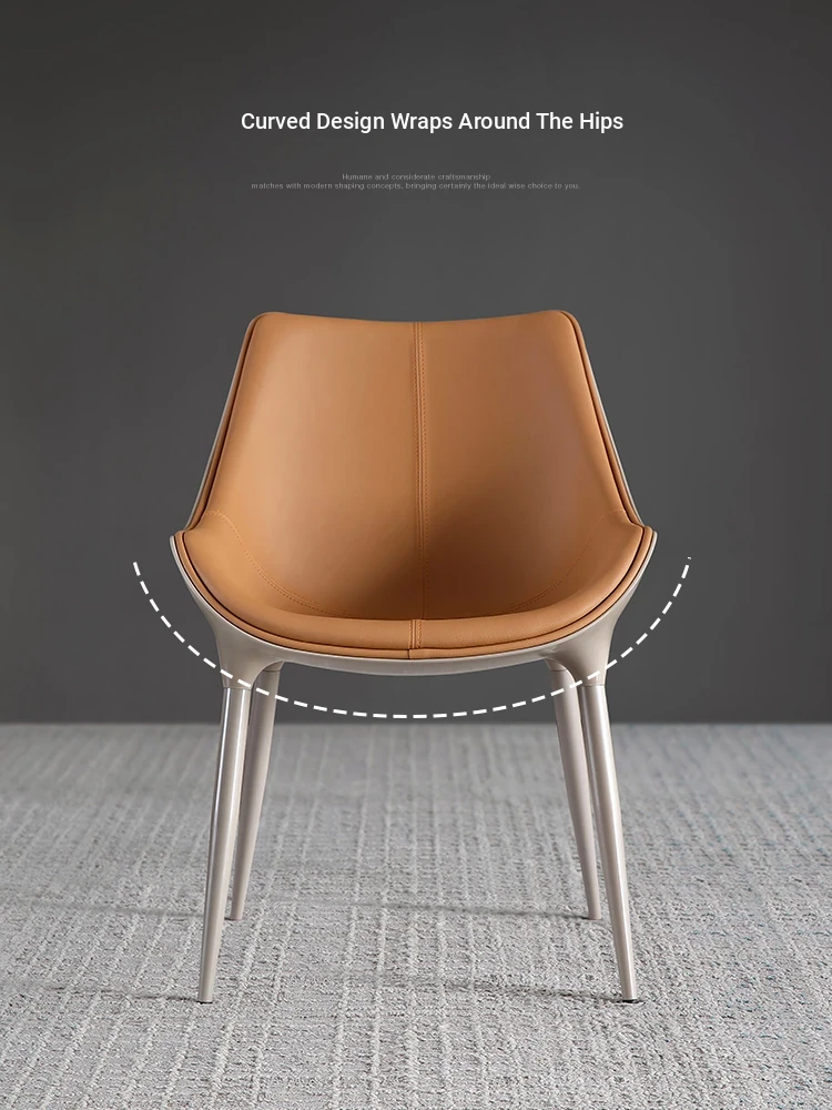 Luxury Genuine Leather Dining Chair - Italian Minimalist Design with Top-Grade Cowhide for a Modern Touch, Perfect for Upscale Home Dining and Designer Restaurants.