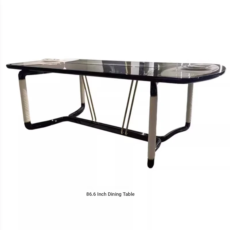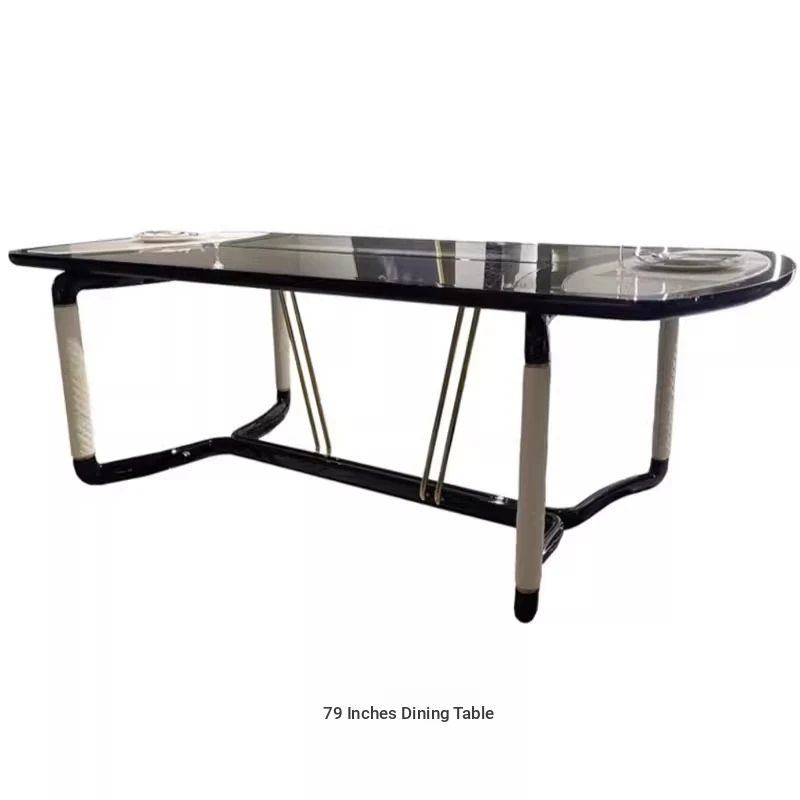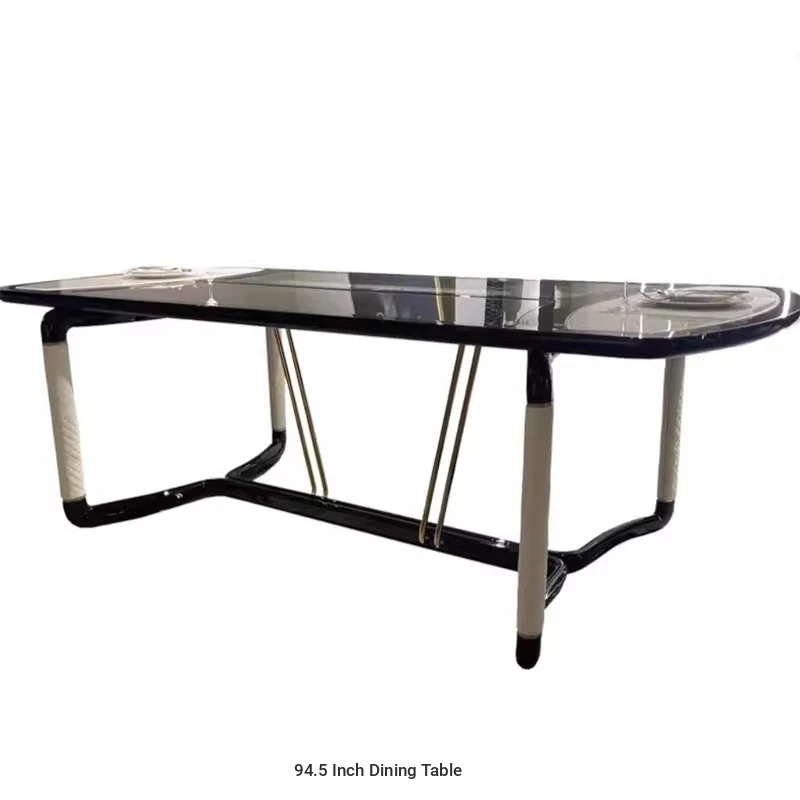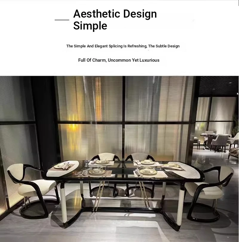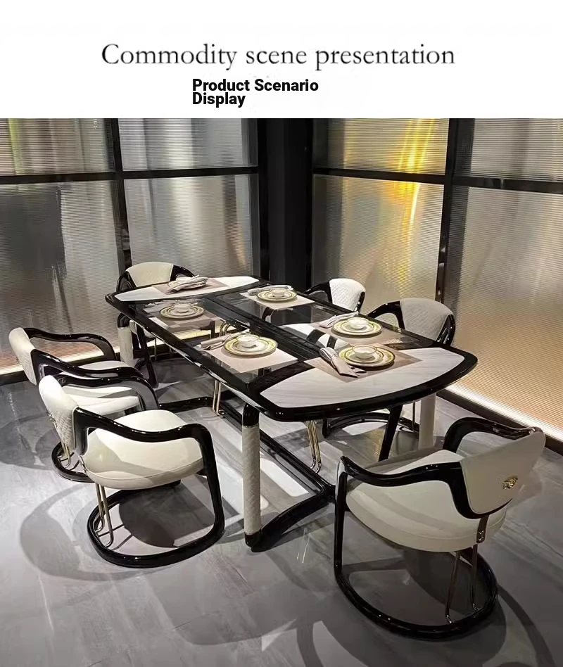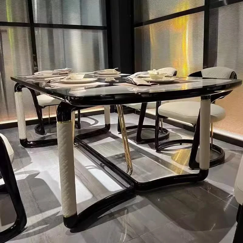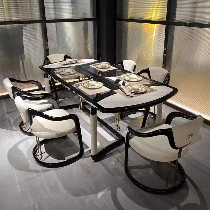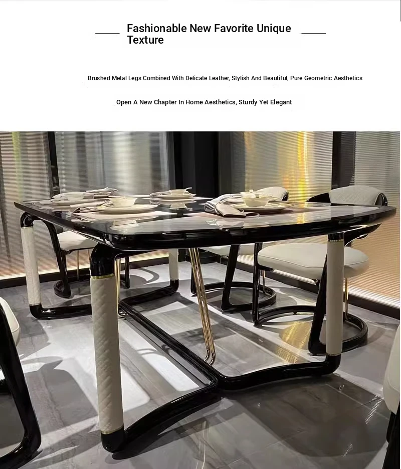Luxury Italian Style Genuine Leather Dining Table and Chair Set - Rectangular Design for Spacious Dining Rooms, Factory Direct Sales, Perfect for Elegant Homes