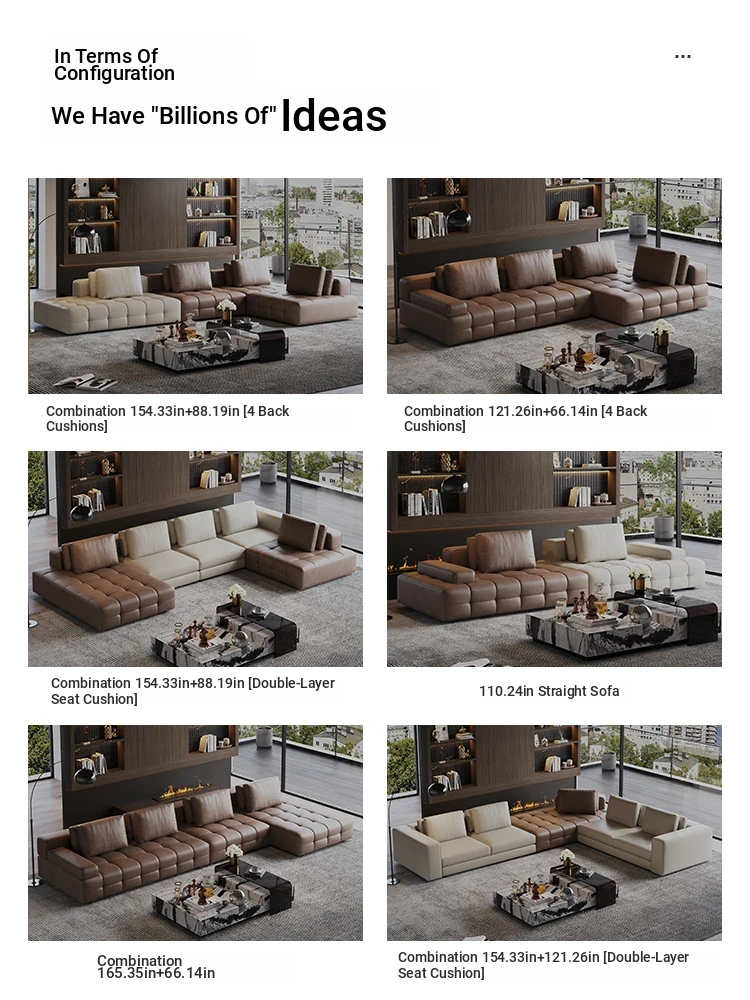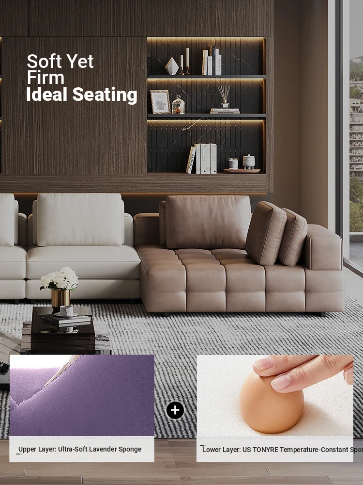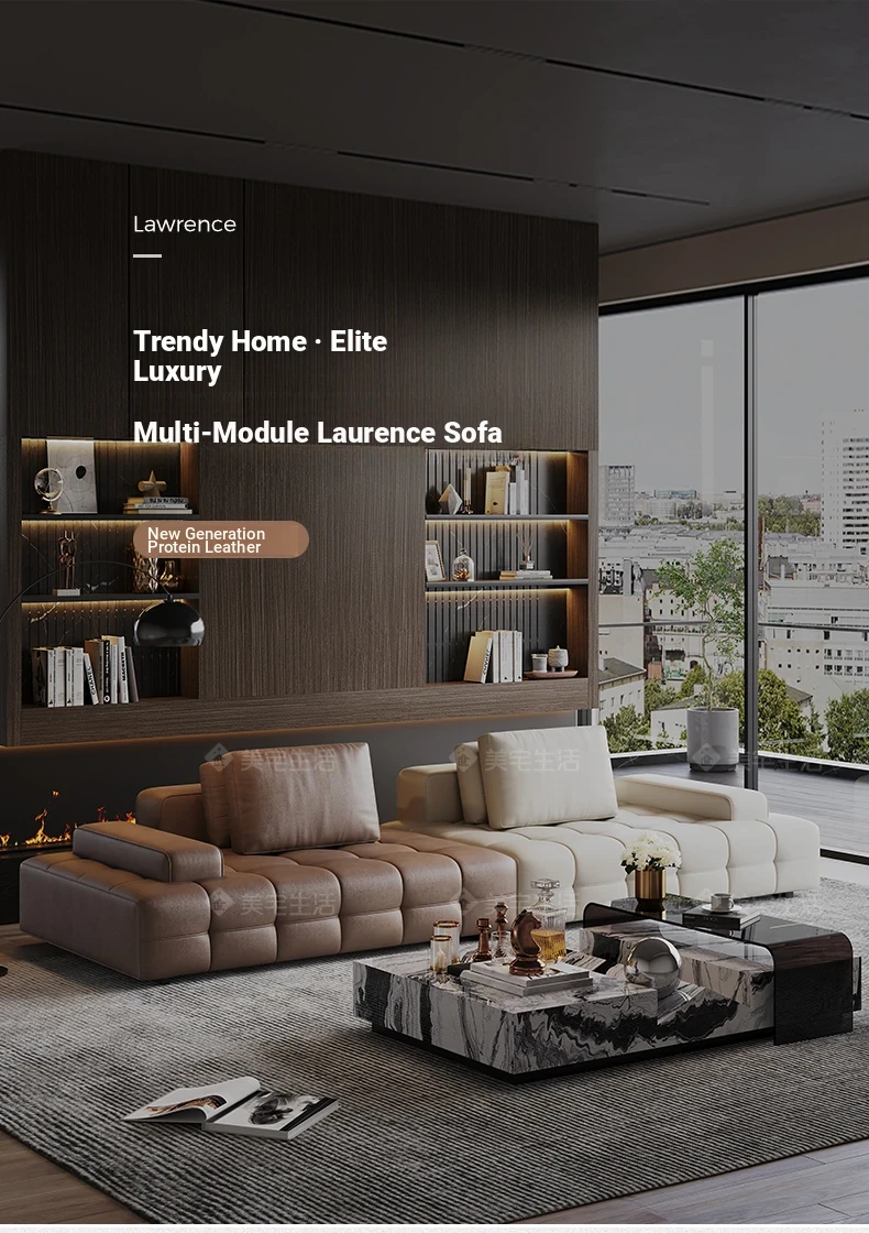 Luxury Lawrence Large Living Room Genuine Leather Sofa - Italian Minimalist Villa Modular Design, Premium Top-Grain Leather, Chic Elegance for Sophisticated Homes