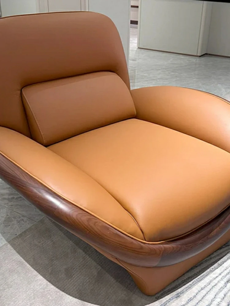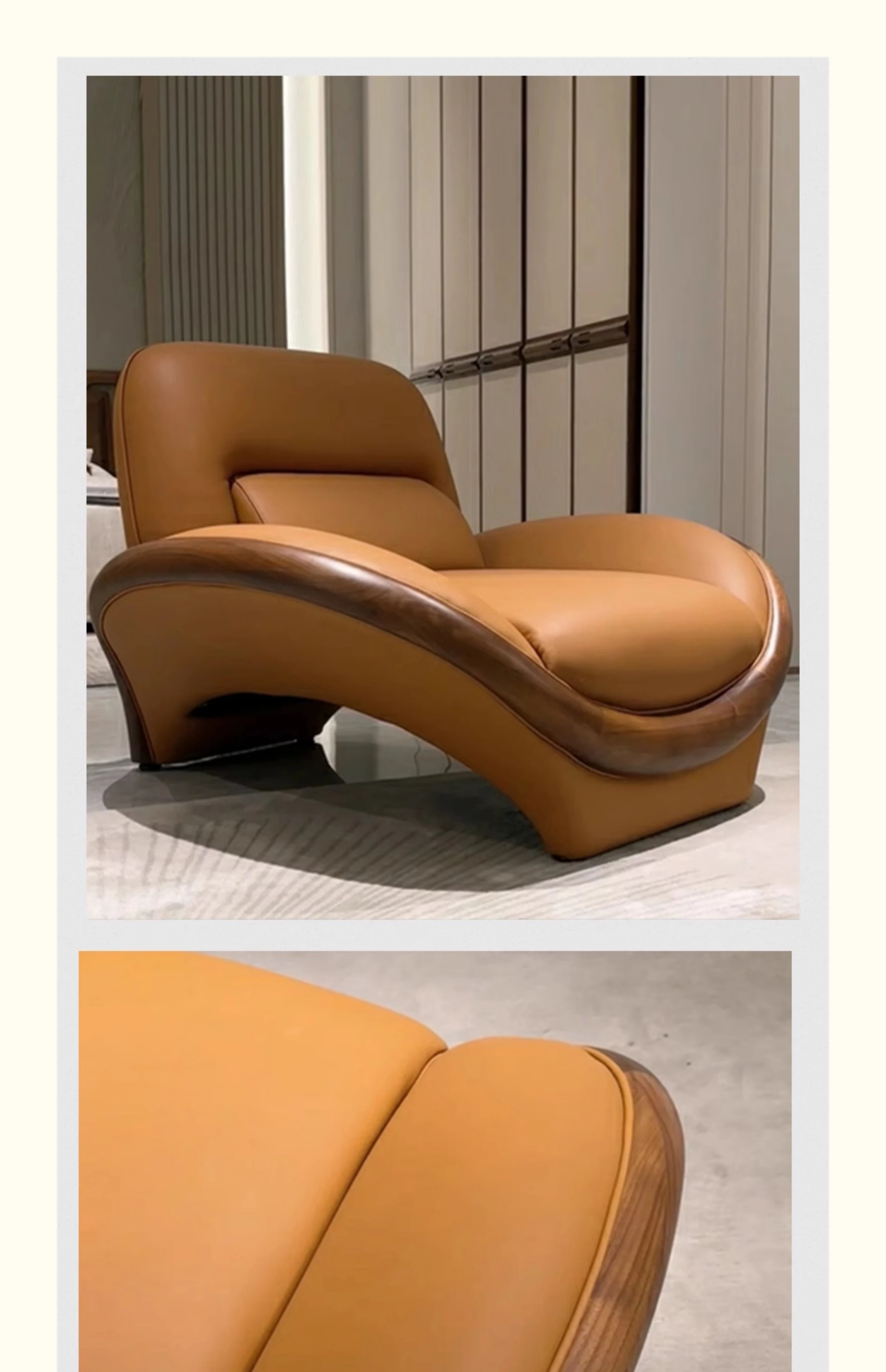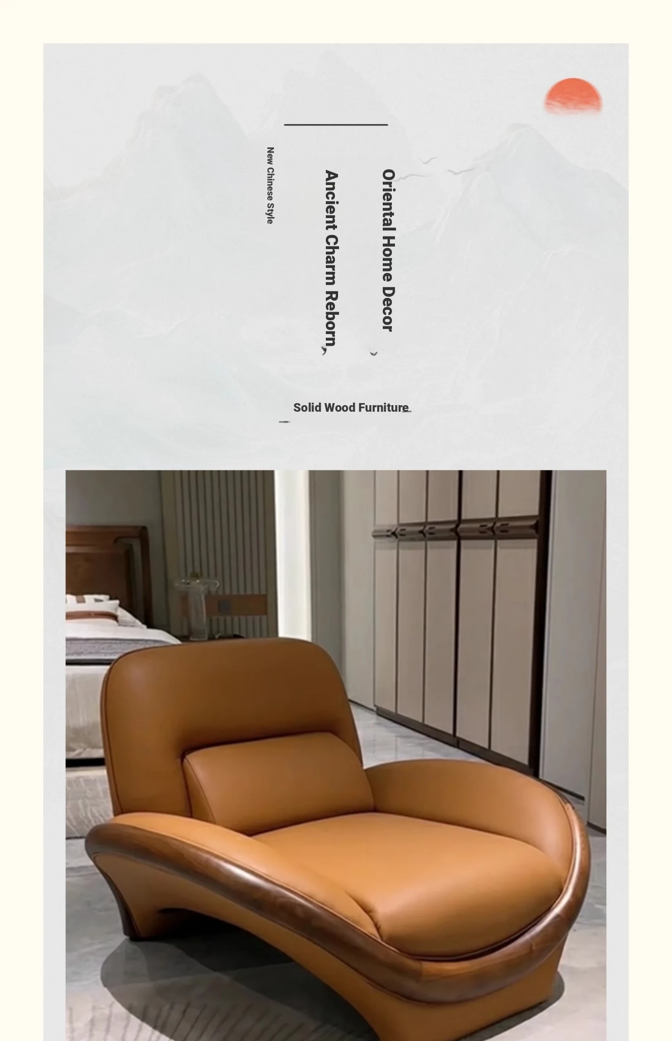 Luxury Walnut Wood Recliner Chair for Balcony and Living Room - Stylish Single Sofa in New Chinese Style, Perfect for High-End Villas and Relaxation
