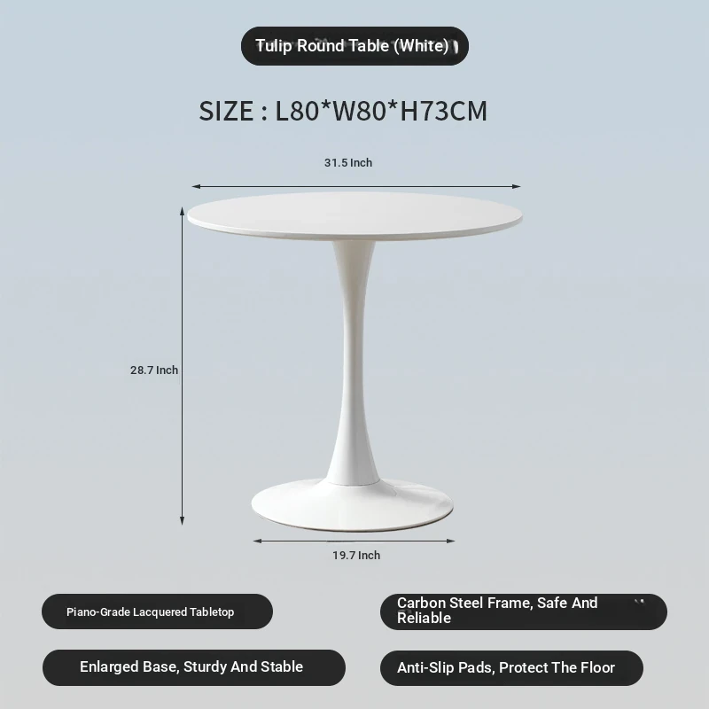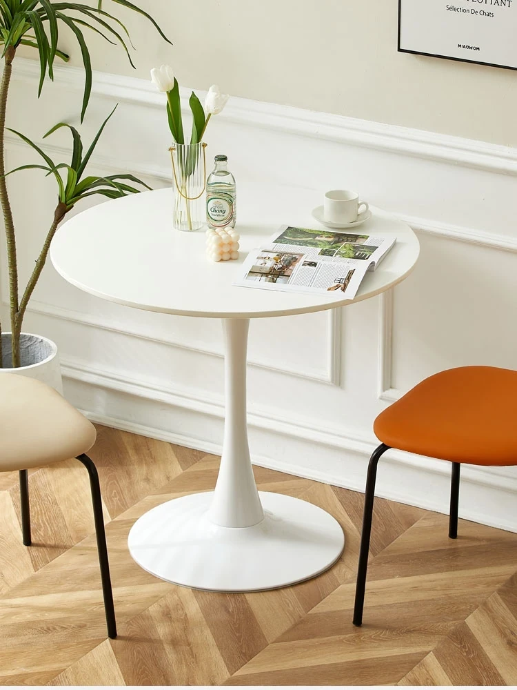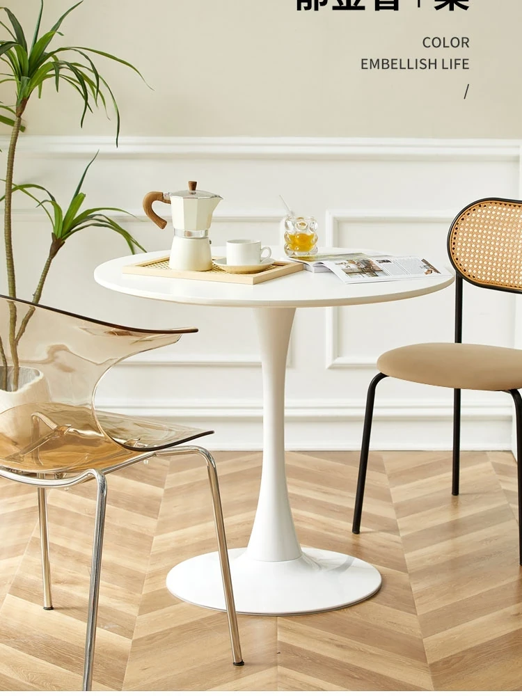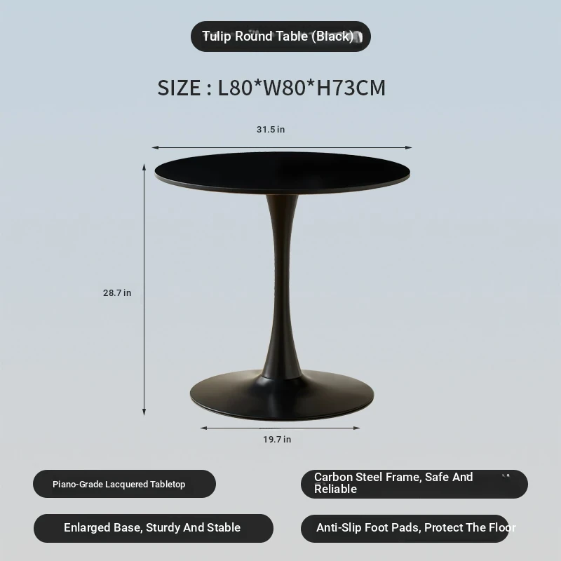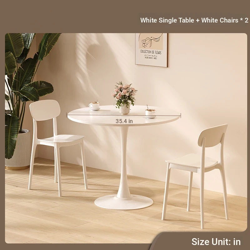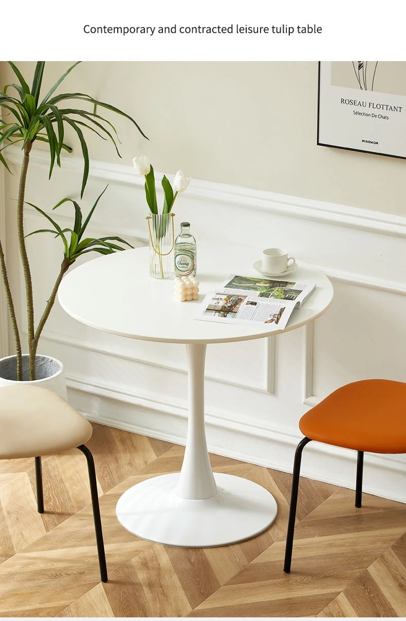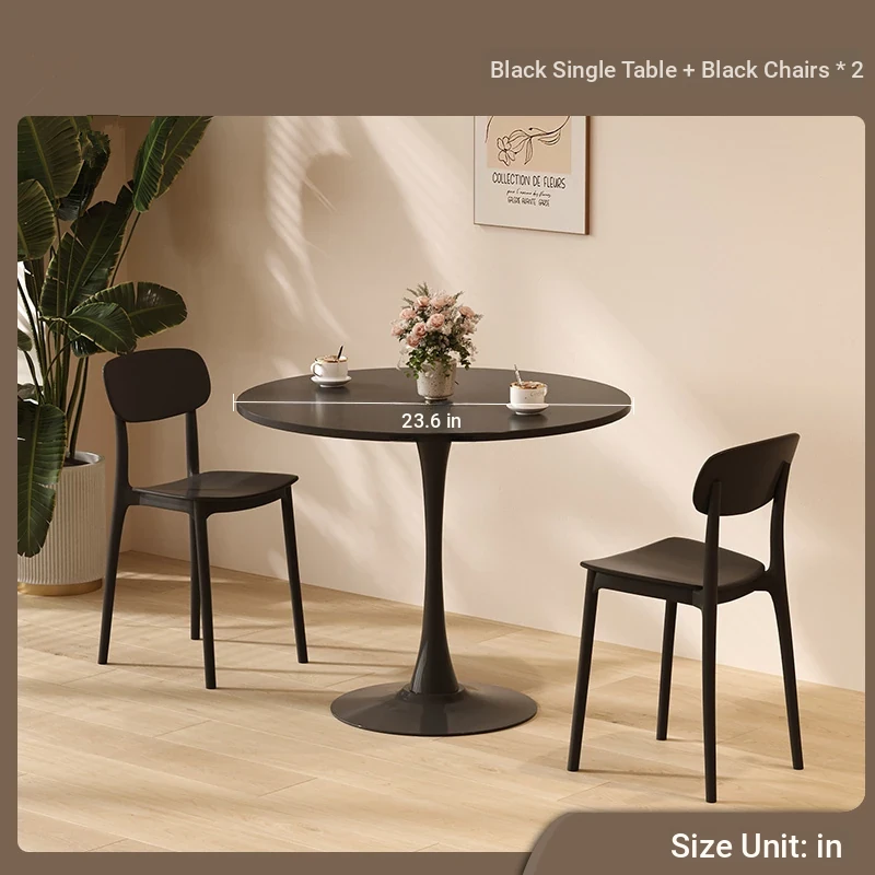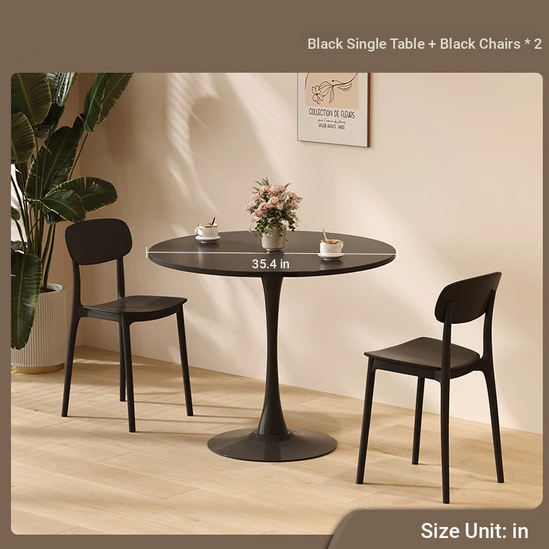 Minimalist Round Tulip White Coffee Table - Scandinavian Style Black Balcony Dining Set for Casual Conversations, Perfect for Modern Home Décor