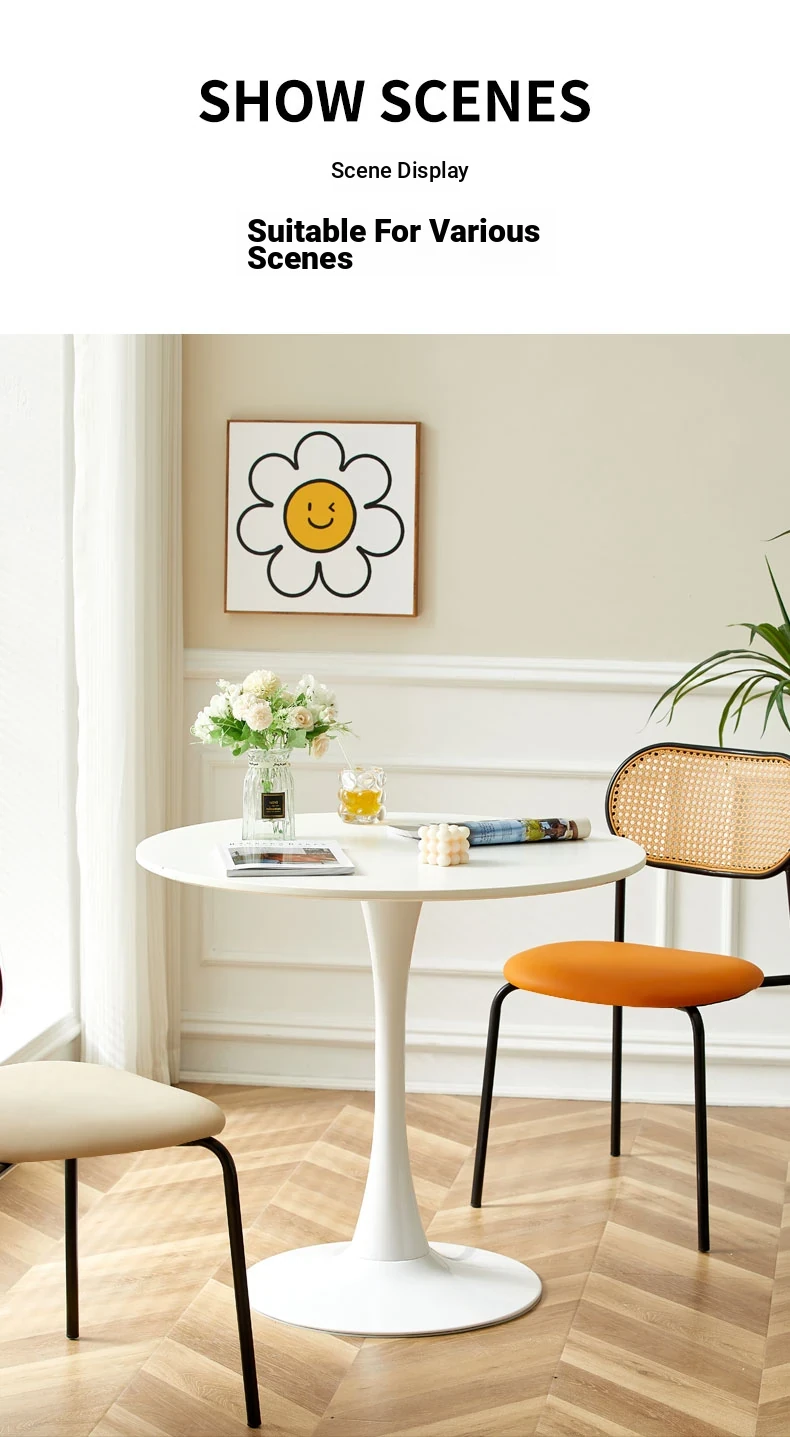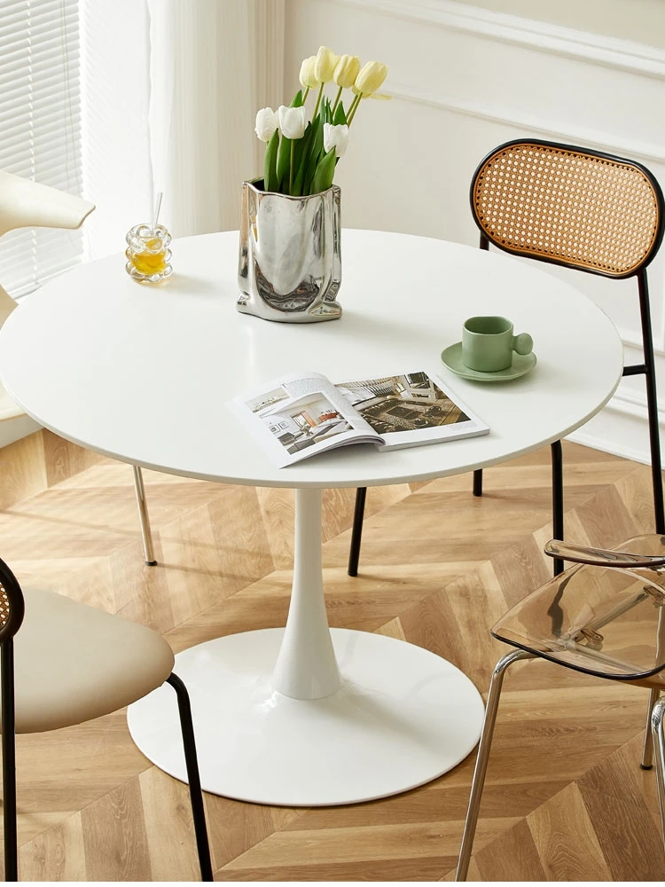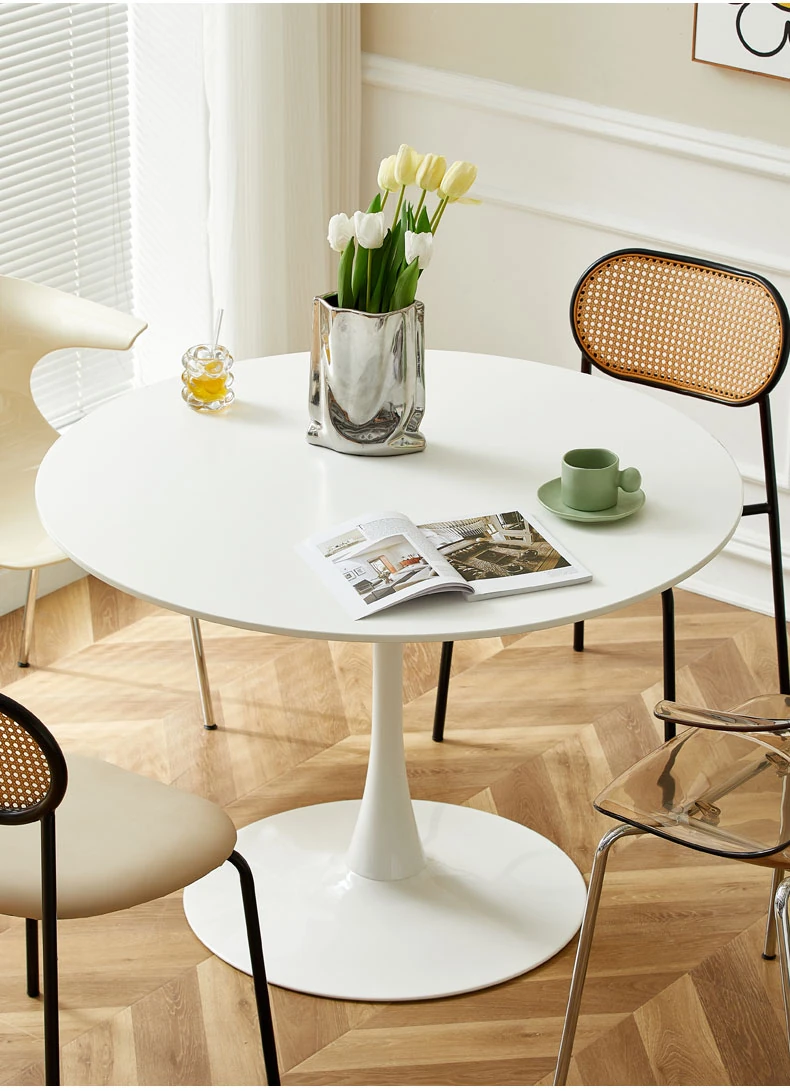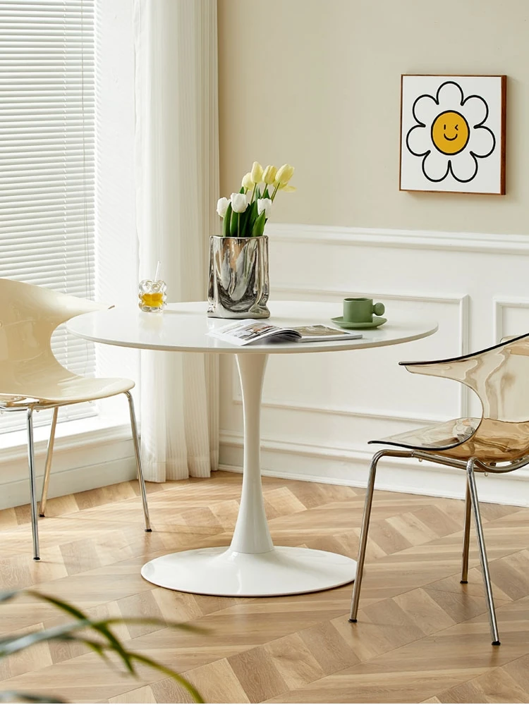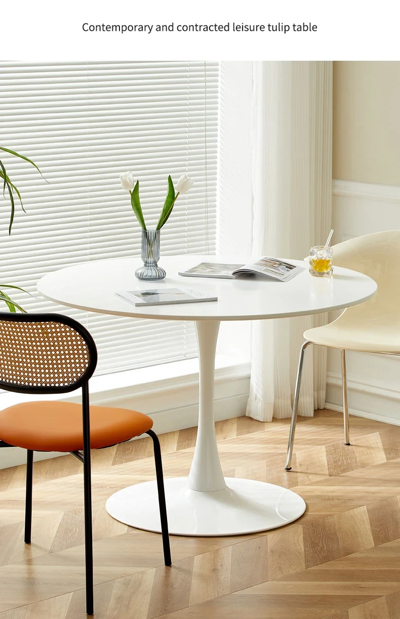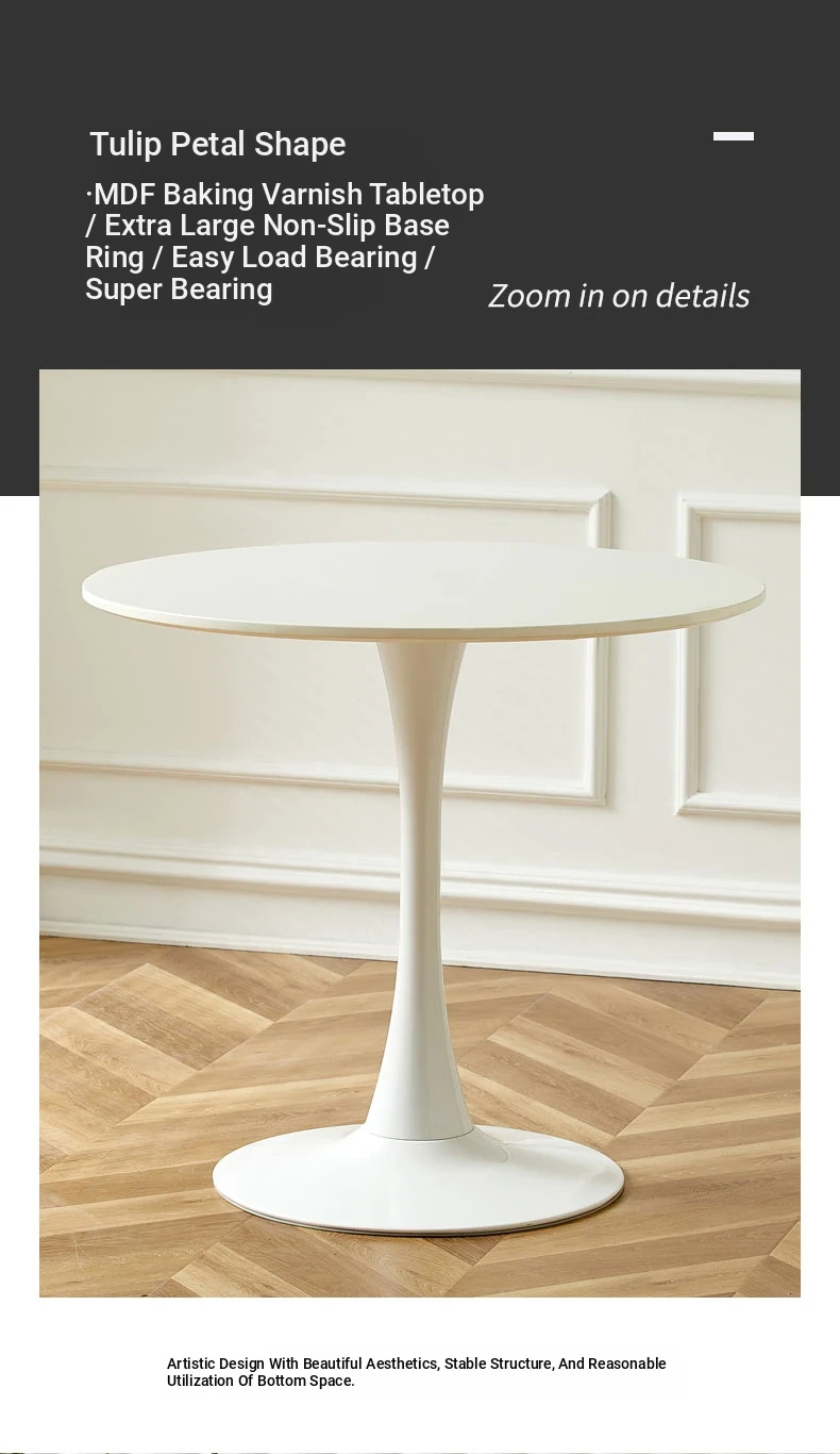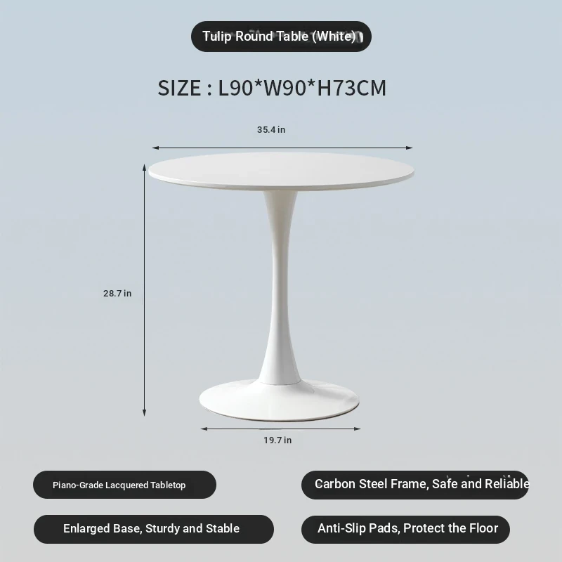 Minimalist Round Tulip White Coffee Table - Scandinavian Style Black Balcony Dining Set for Casual Conversations, Perfect for Modern Home Décor