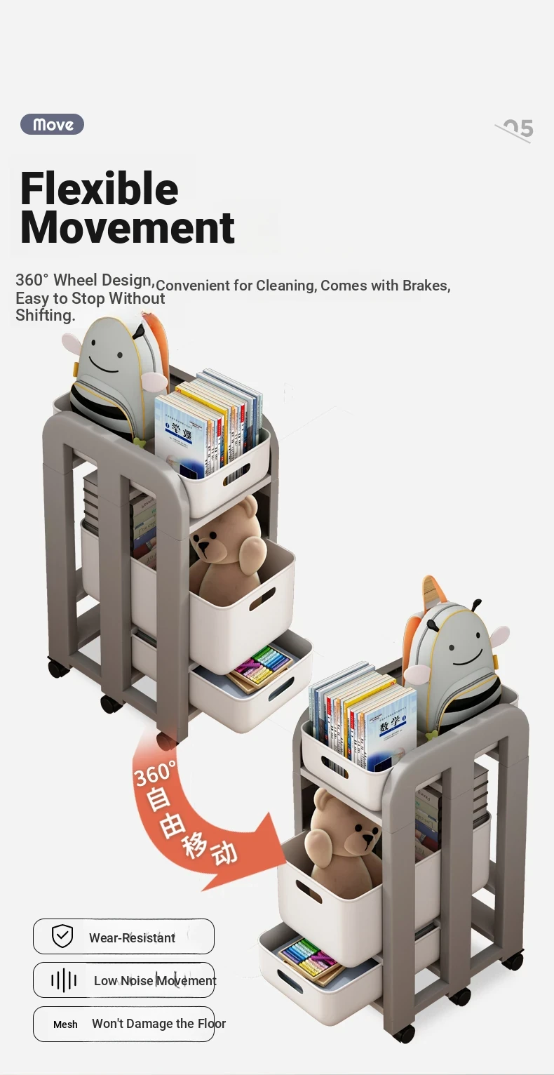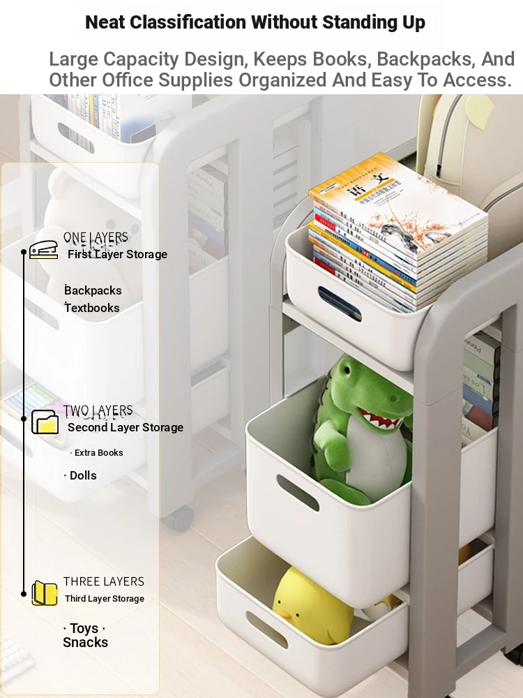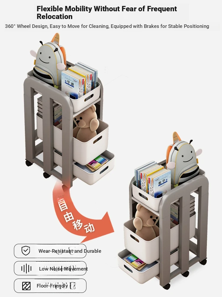 Mobile Bookshelf and Storage Cart - Compact Under-Desk Organizer for Office Workstations, Perfect for Keeping Your Space Tidy and Efficient!