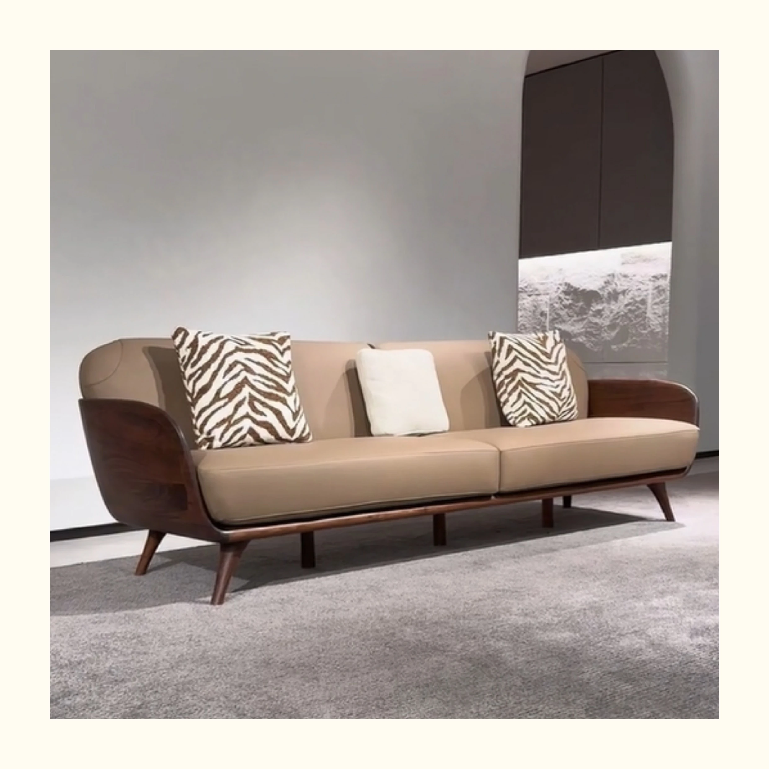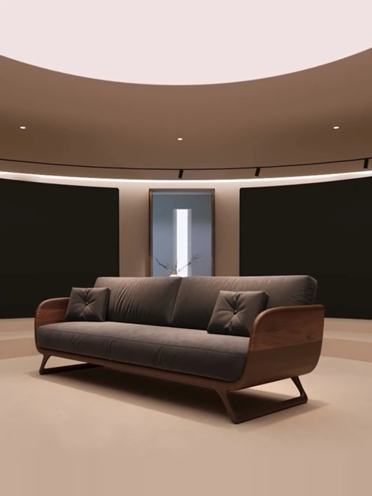 Modern Chinese Solid Wood Sofa - Minimalist Design, 3-Seater for Home Living Room, Villa, Hotel Lobby Reception, Stylish and Comfortable Couch