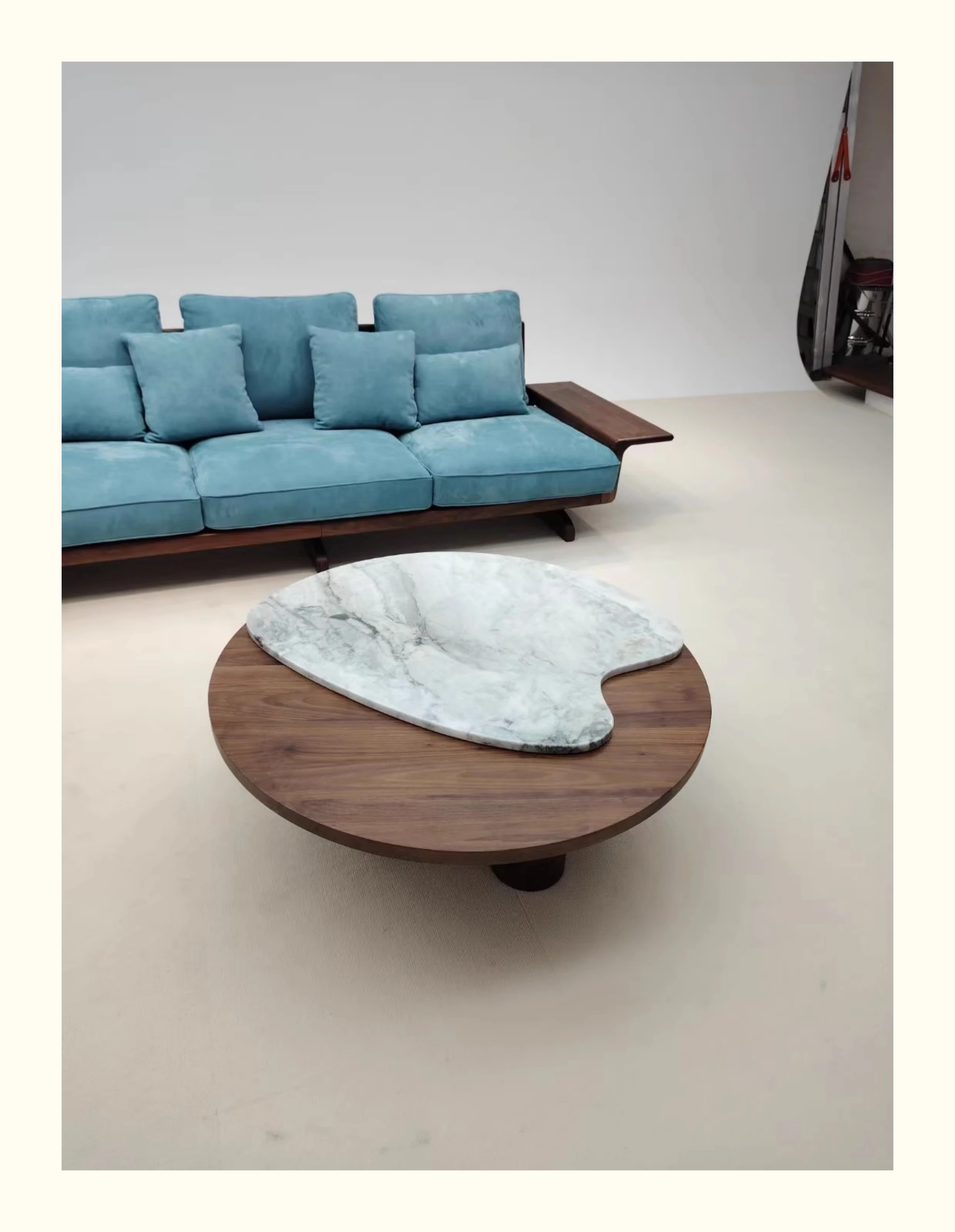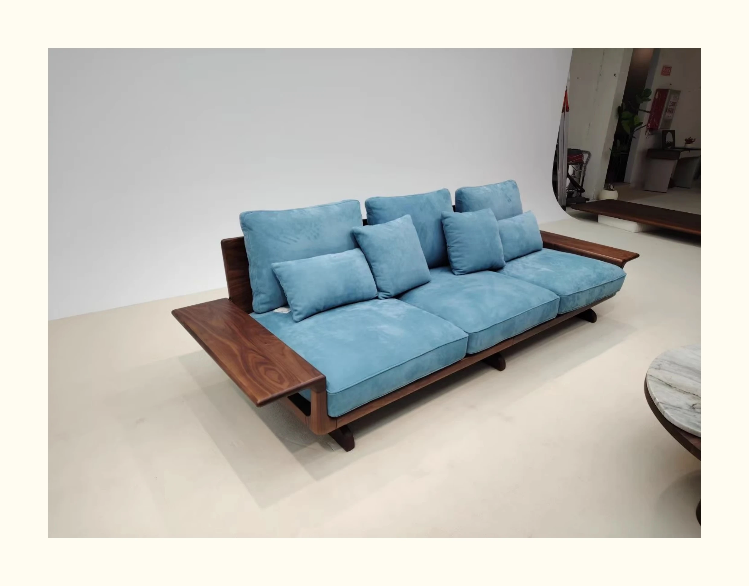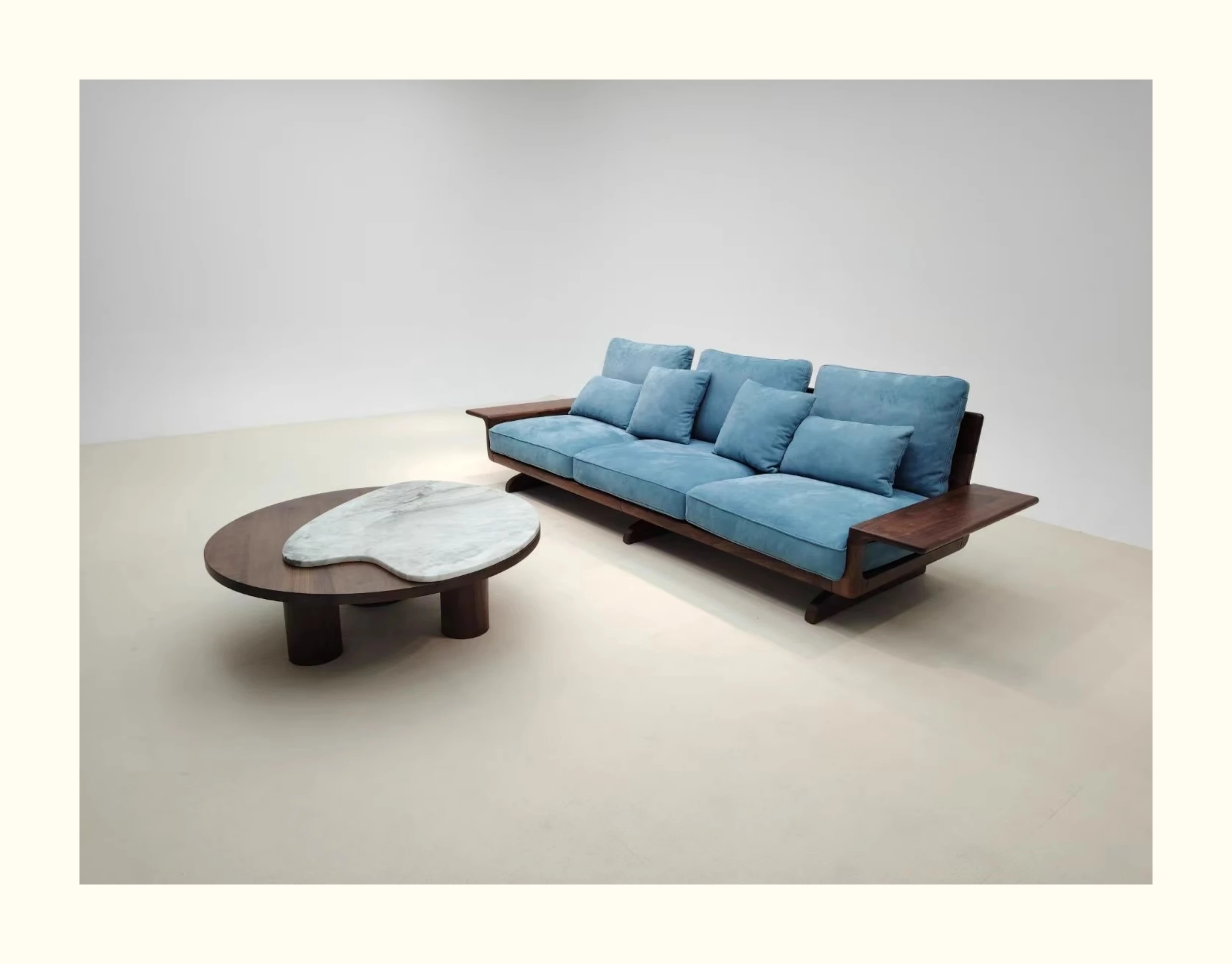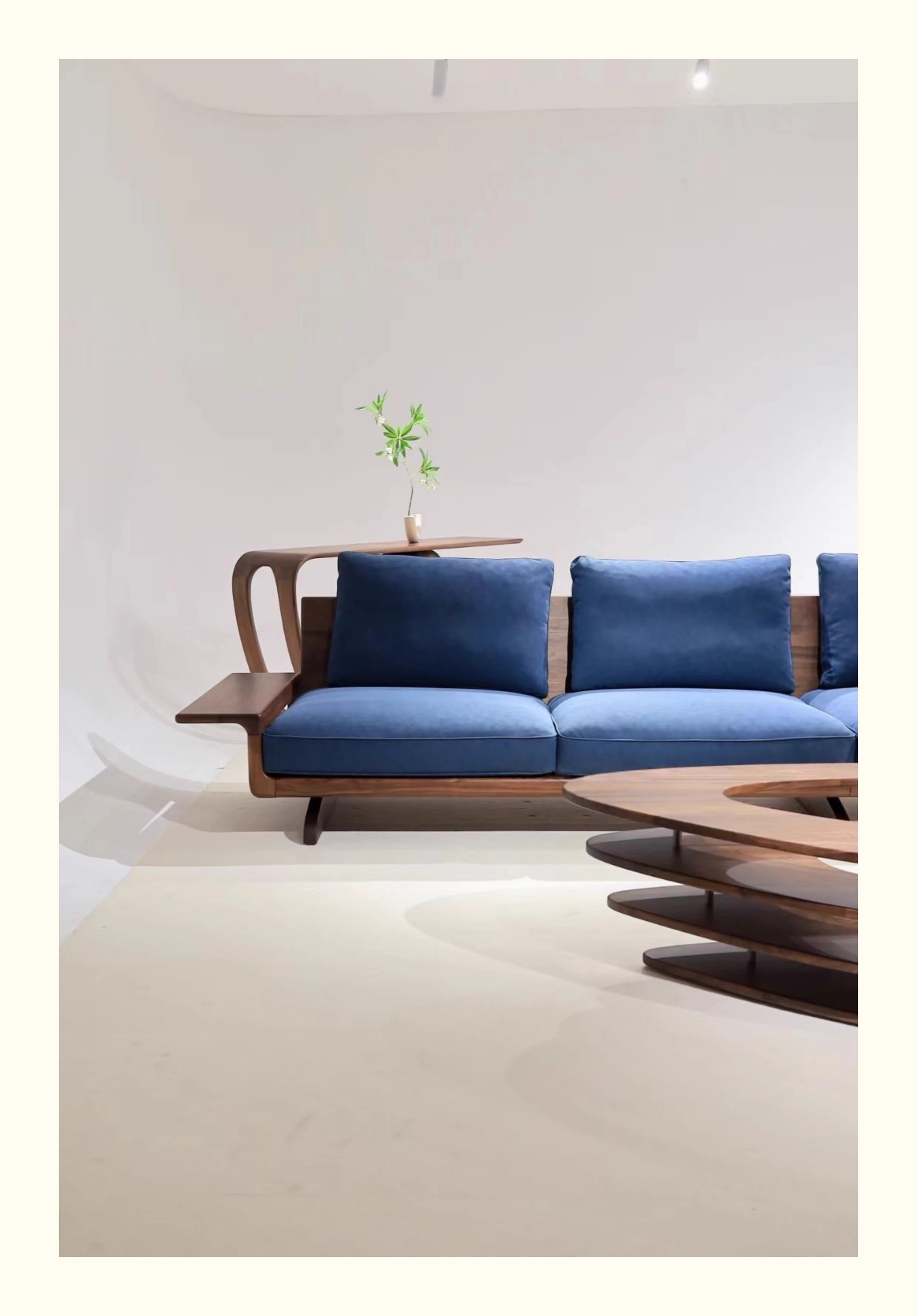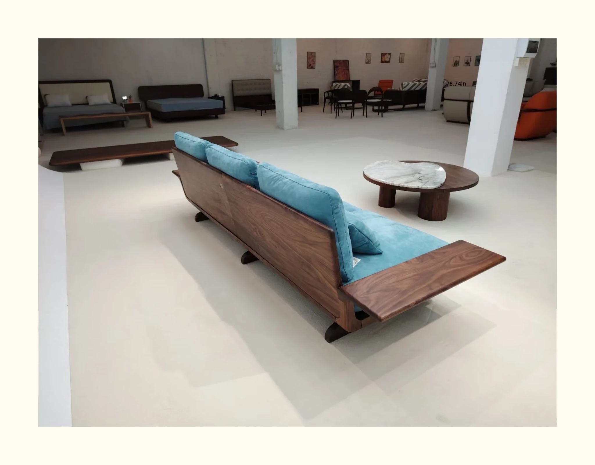 Modern Chinese Solid Wood Sofa Set - Walnut Three-Seat Designer Sofa for Living Room, Clubhouse, and Villa