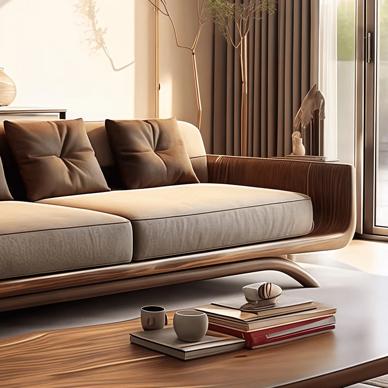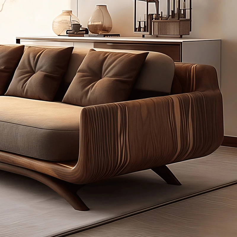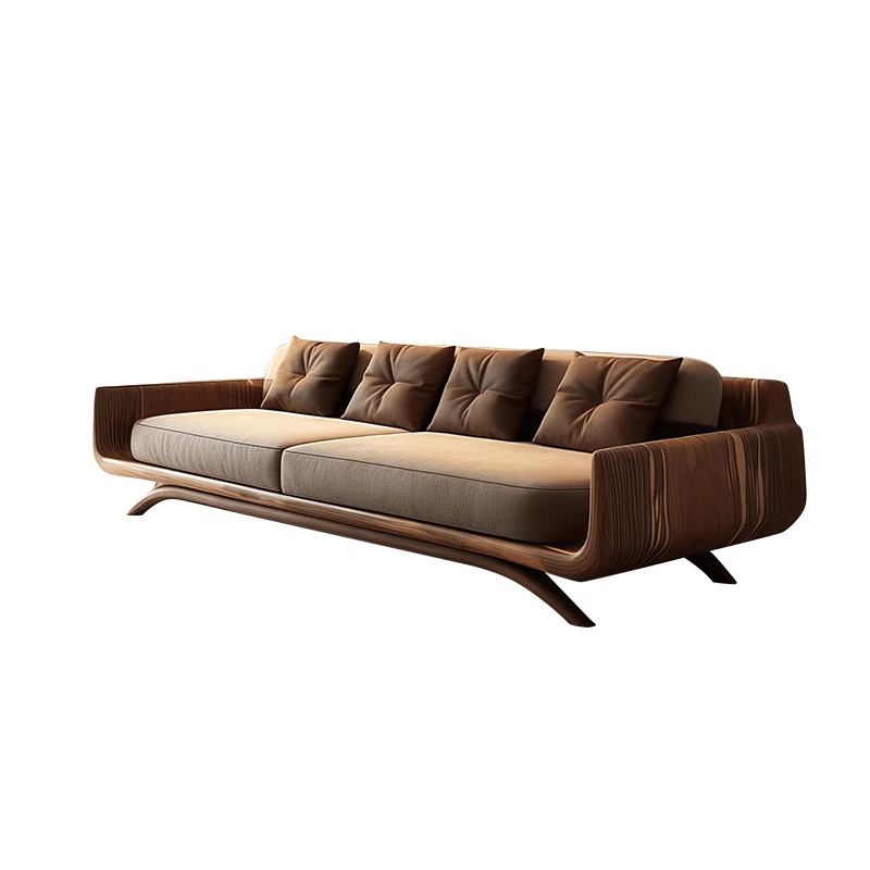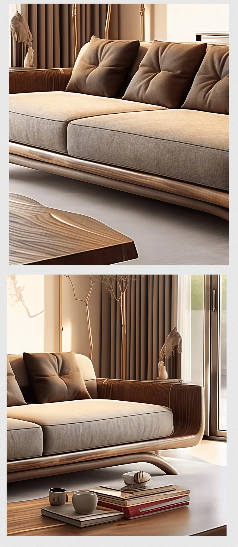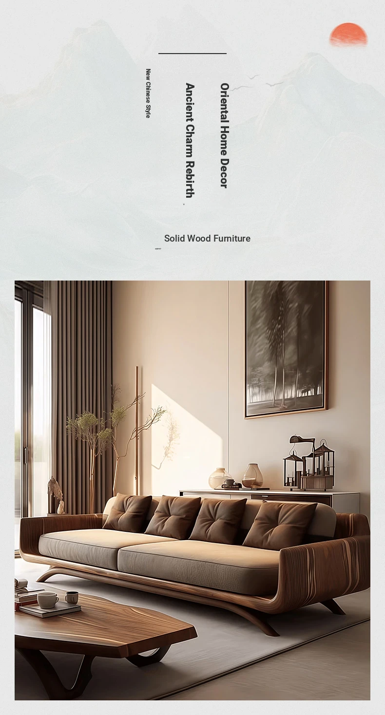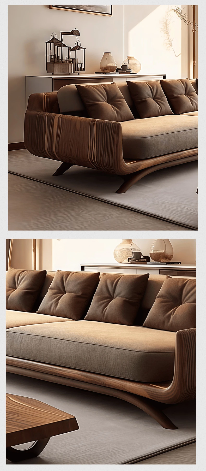 Modern Chinese Style North American Black Walnut Sofa - Minimalist Leather Upholstered Sofa for Living Room, Solid Wood Furniture Ideal for Small Spaces