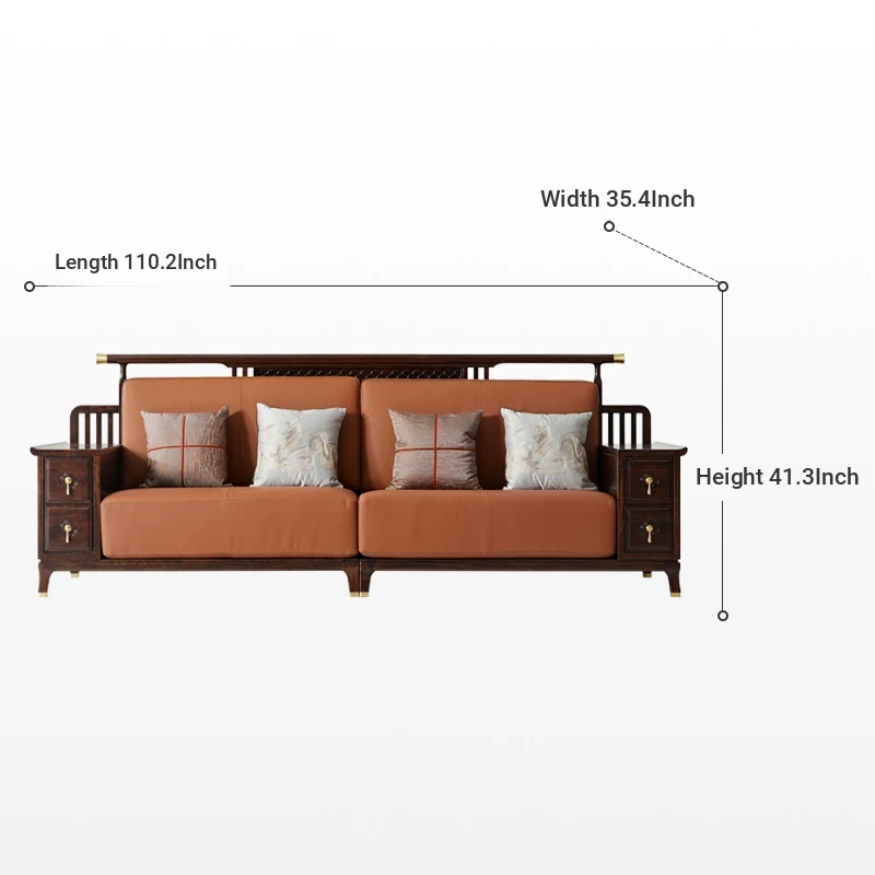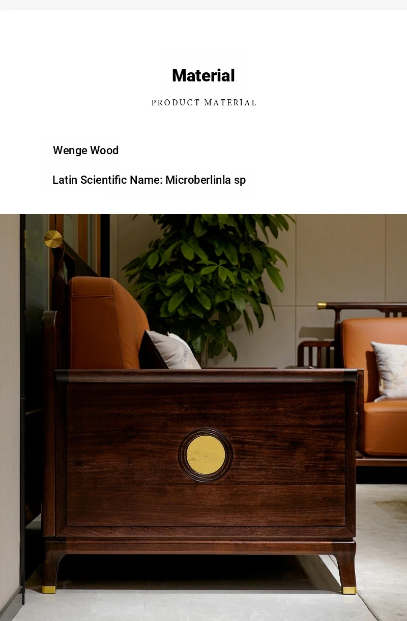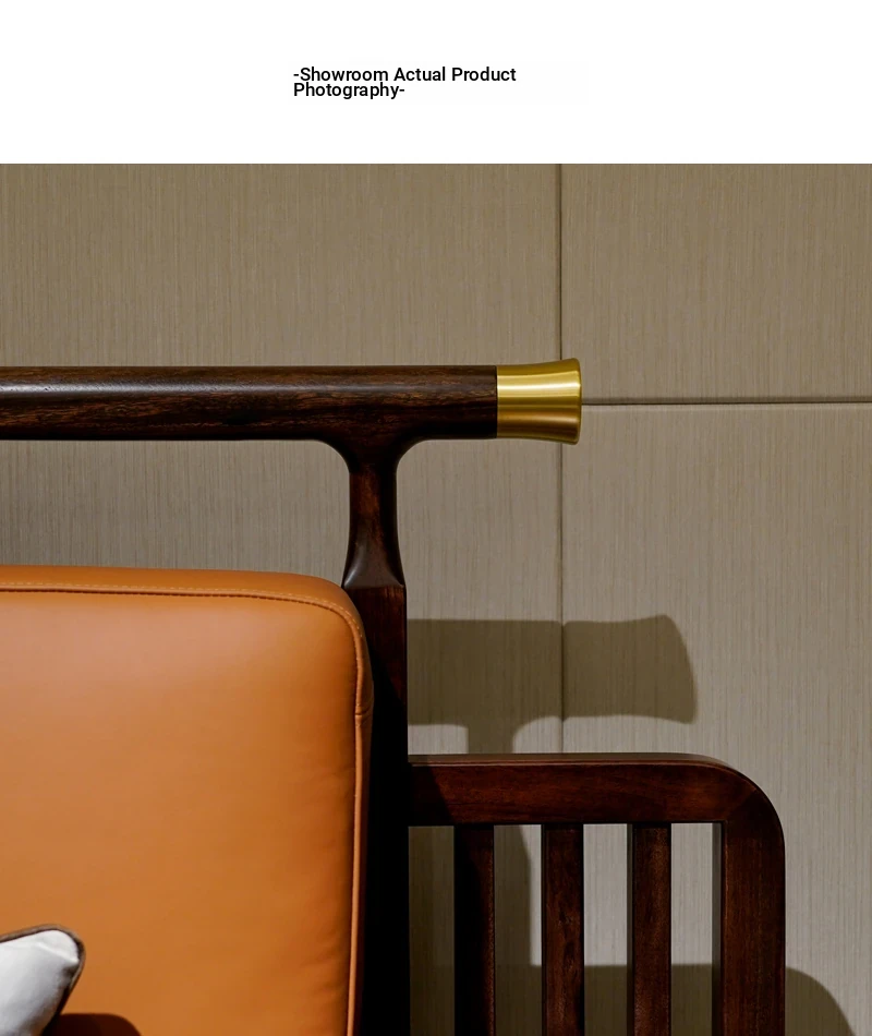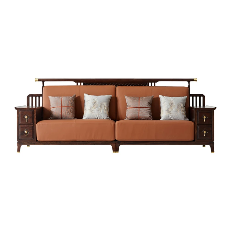 Modern Chinese-Style Solid Wood Sofa with Black Gold Finish - Luxury Leather Sofa Set for Spacious Living Rooms and Villas. Perfect for Elegant Home Décor!