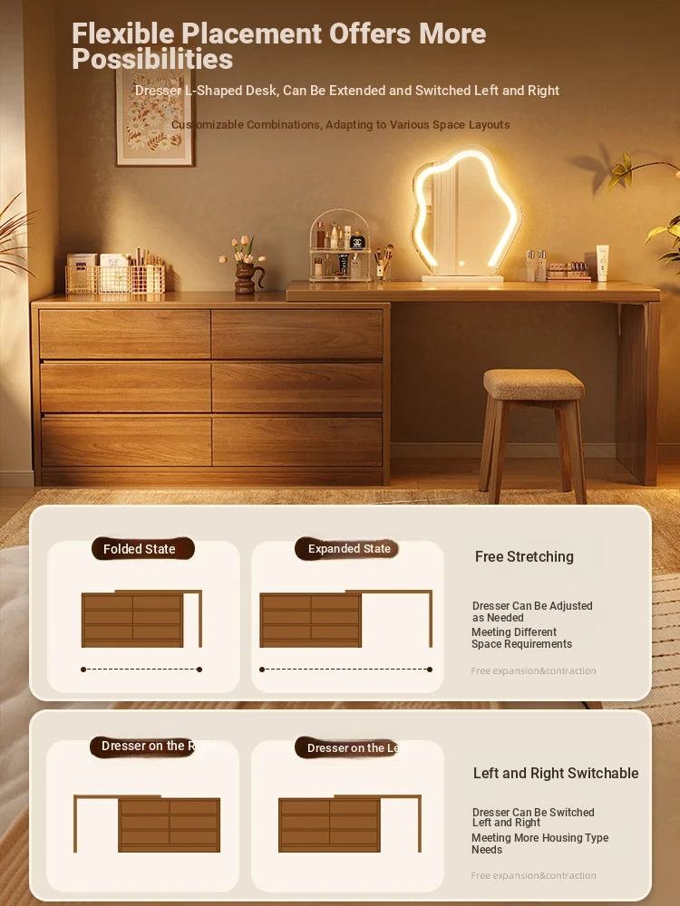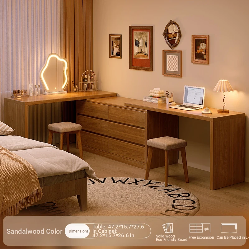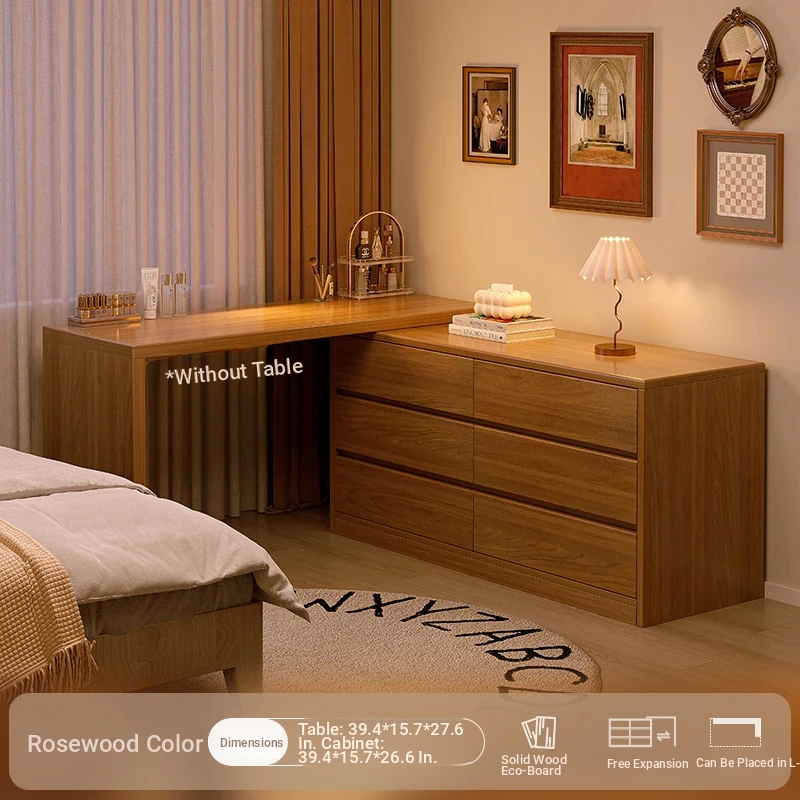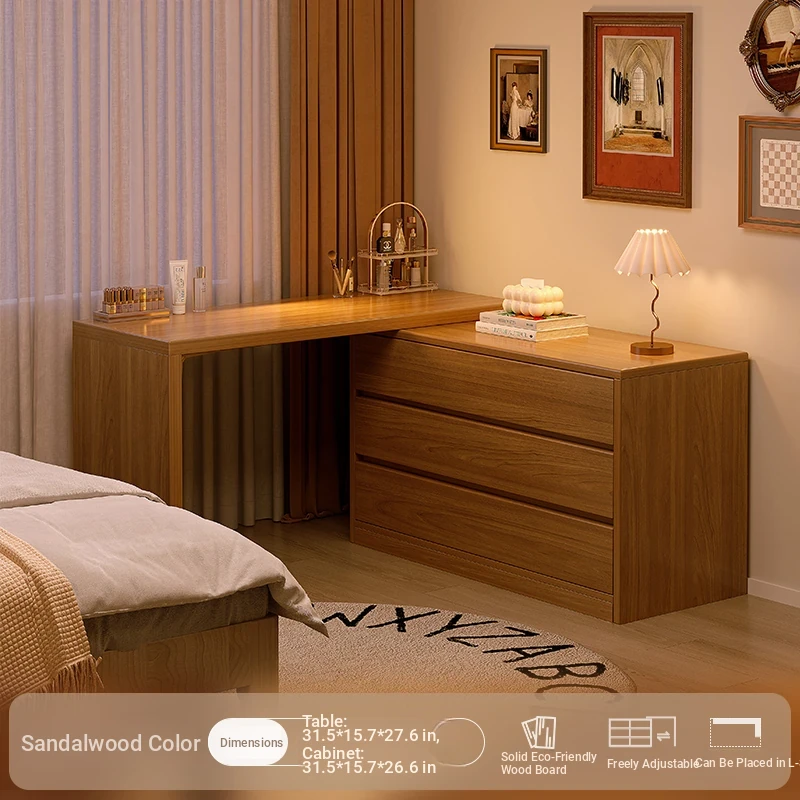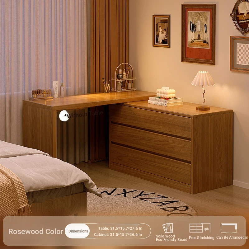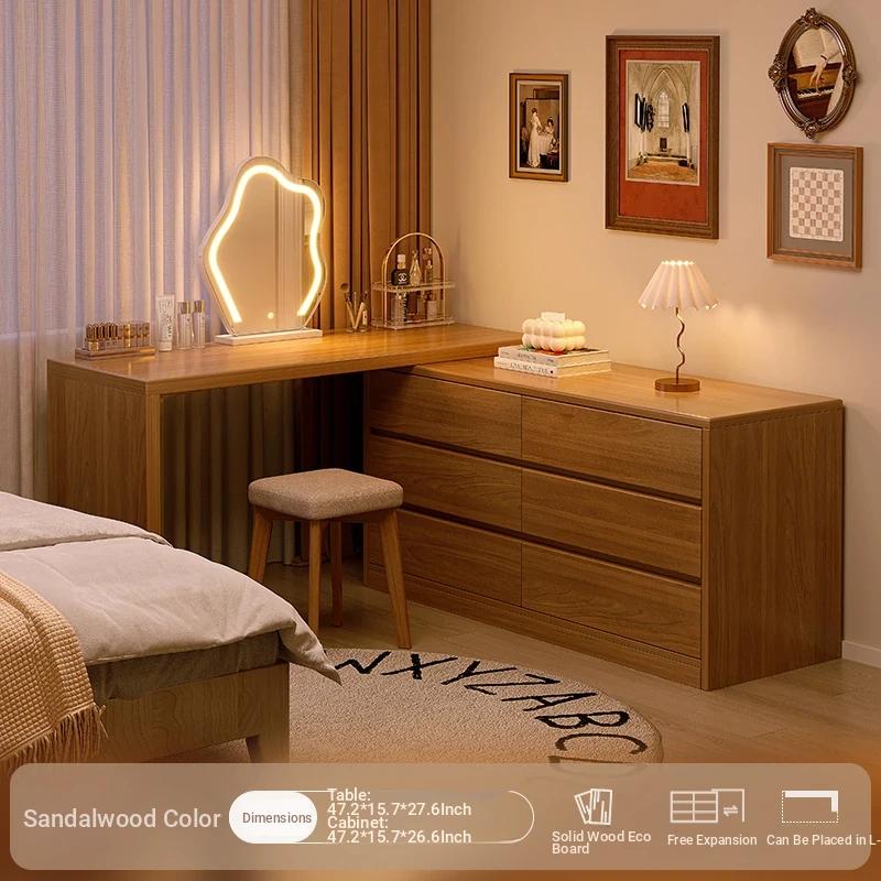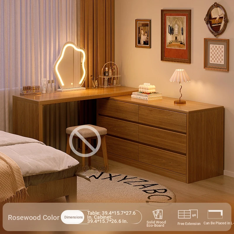 Modern Minimalist Bedroom Makeup Vanity 2024 New Arrival - Chinese Style Solid Wood Corner Dresser with Integrated Storage at Bed End