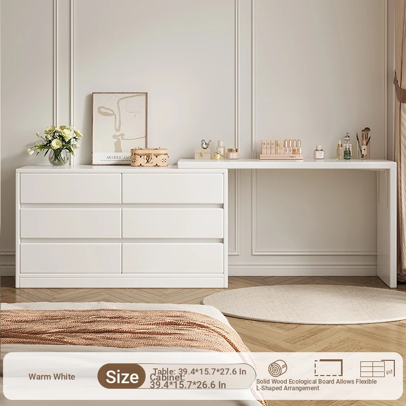[Thick Solid Wood Ecological Board] 39.37in Table + 39.37in Six-Drawer Cabinet Warm White