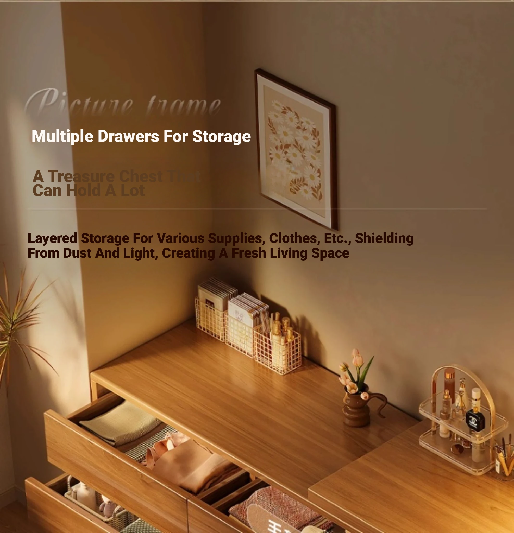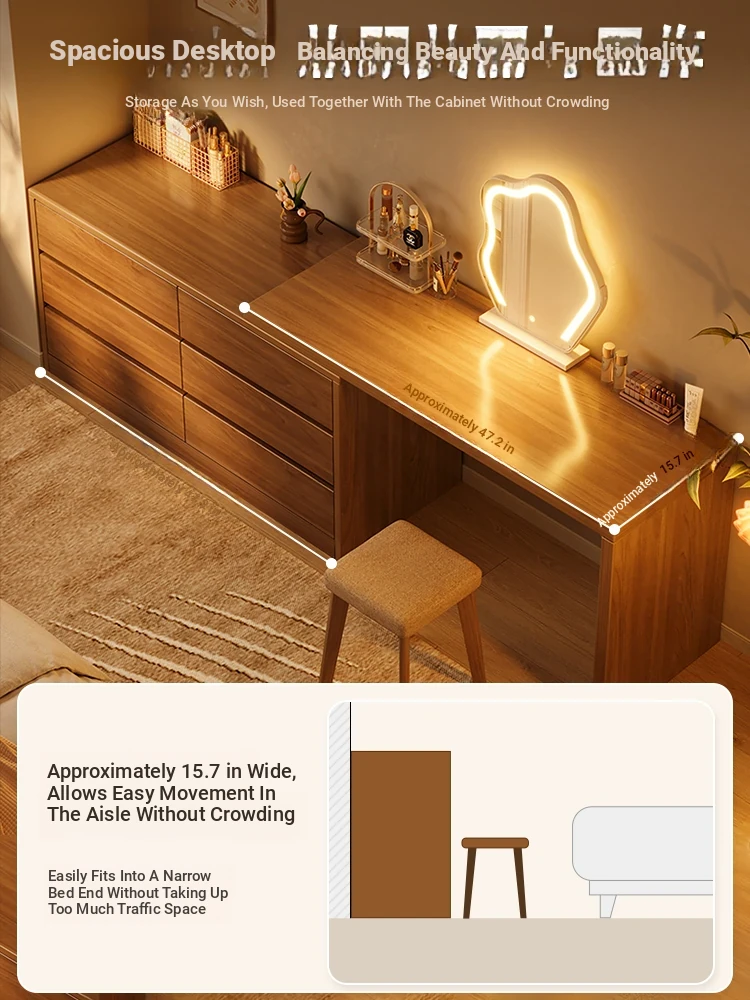 [Thick Solid Wood Ecological Board] 47.24in Table + 47.24in Six-Drawer Cabinet + Cloud Mirror