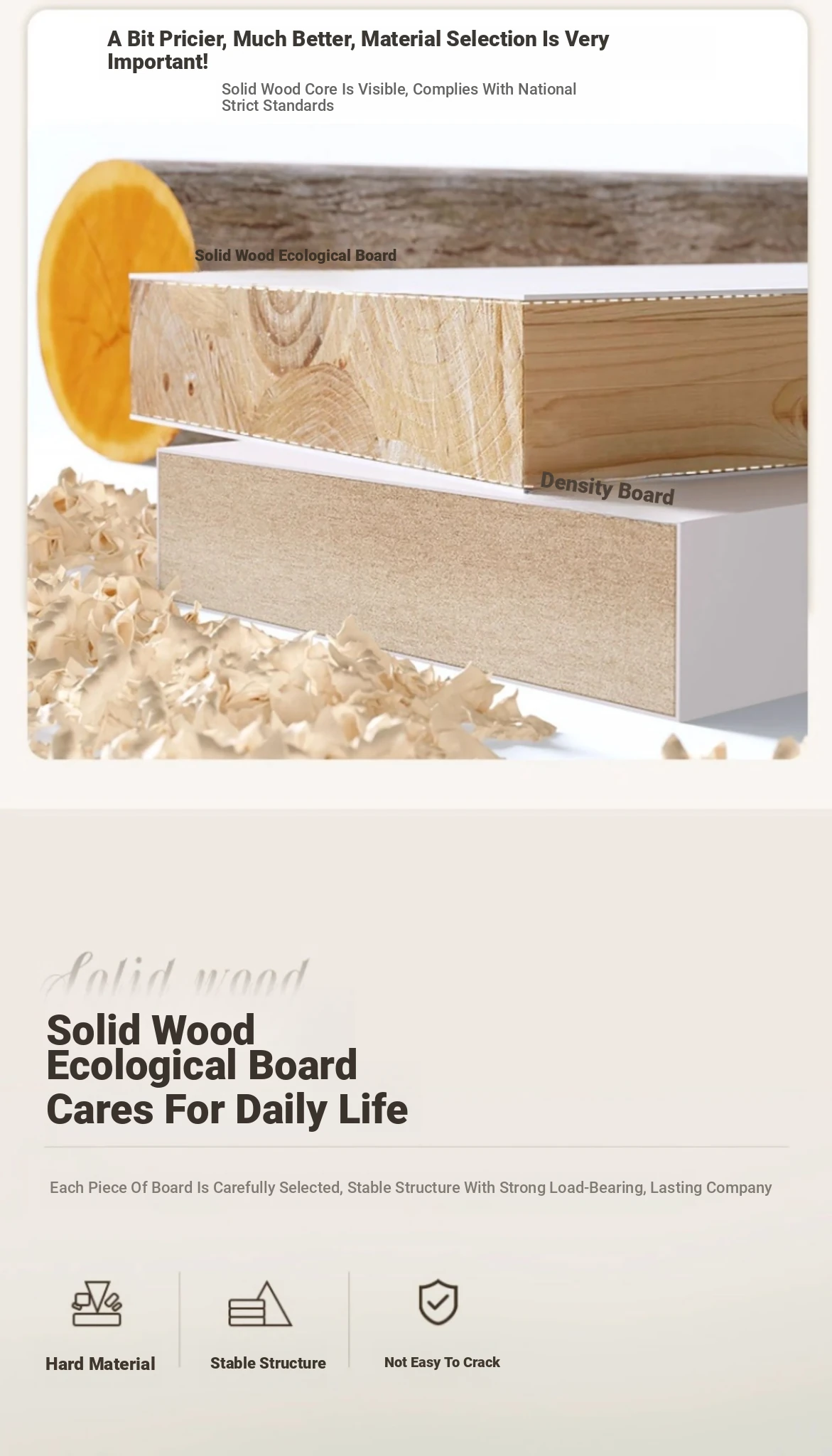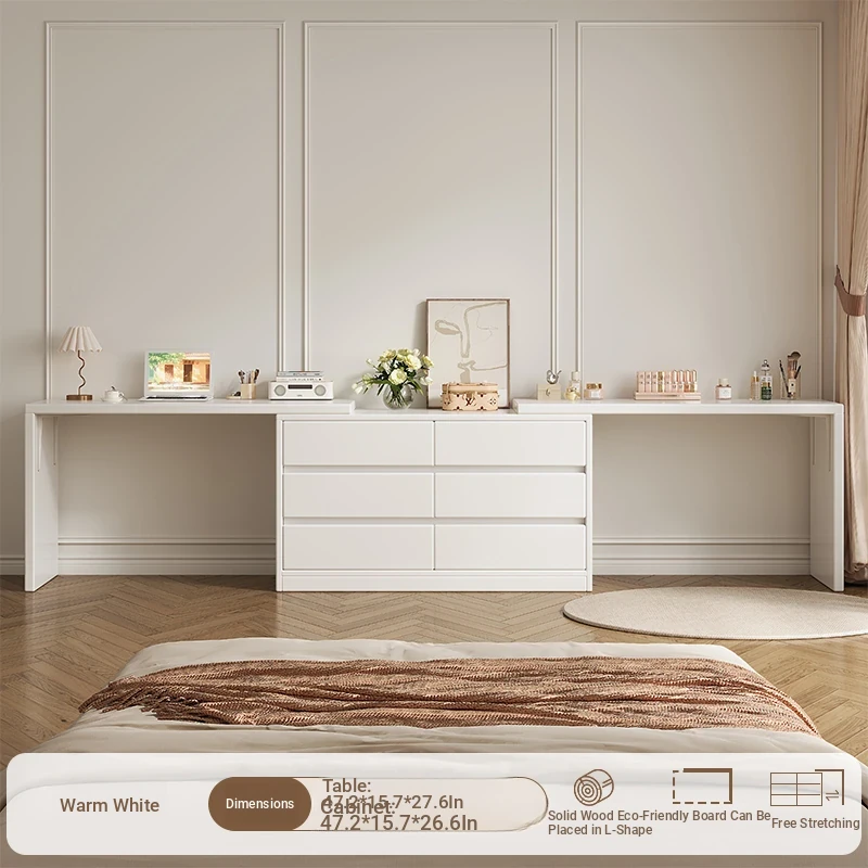 [Thick Solid Wood Ecological Board] 47.24in Table*2+120Cm Six-Drawer Cabinet Warm White