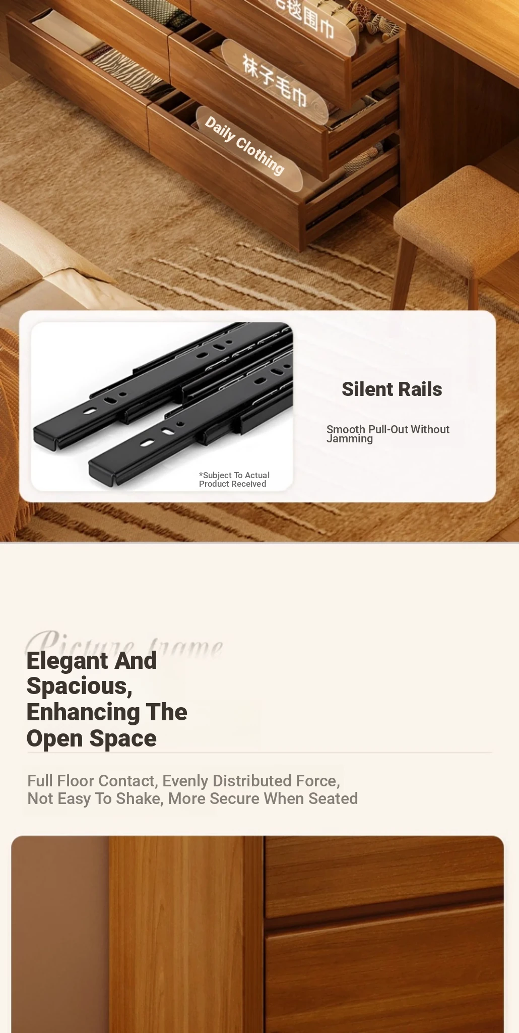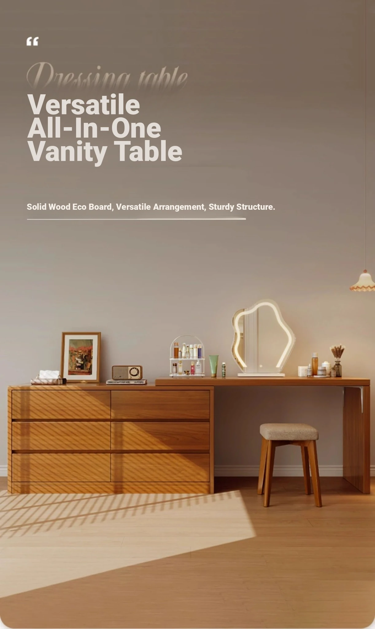 [Thick Solid Wood Ecological Board] 47.24in Table + 47.24in Six-Drawer Cabinet + Cloud Mirror + Solid Wood Square Stool