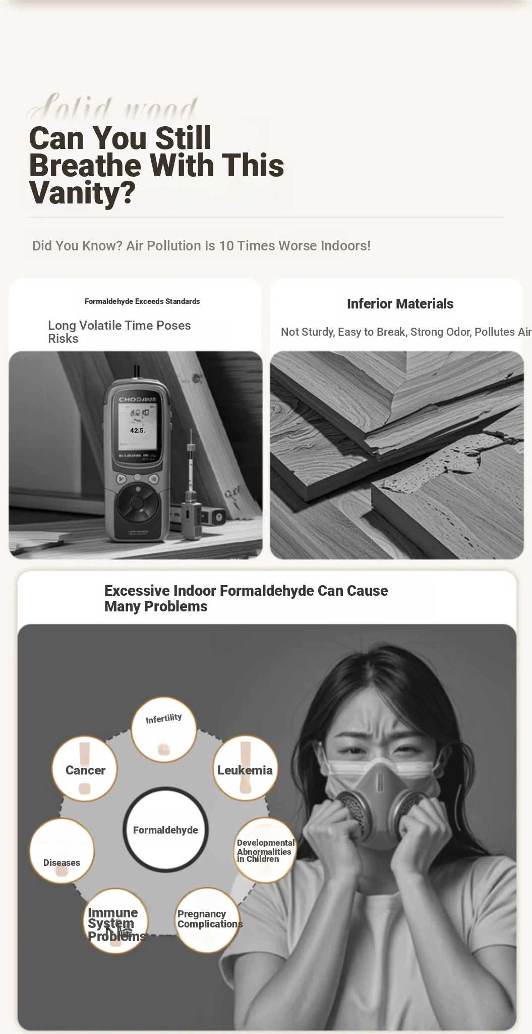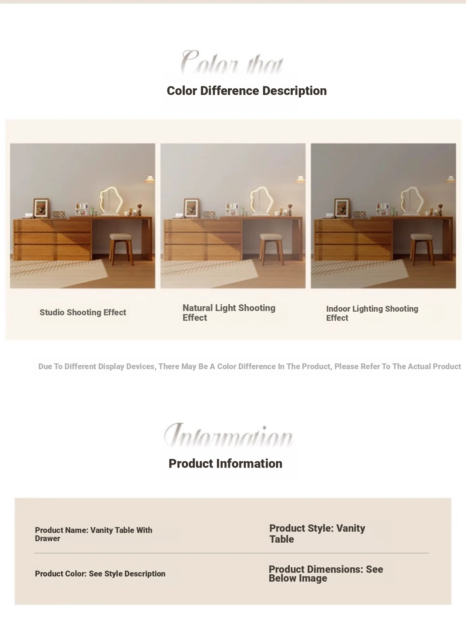 [Thick Solid Wood Ecological Board] 31.50in Table + 31.50in Three-Drawer Cabinet + Cloud Mirror