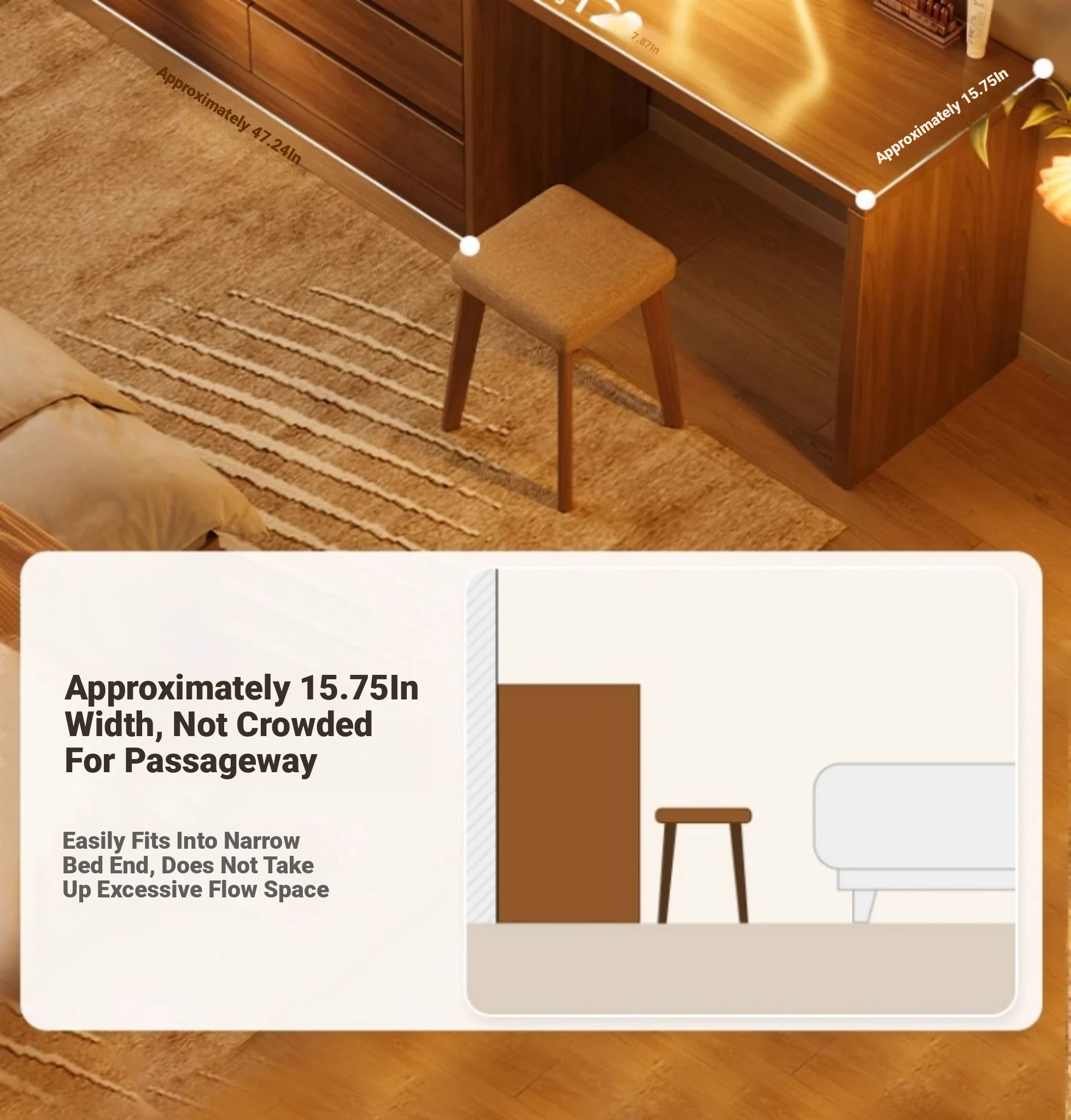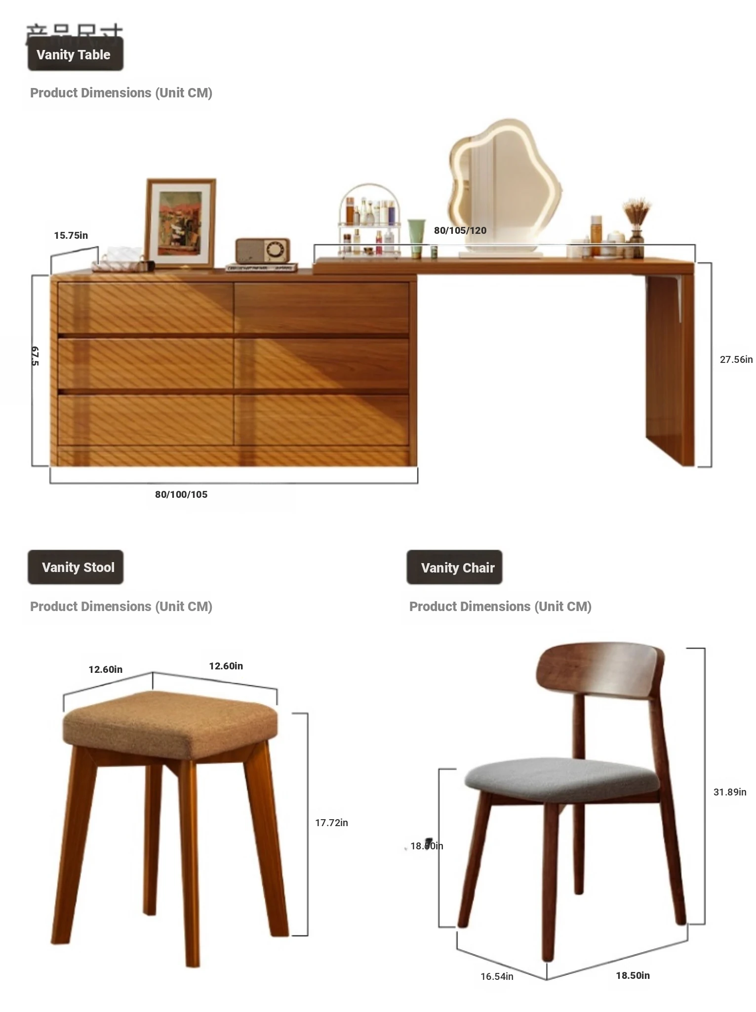 [Thick Solid Wood Ecological Board] 31.50in Table + 31.50in Three-Drawer Cabinet + Cloud Mirror + Solid Wood Square Stool