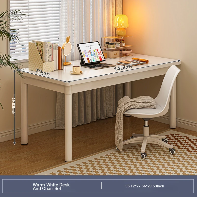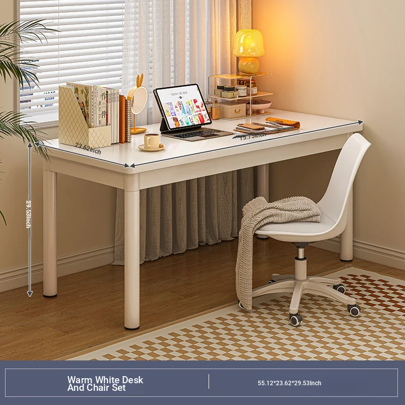 【Bundle: Desk + Height-Adjustable Rolling Chair】Warm White 55.12in*23.62in(1.97in Thickened Frame)