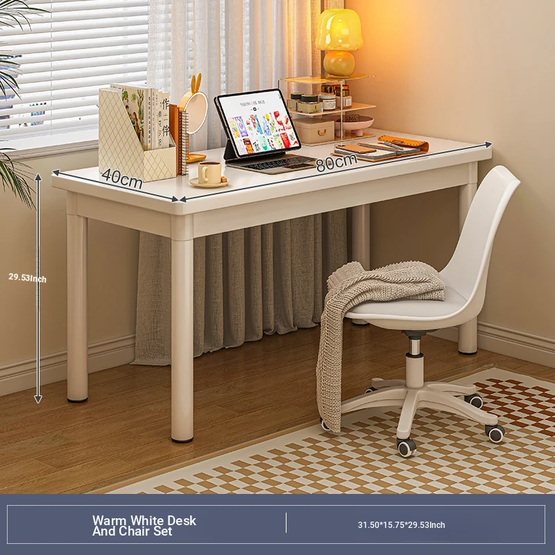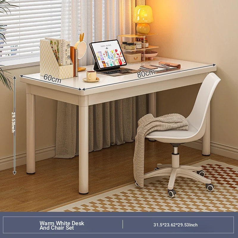 【Bundle: Desk + Height-Adjustable Rolling Chair】Warm White 31.50in*15.75in(1.97in Thickened Frame)