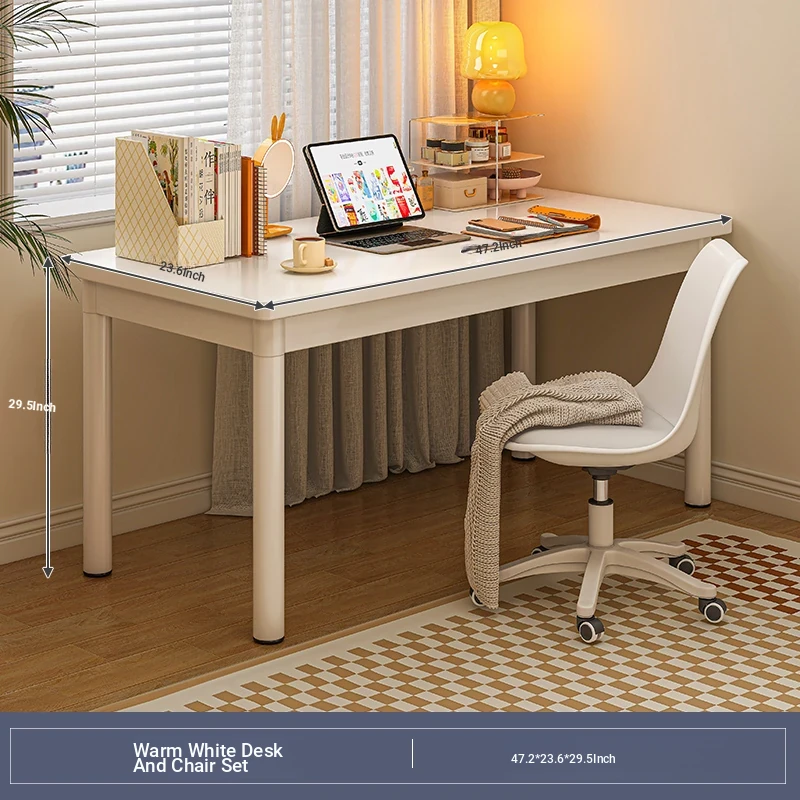【Bundle: Desk + Height-Adjustable Rolling Chair】Warm White 47.24in*27.56in(1.97in Thickened Frame)