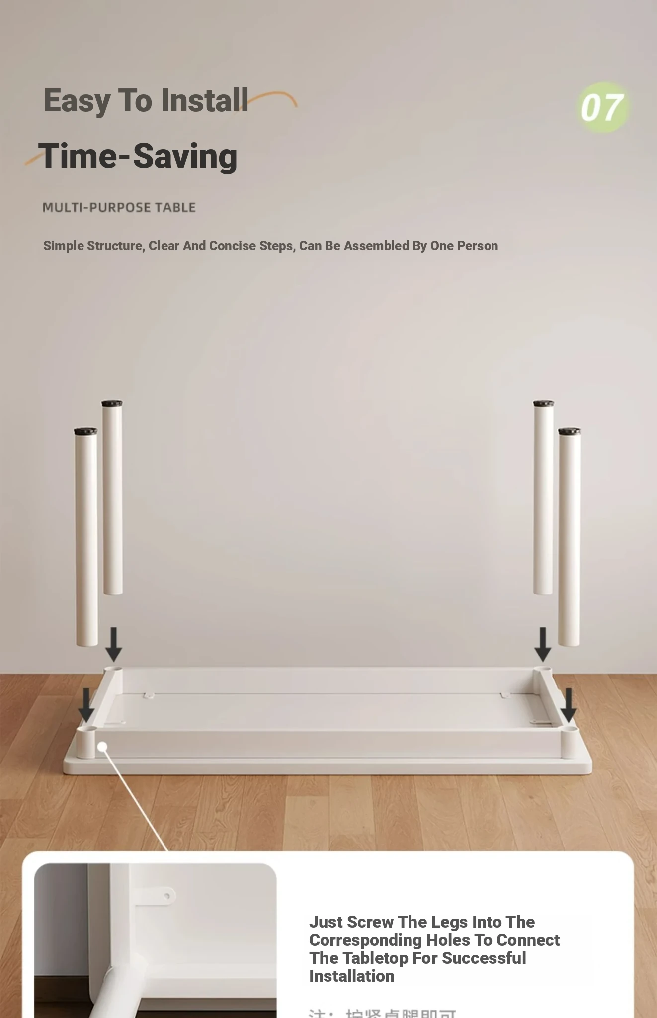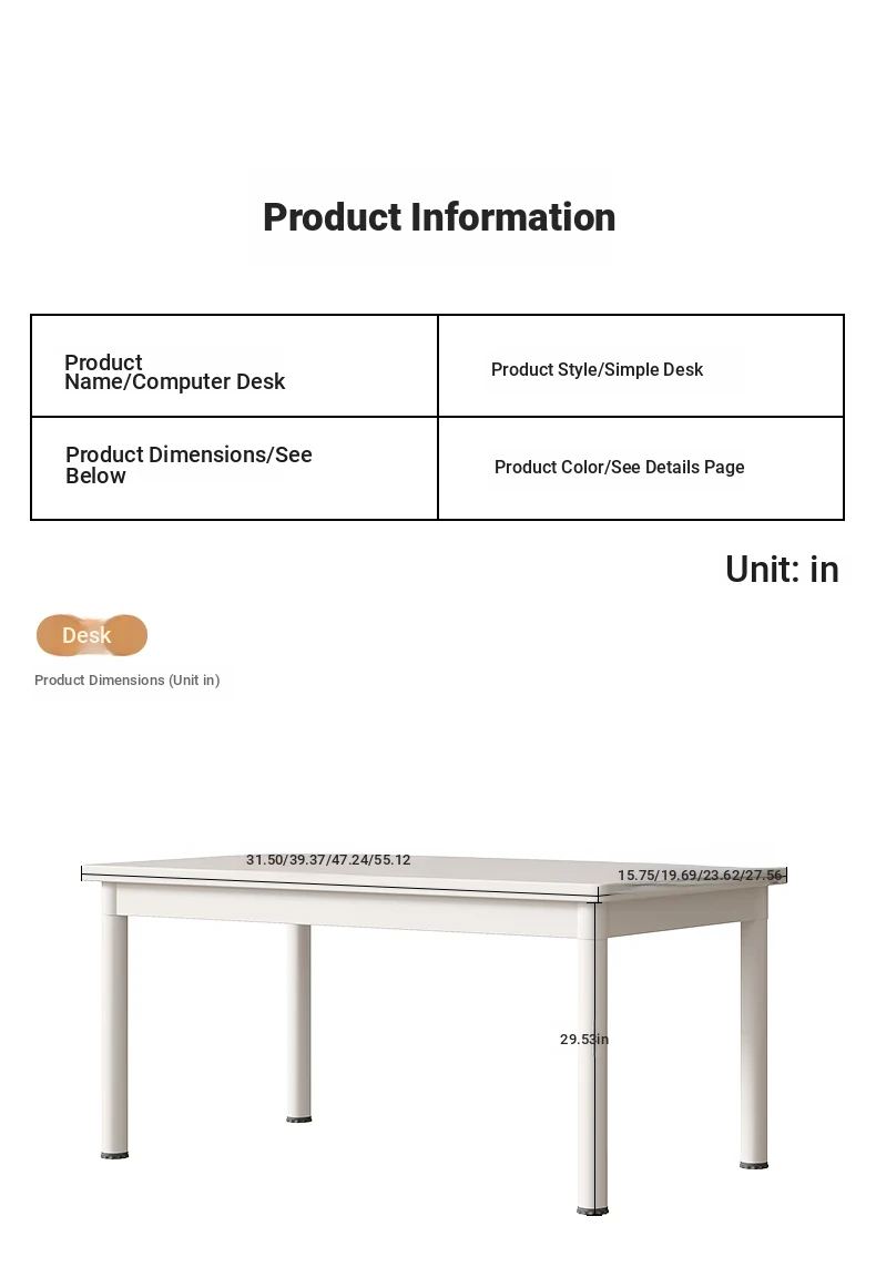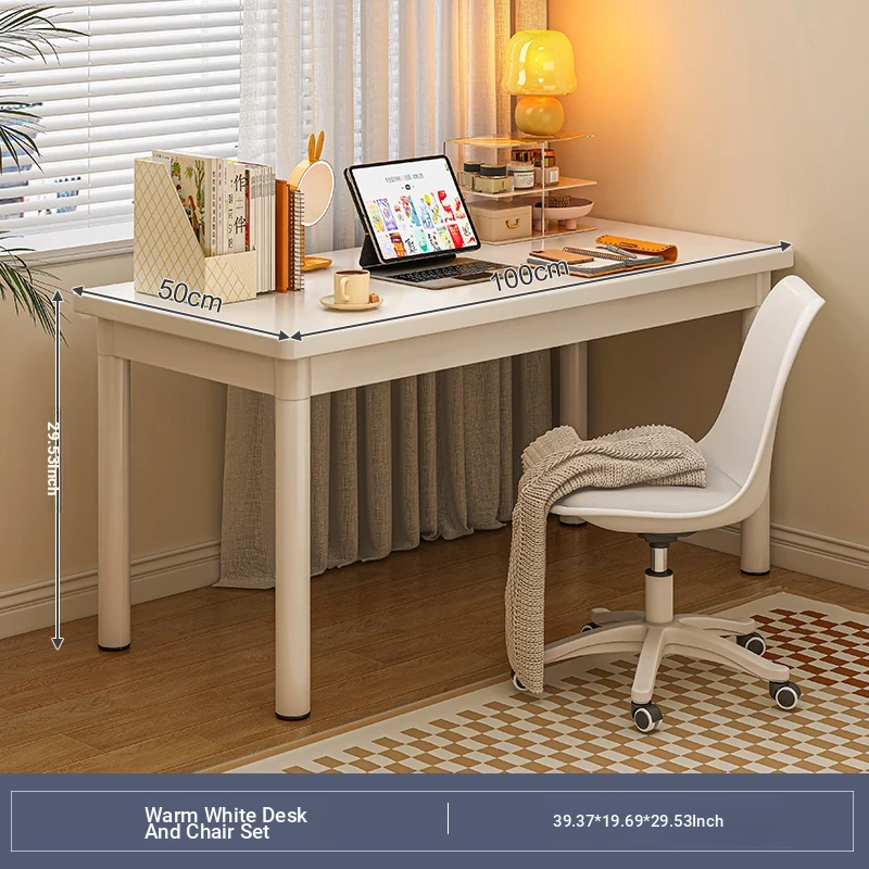 【Bundle: Desk + Height-Adjustable Rolling Chair】Warm White 39.37in*19.69in(1.97in Thickened Frame)