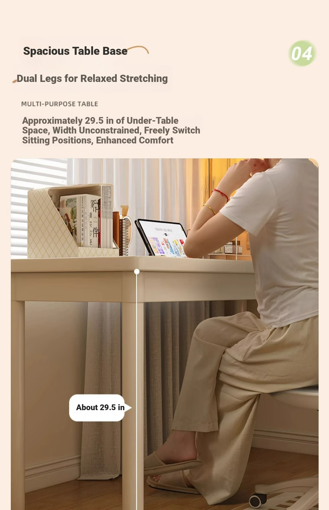 【Bundle: Desk + Height-Adjustable Rolling Chair】Warm White 55.12in*27.56in(1.97in Thickened Frame)