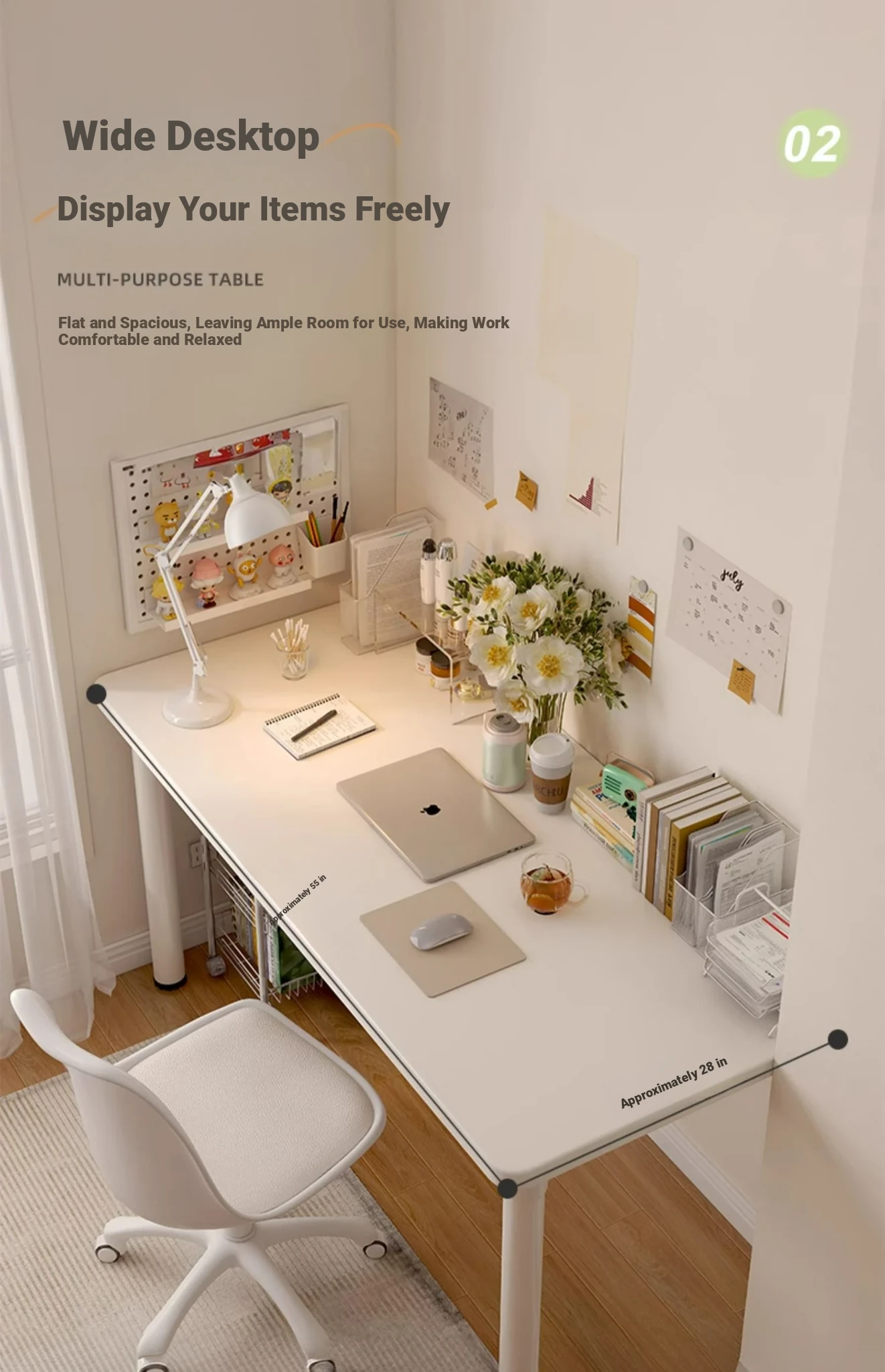 【Bundle: Desk + Height-Adjustable Rolling Chair】Warm White 47.24in*23.62in(1.97in Thickened Frame)