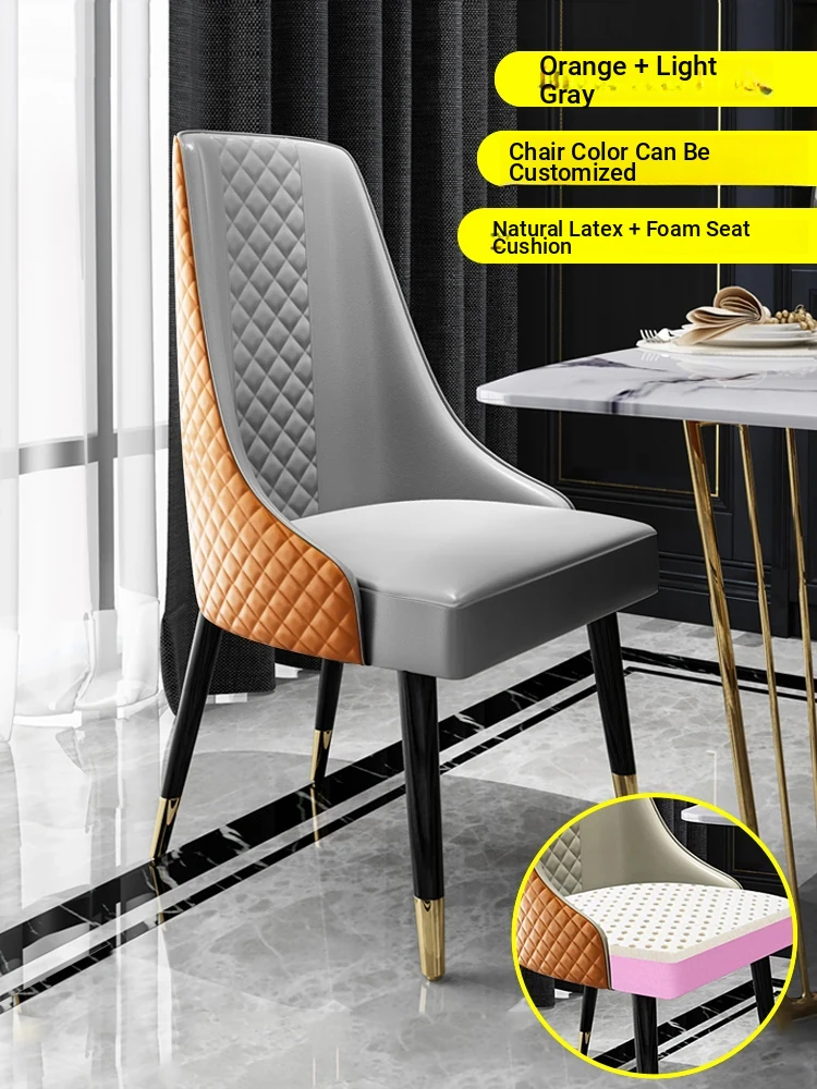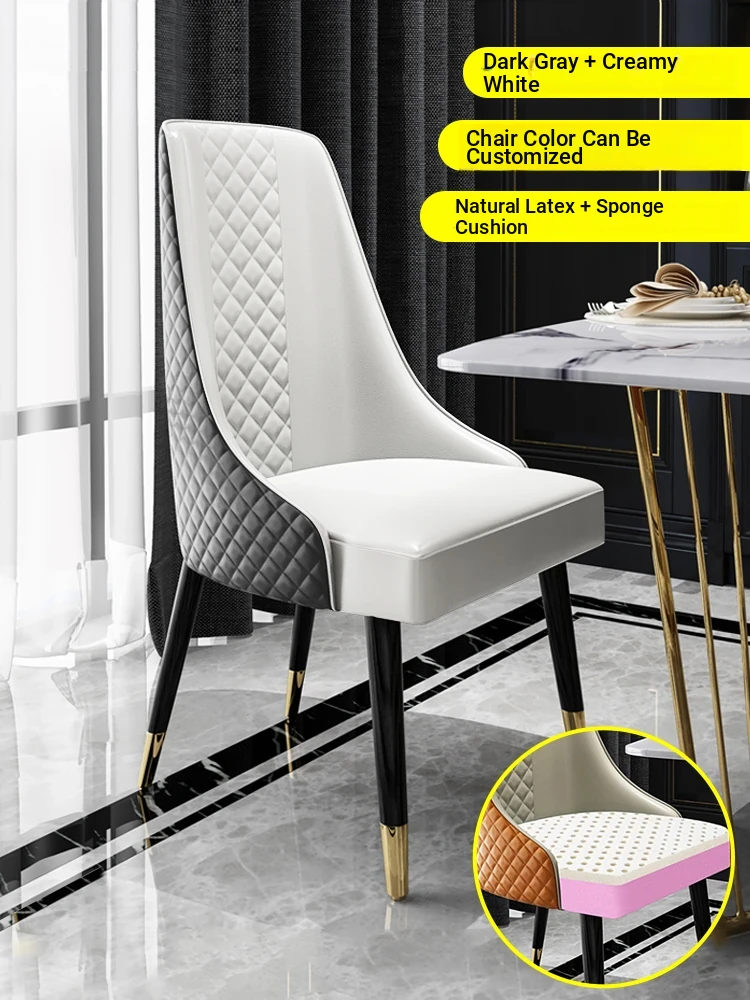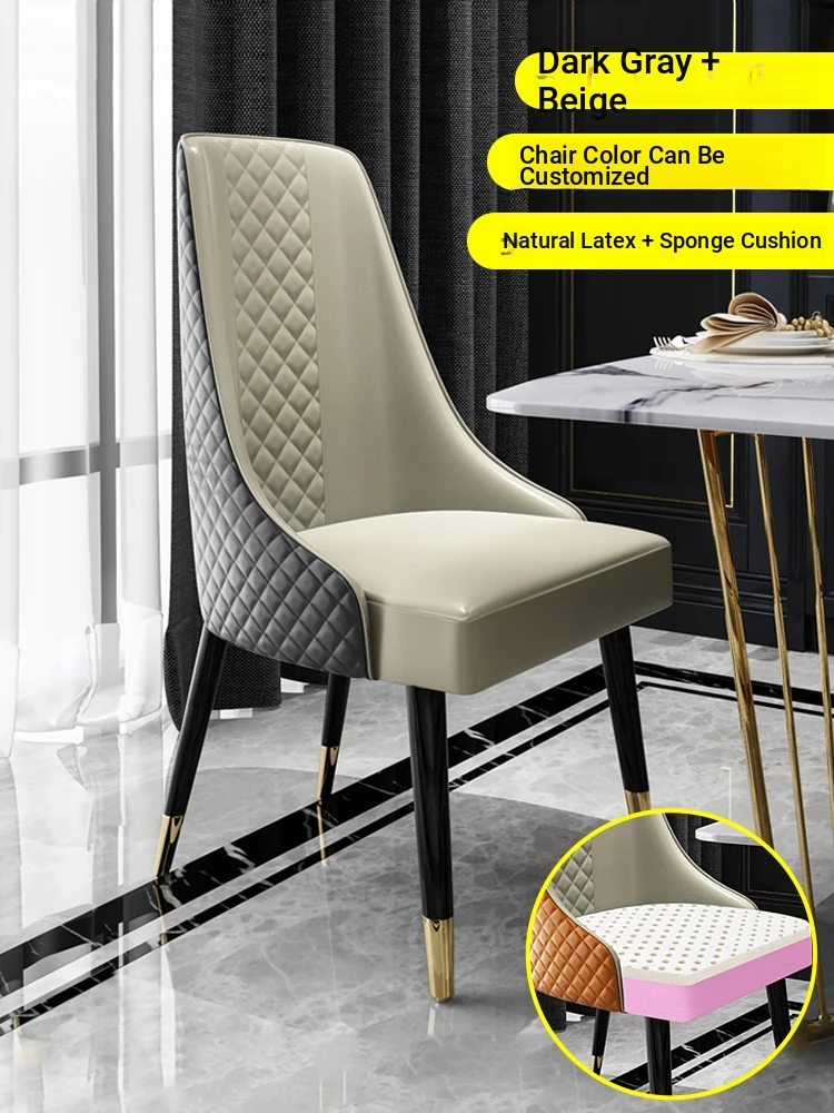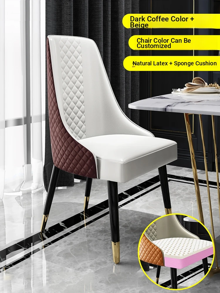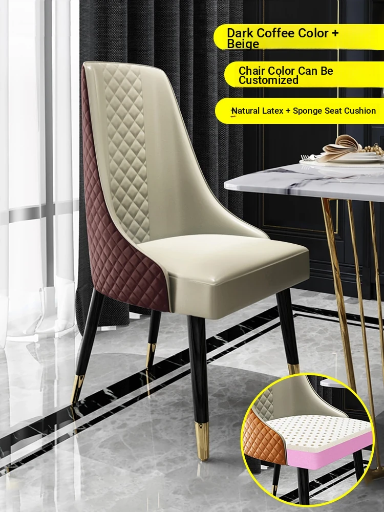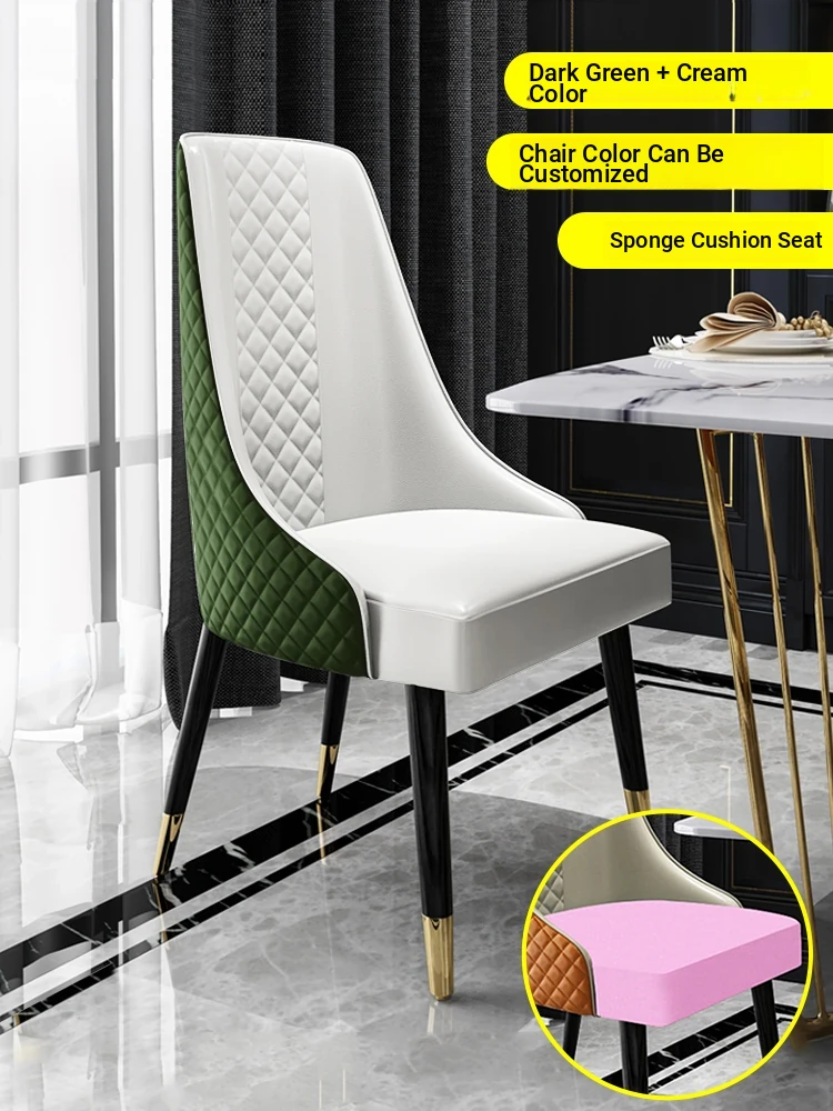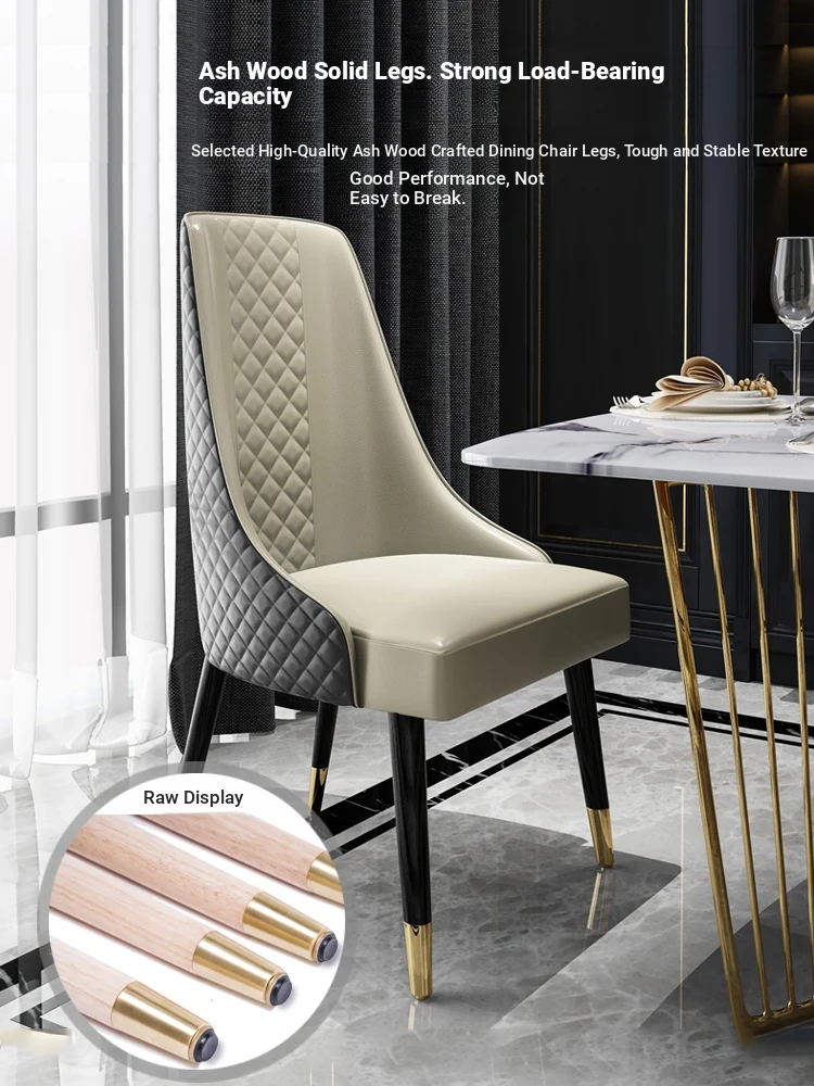 Modern Minimalist Dining Chair with Backrest - Luxurious Leather Upholstered Seat, Solid Wood Legs for Home, Restaurant, and Café Use - Perfect for Relaxed Dining Experience