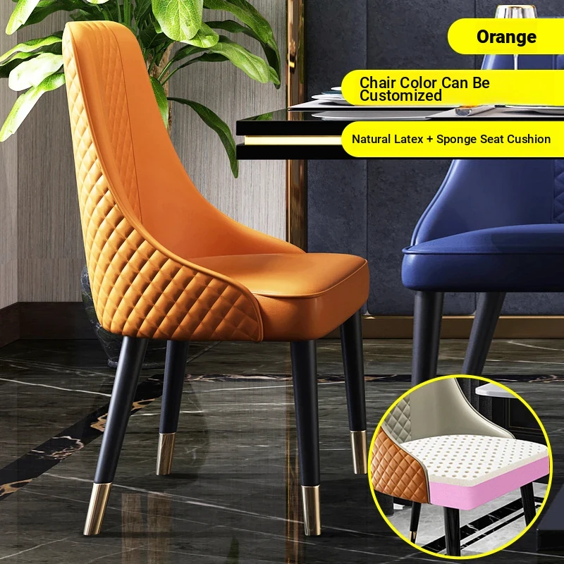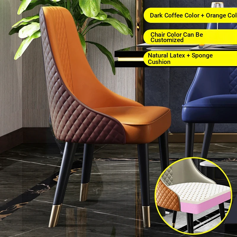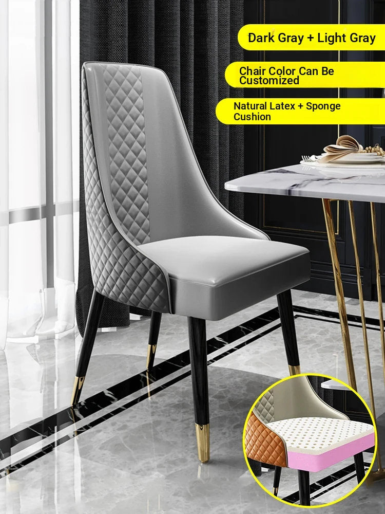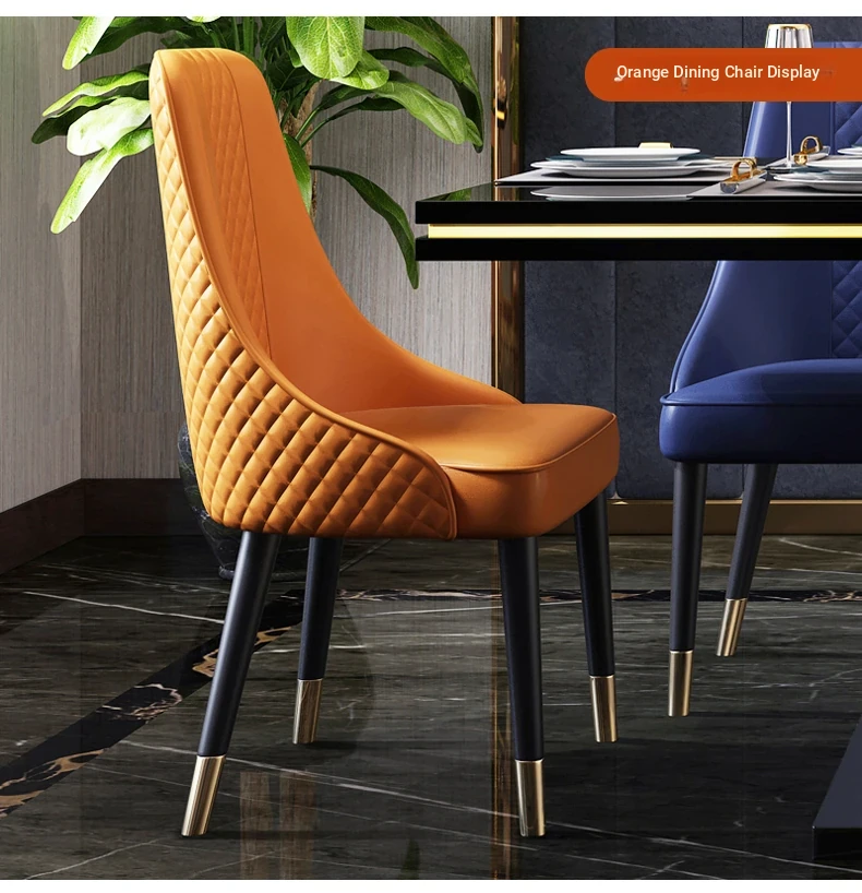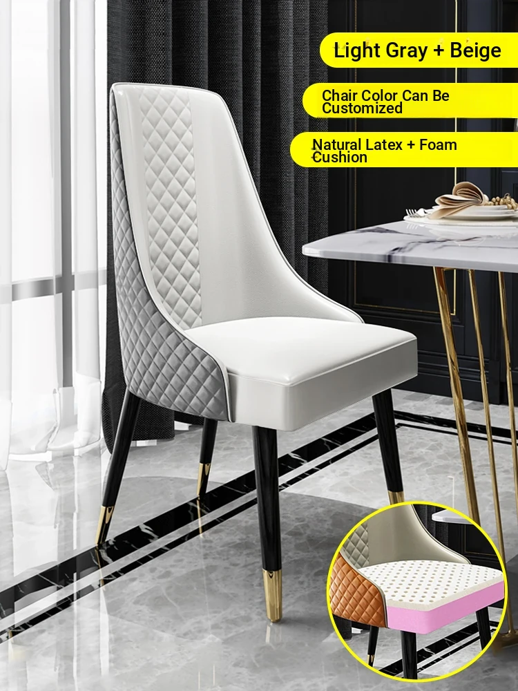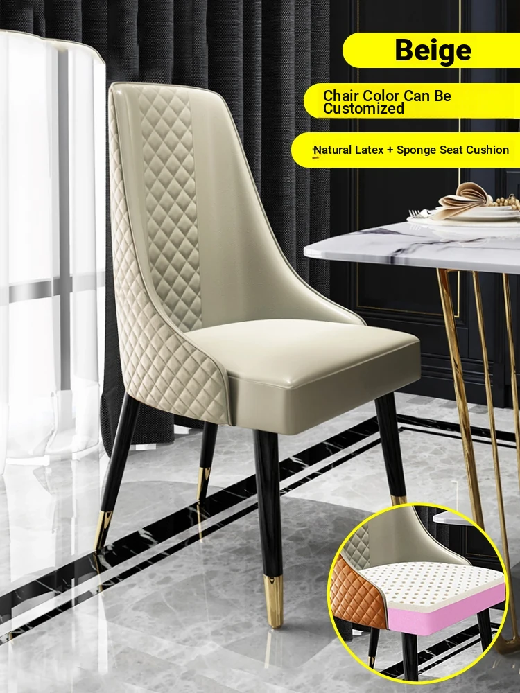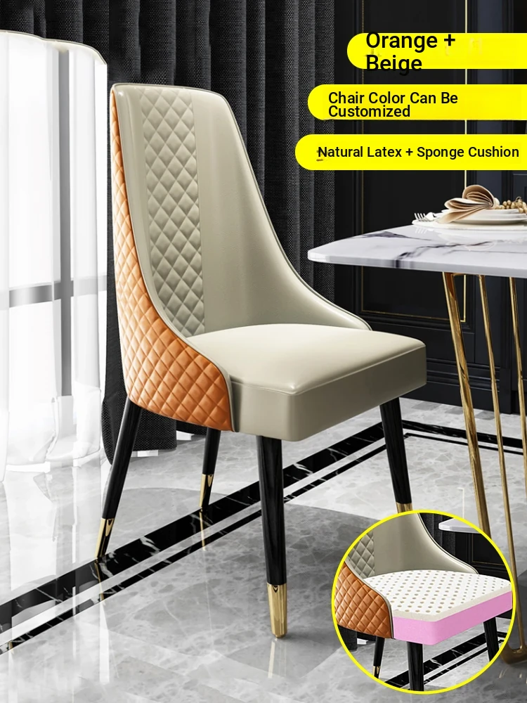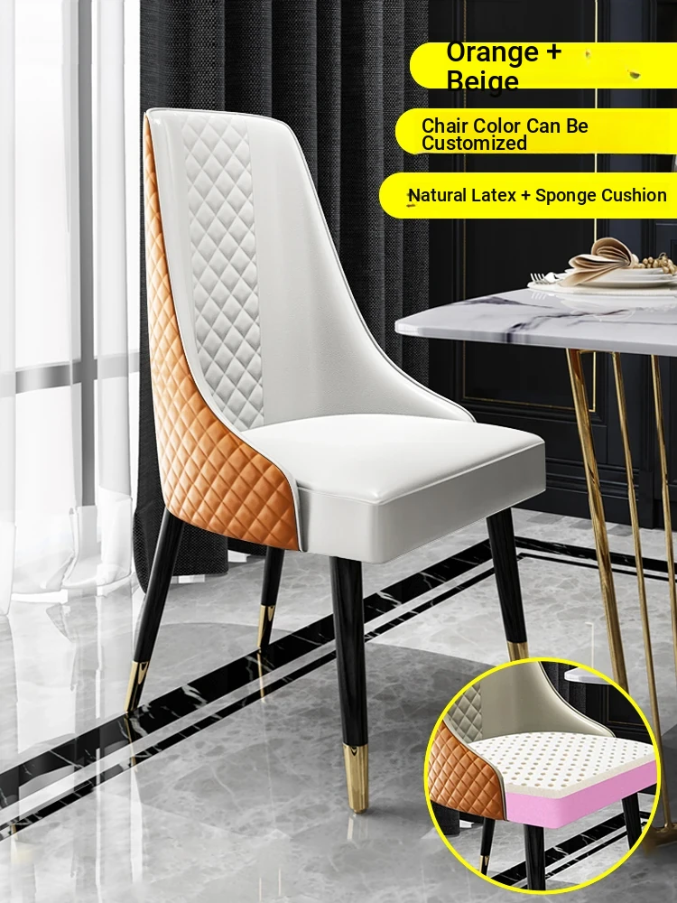 Modern Minimalist Dining Chair with Backrest - Luxurious Leather Upholstered Seat, Solid Wood Legs for Home, Restaurant, and Café Use - Perfect for Relaxed Dining Experience