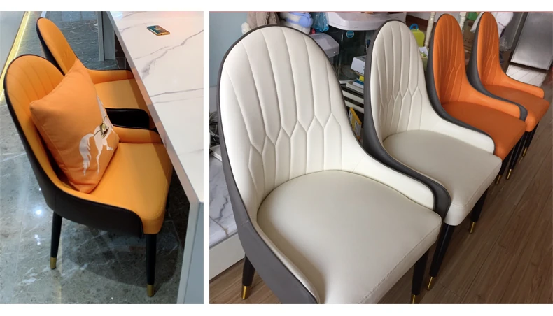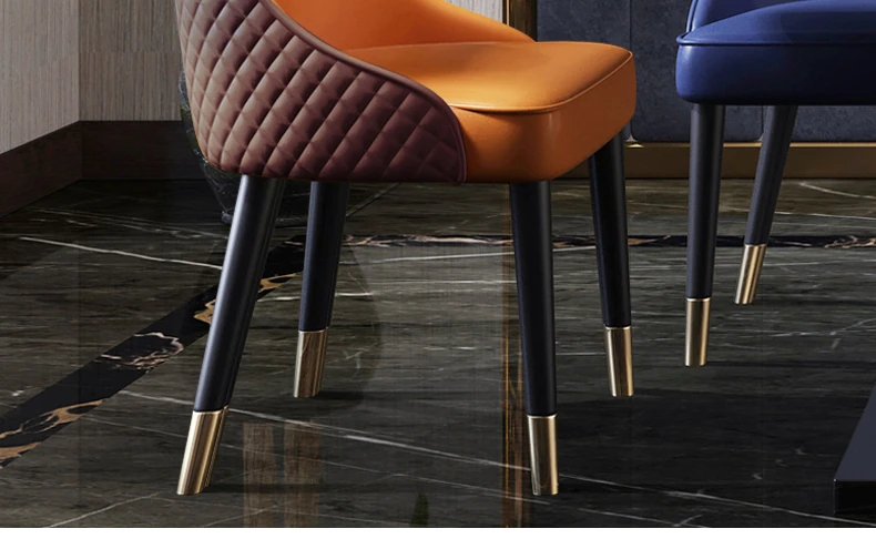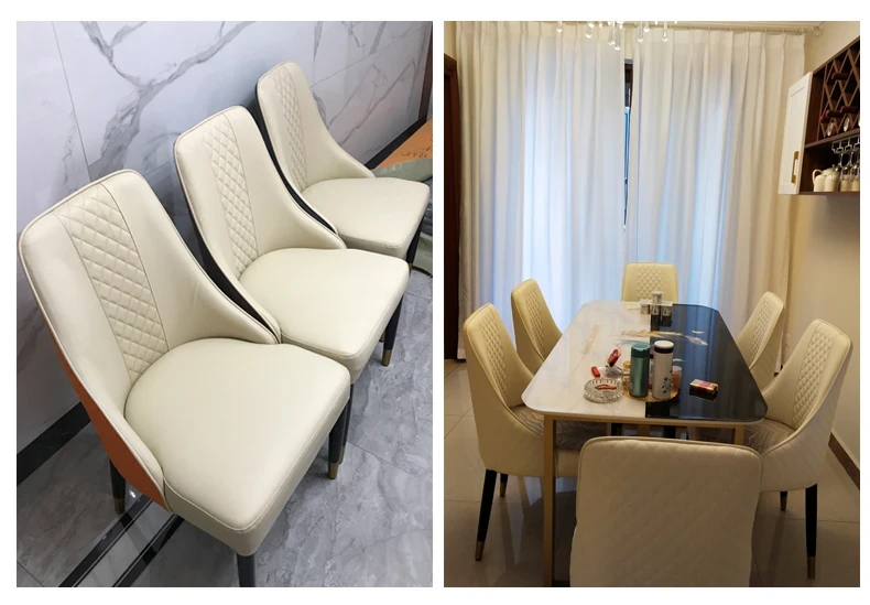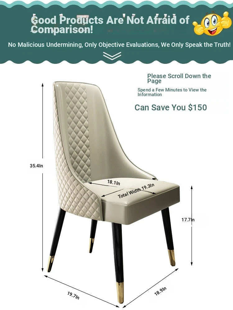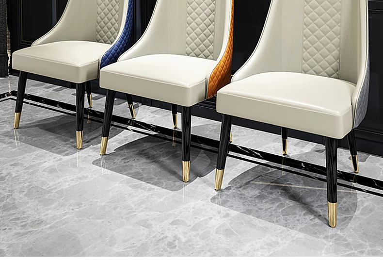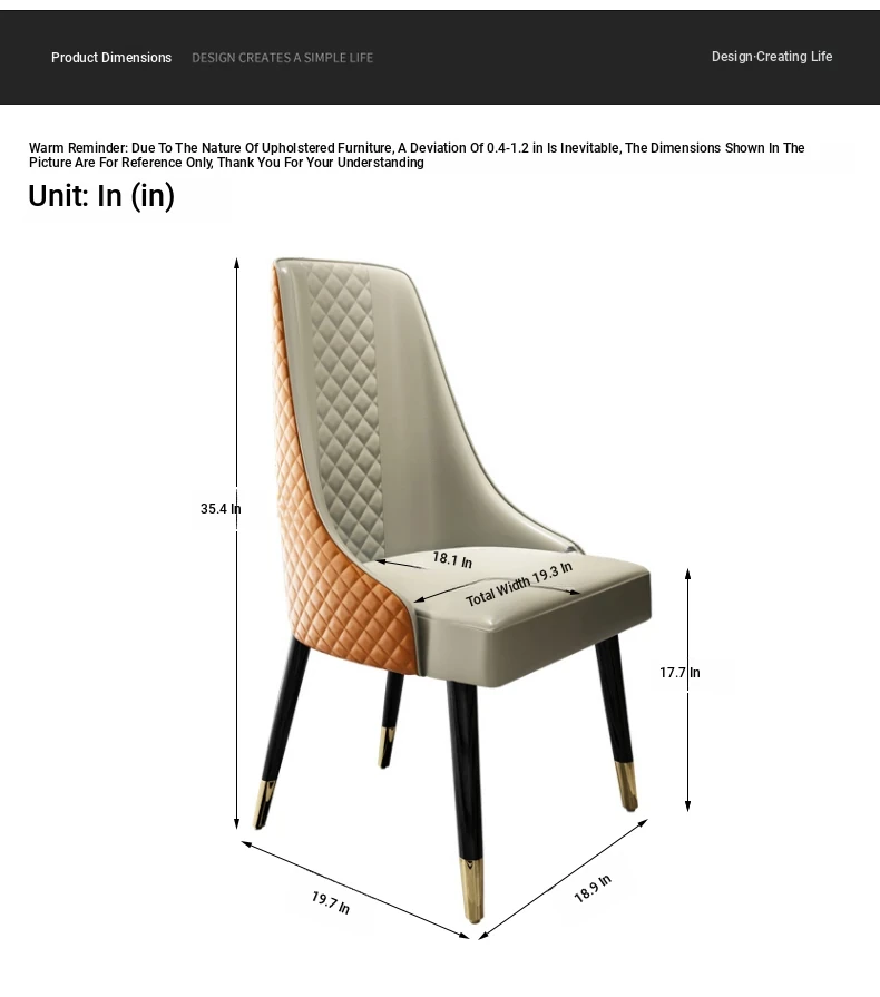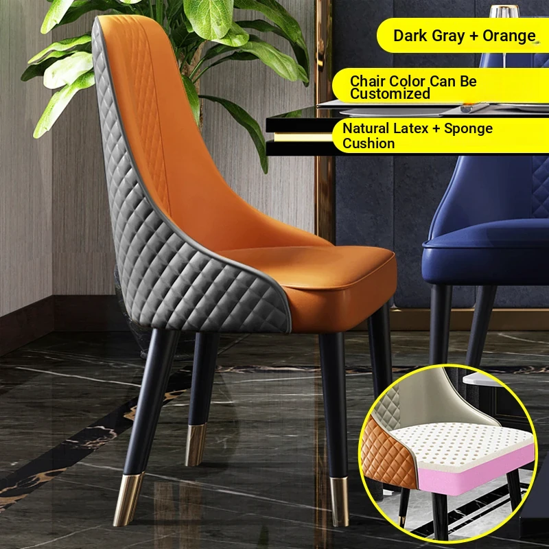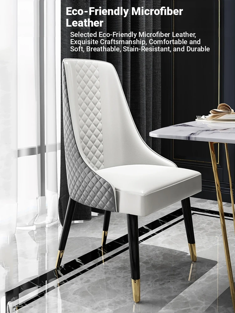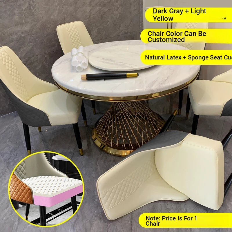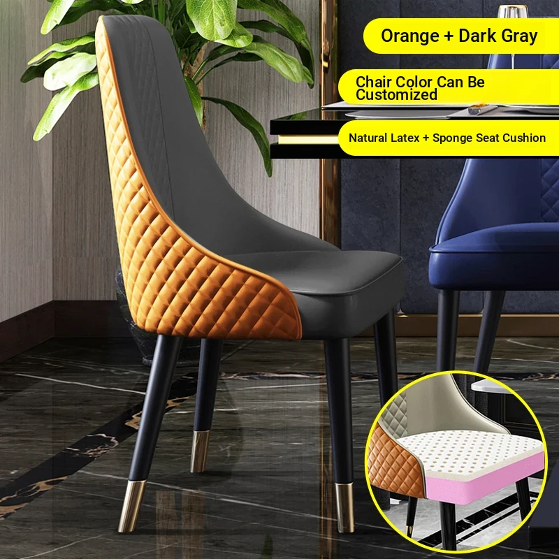 Modern Minimalist Dining Chair with Backrest - Luxurious Leather Upholstered Seat, Solid Wood Legs for Home, Restaurant, and Café Use - Perfect for Relaxed Dining Experience