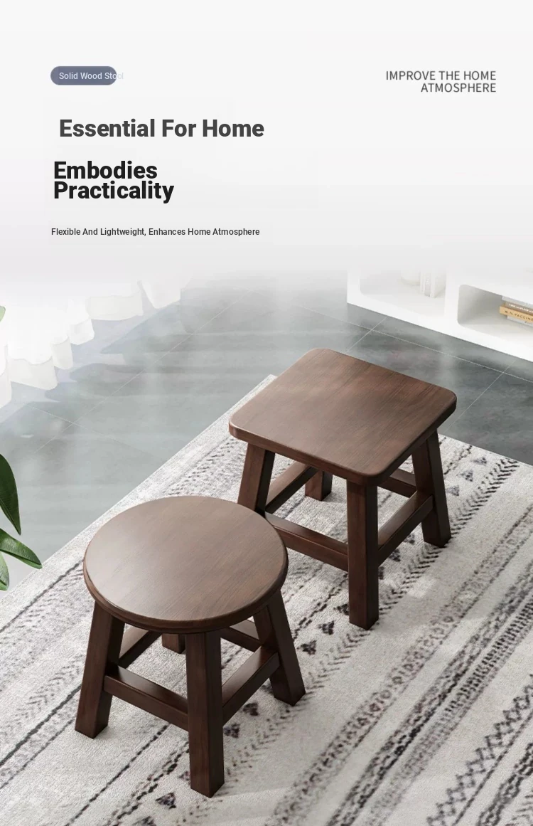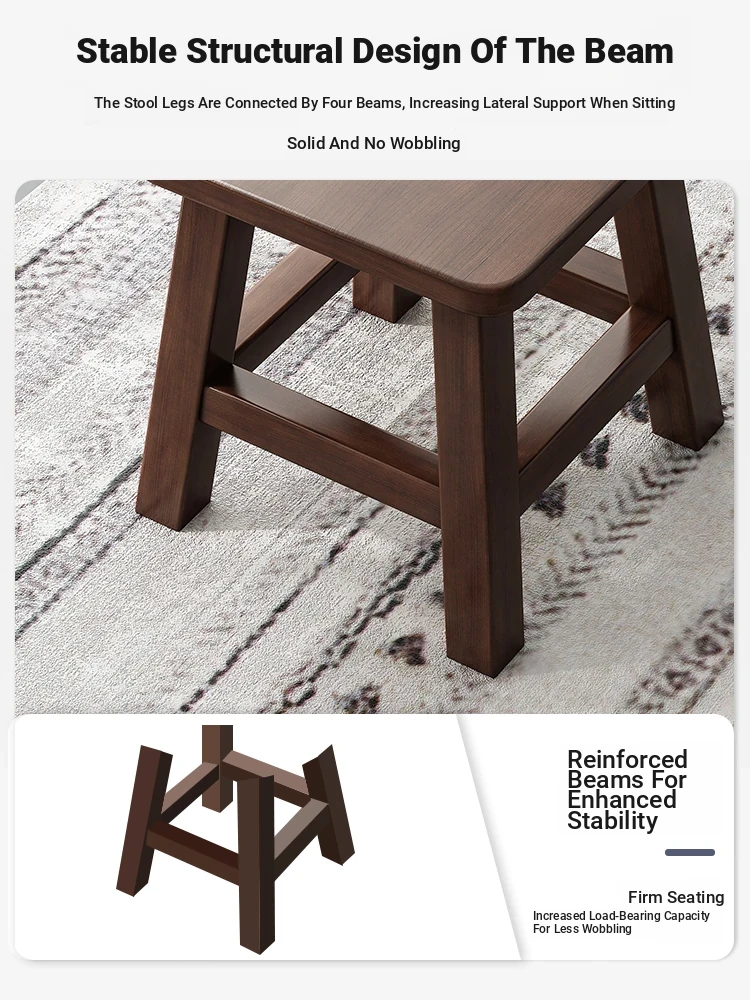 Modern Minimalist Entryway Shoe Bench - Walnut Solid Wood Stool for Living Room, Single Joinery Design, Perfect for Home Use