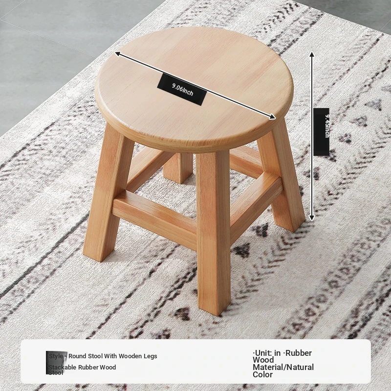 [Rubber Wood] Log Color Round Stool