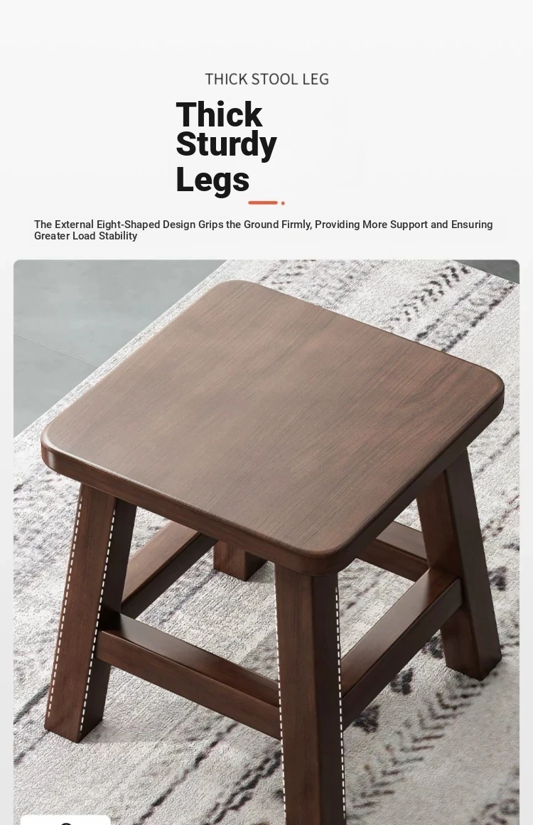 [Same Style as Video-Rubber Wood] Walnut Color Square Stool