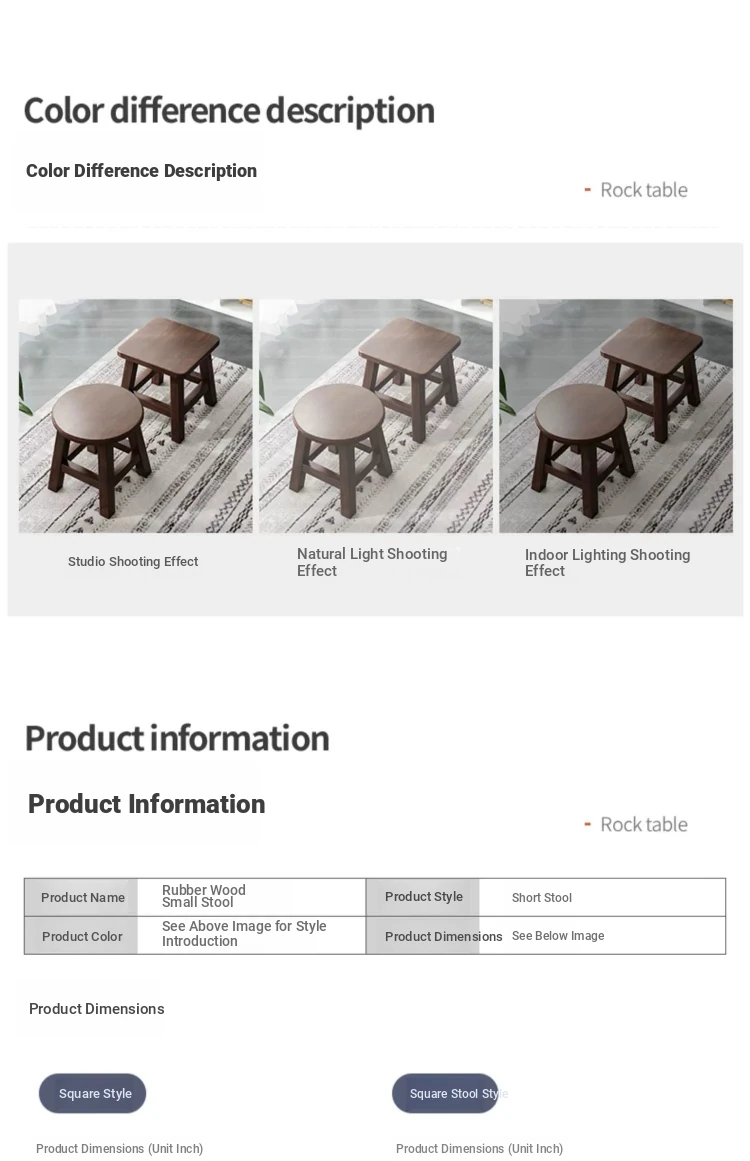 [Rubber Wood] Log Color Square Stool