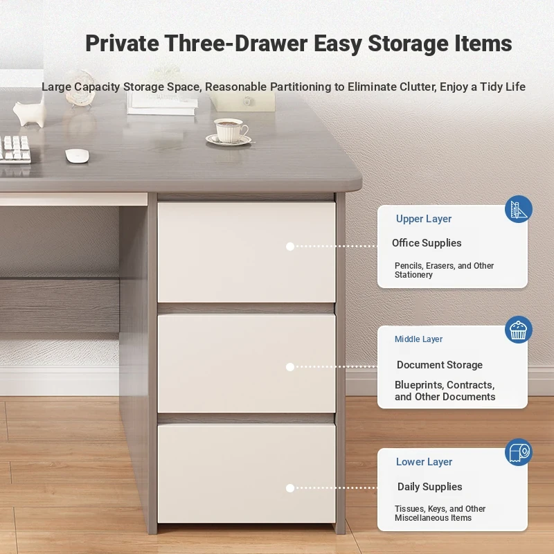 Modern Minimalist Home Office Desk with Drawers - Ideal for Students, Bedroom Study, and Writing - Desk and Chair Set for Efficient Workspace