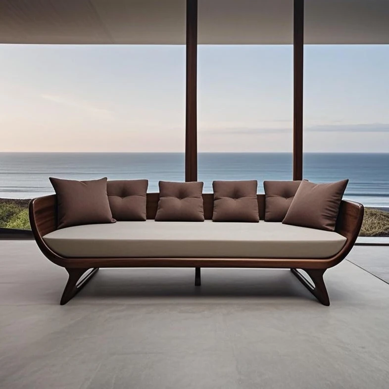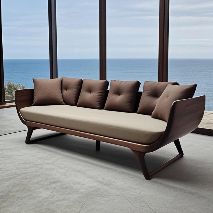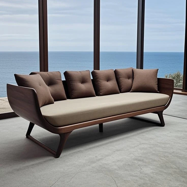 Modern Minimalist New Chinese Style Solid Wood Sofa - Three-Seater Leather Couch with North American Black Walnut Finish for Your Elegant Living Room