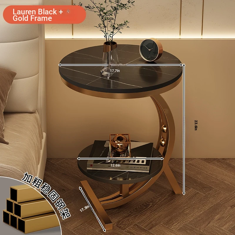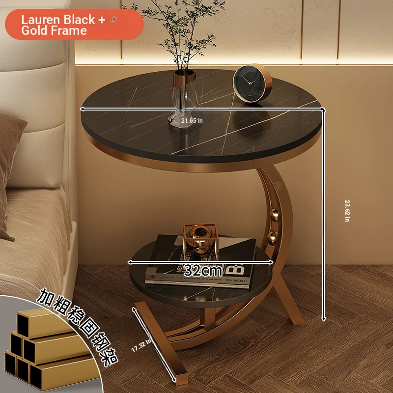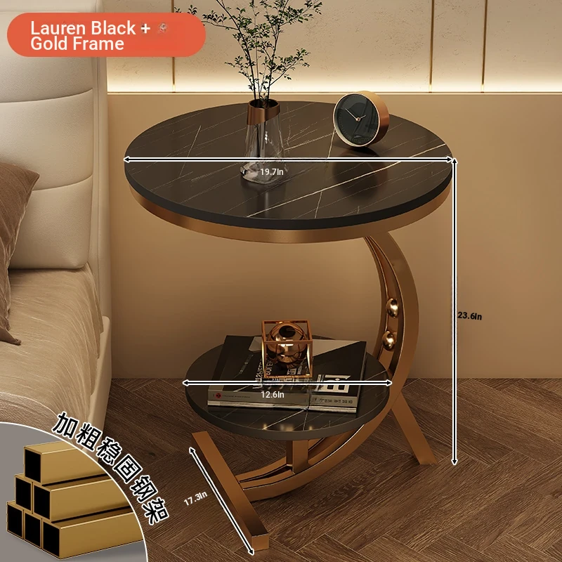 [Imported Rock Slab] Gold Frame + Lauren Black (Diameter 19.69in)
