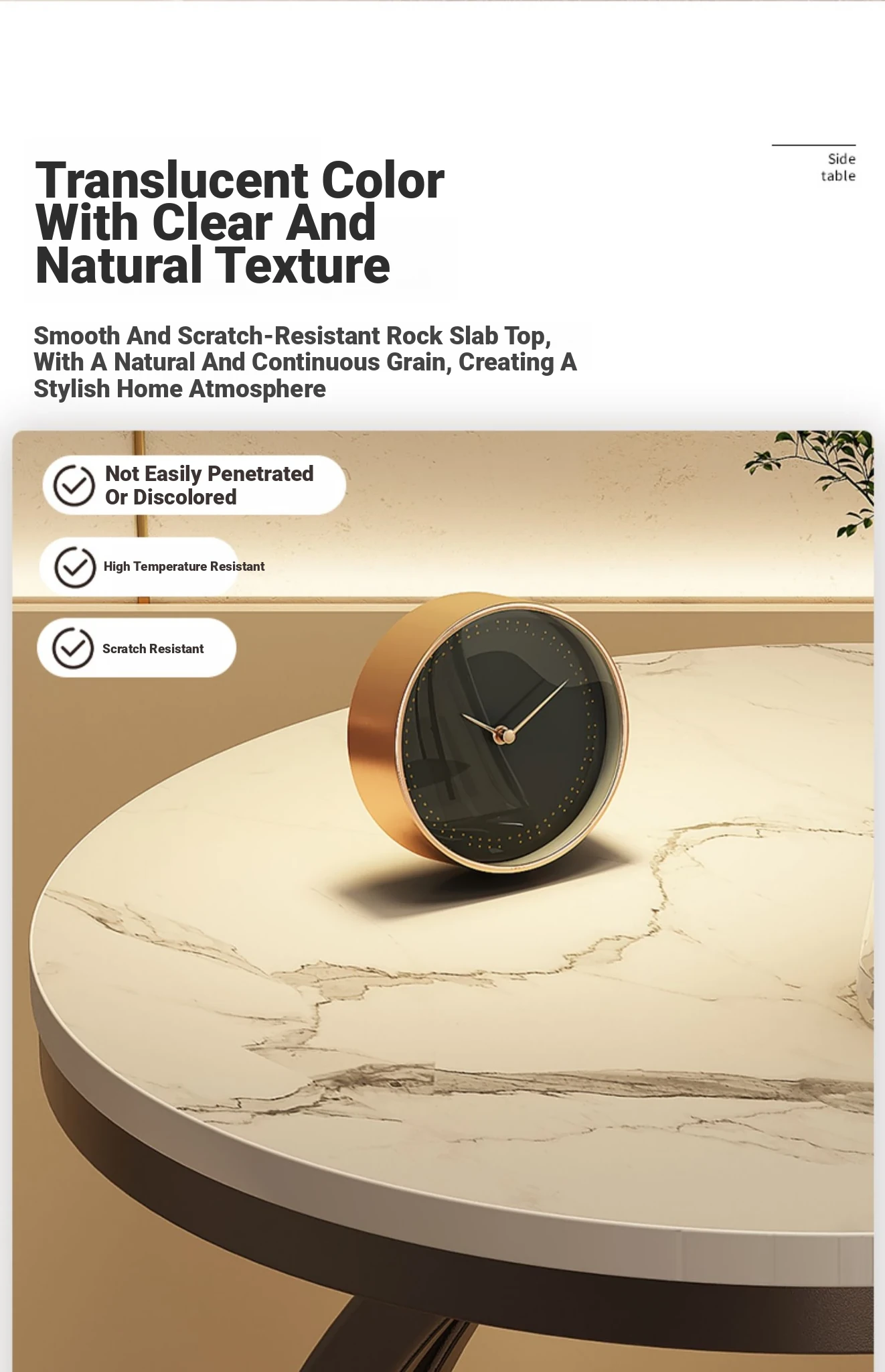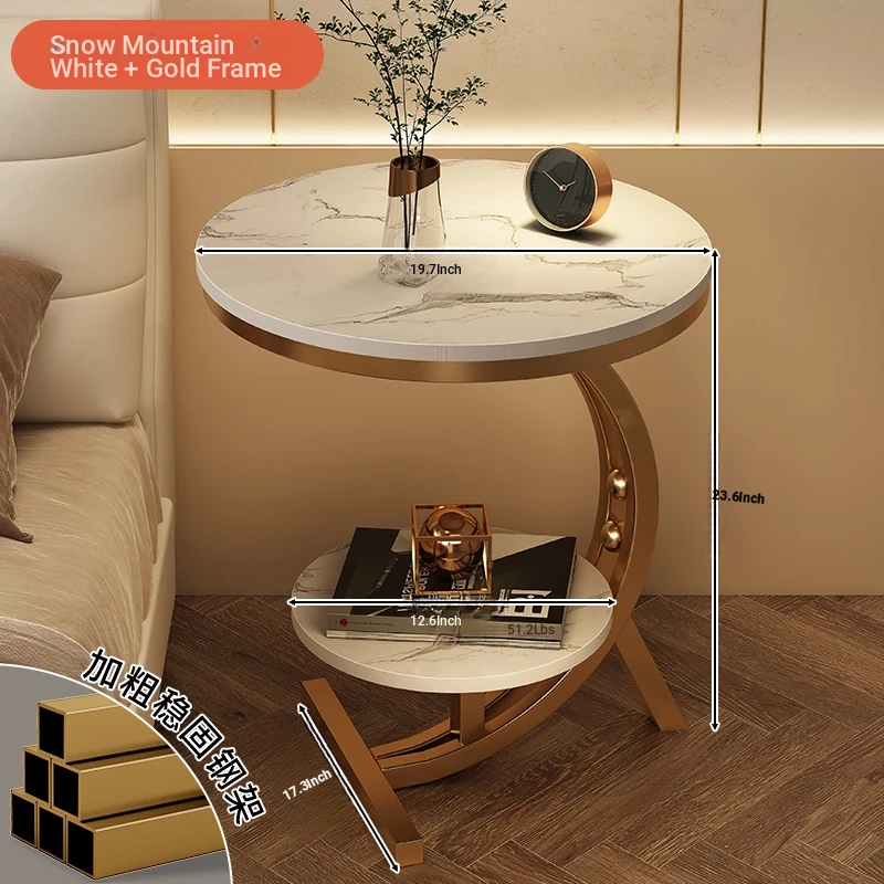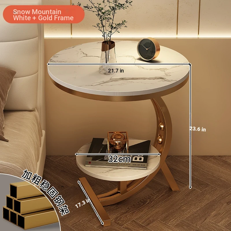 [Imported Rock Slab] Gold Frame + Snow Mountain White (Diameter 21.65in)