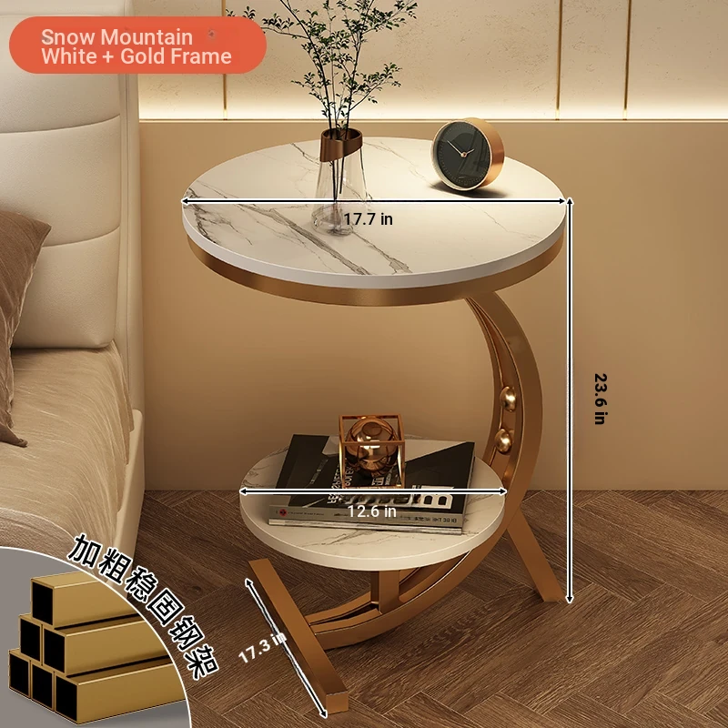 [Imported Rock Slab] Gold Frame + Snow Mountain White (Diameter 17.72in)